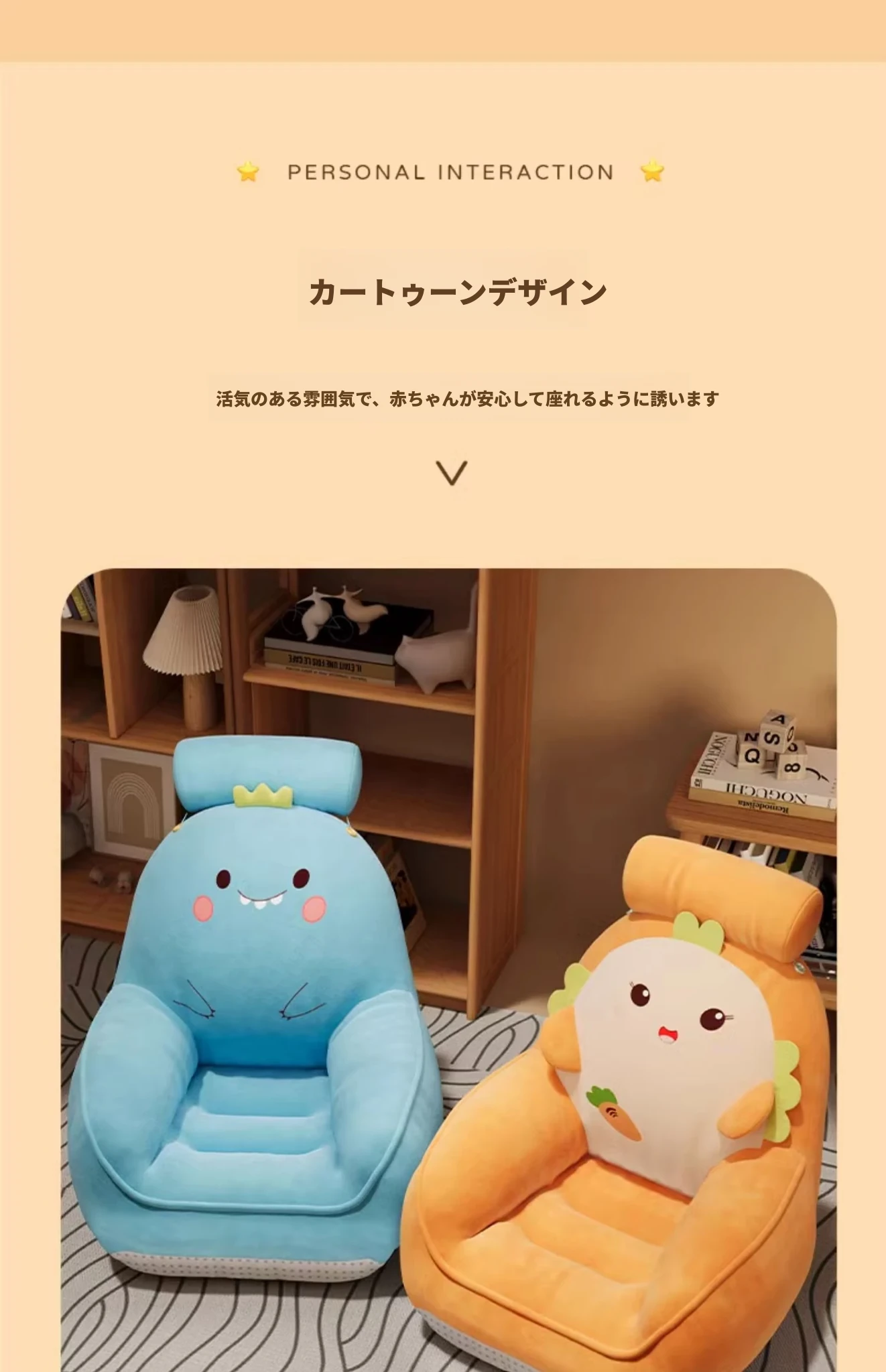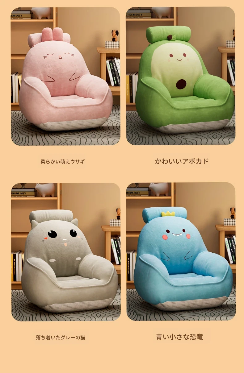 リラックスソファ!バルコニーや家庭用に最適な小さなカートゥーンデザインのクッション付き背もたれ椅子。子供の読書コーナーやリラックスタイムにぴったりの楽しいソファです!