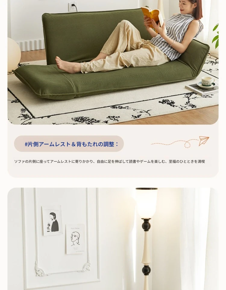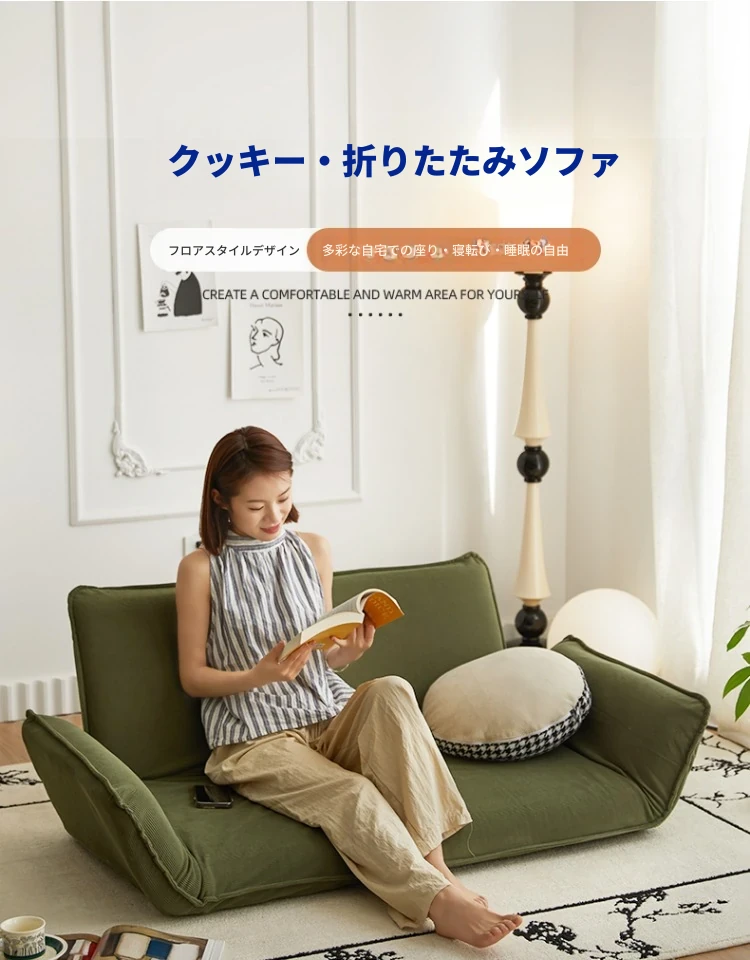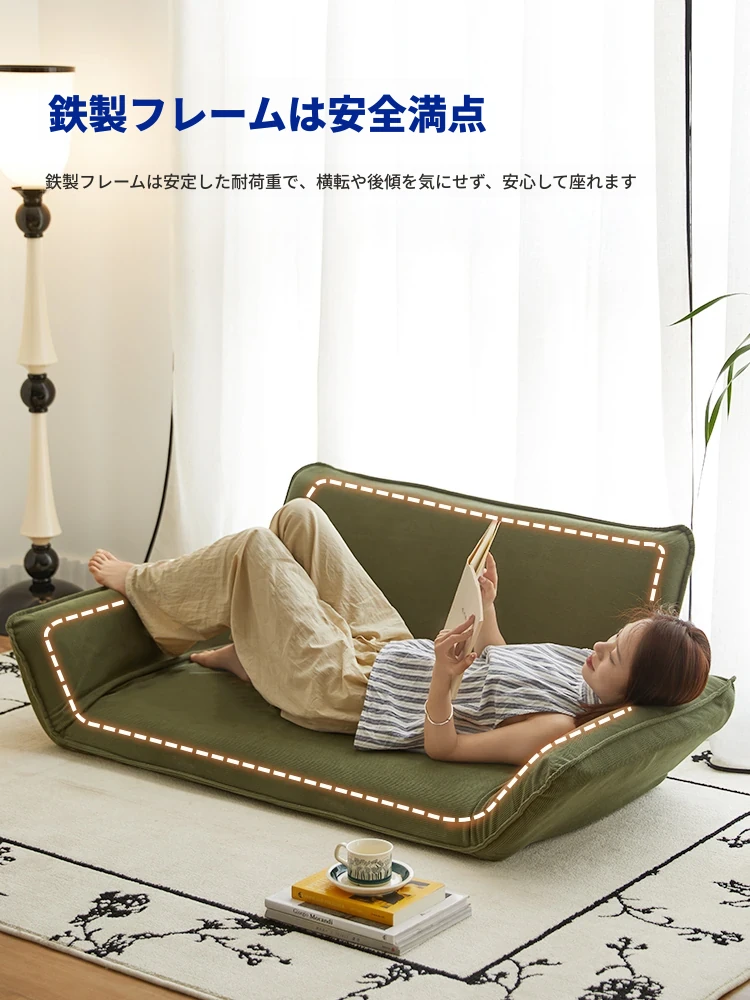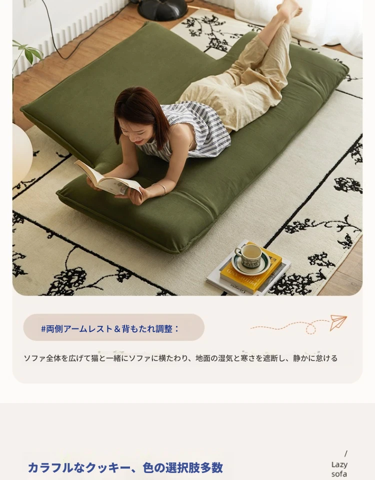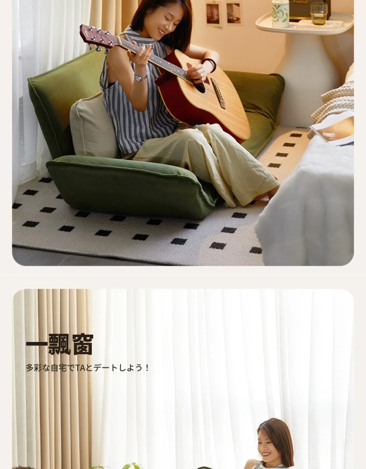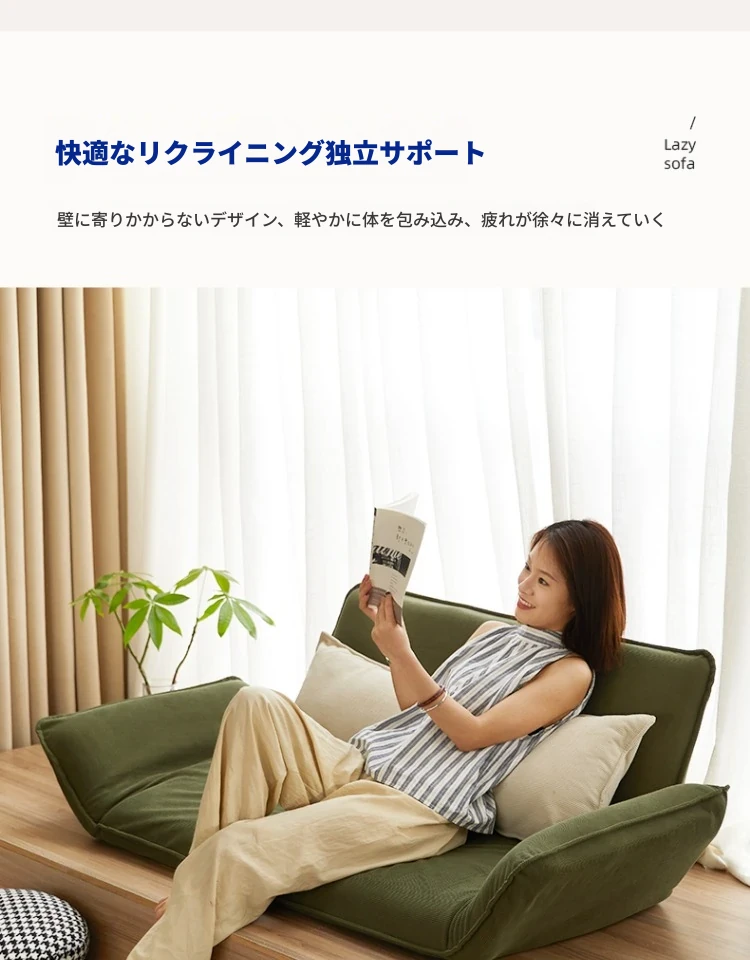 おしゃれな一人用ソファ!リラックスできる畳スタイルのフロアソファ、窓辺やバルコニーにぴったり!折りたたみ式で収納も簡単、快適な背もたれ付きで、あなたのくつろぎ空間を演出します。