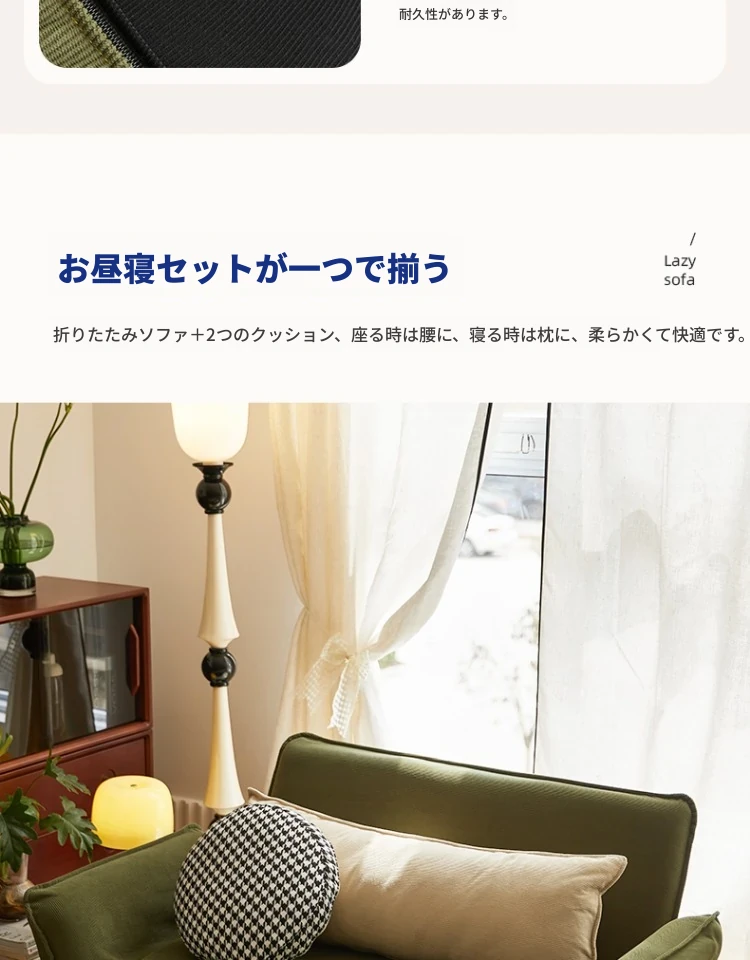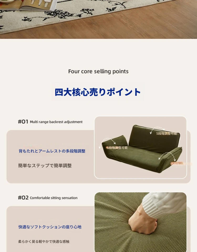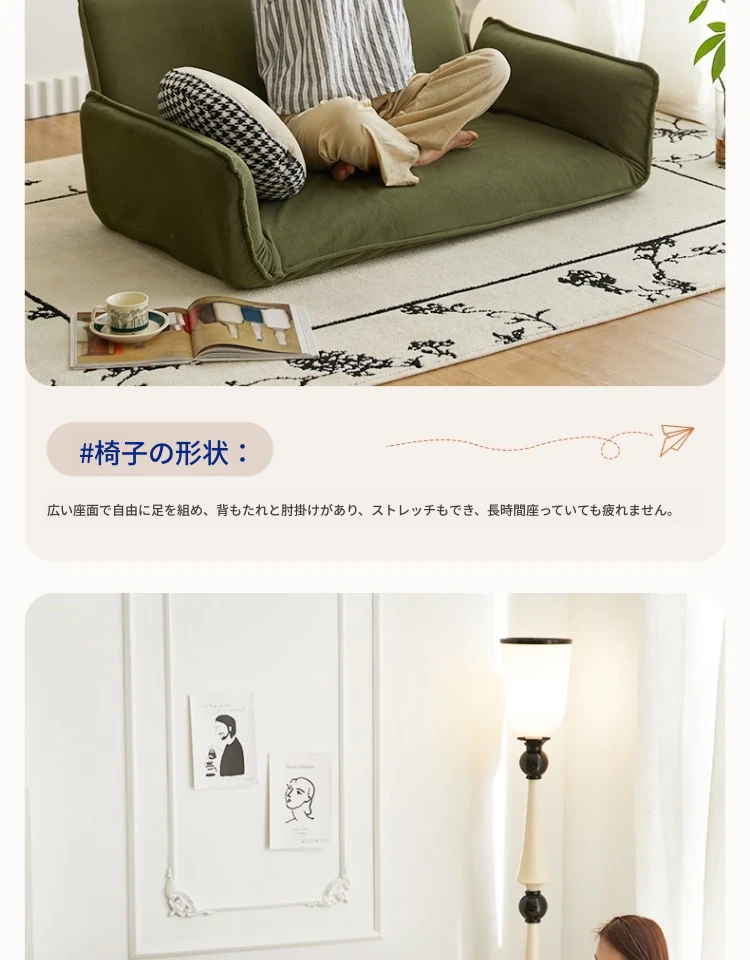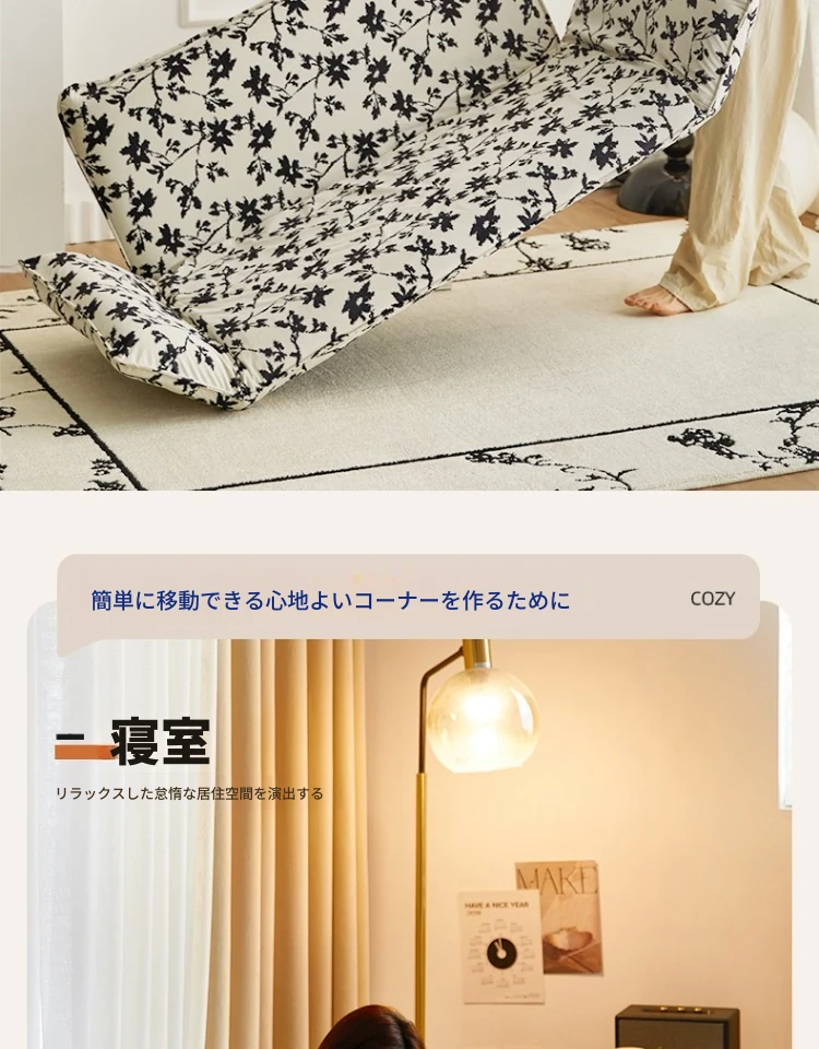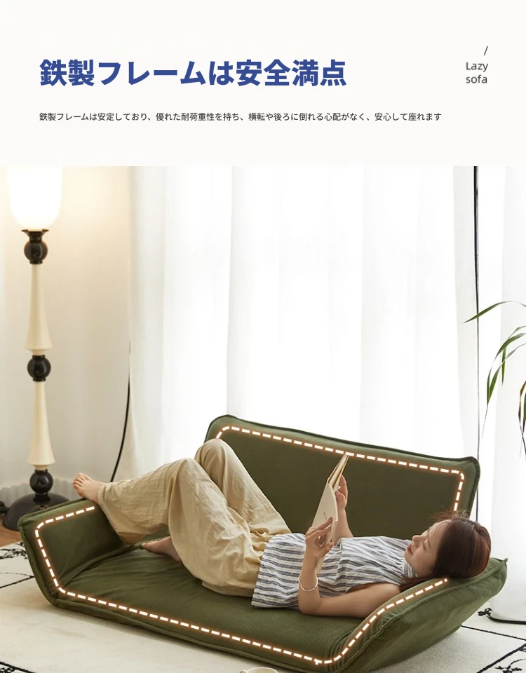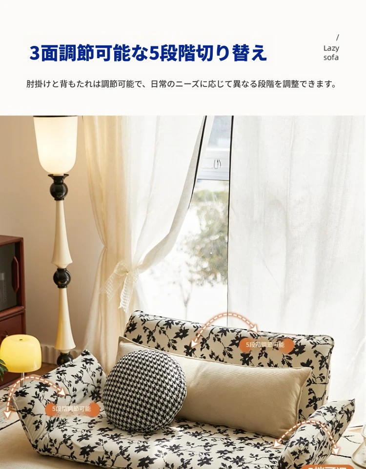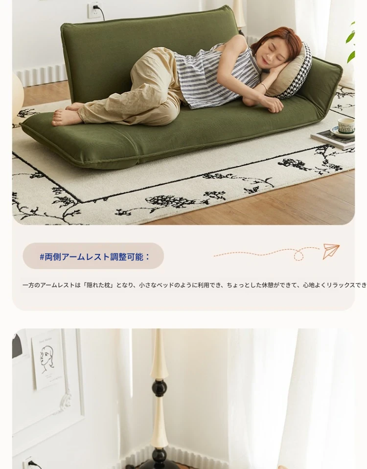 おしゃれな一人用ソファ!リラックスできる畳スタイルのフロアソファ、窓辺やバルコニーにぴったり!折りたたみ式で収納も簡単、快適な背もたれ付きで、あなたのくつろぎ空間を演出します。