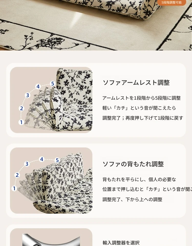 中華風のレザー折りたたみソファベッド、引き出し付きオットマン&コーヒーテーブルセット!小型・中型住居に最適、配送無料でお届けします!