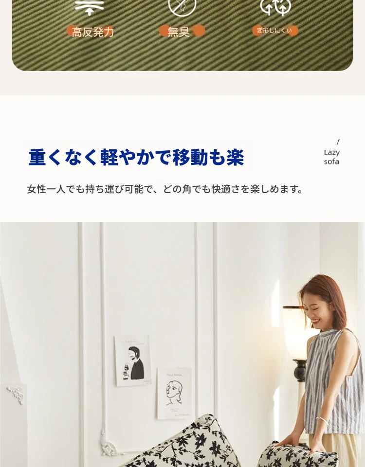 EPP楽ちん豆袋ソファー - 寝転んでリラックス!一人用、寝室やバルコニーに最適なタタミスタイル。子供向けにもぴったりな創造的なデザイン!テクノロジー布で快適さを追求。