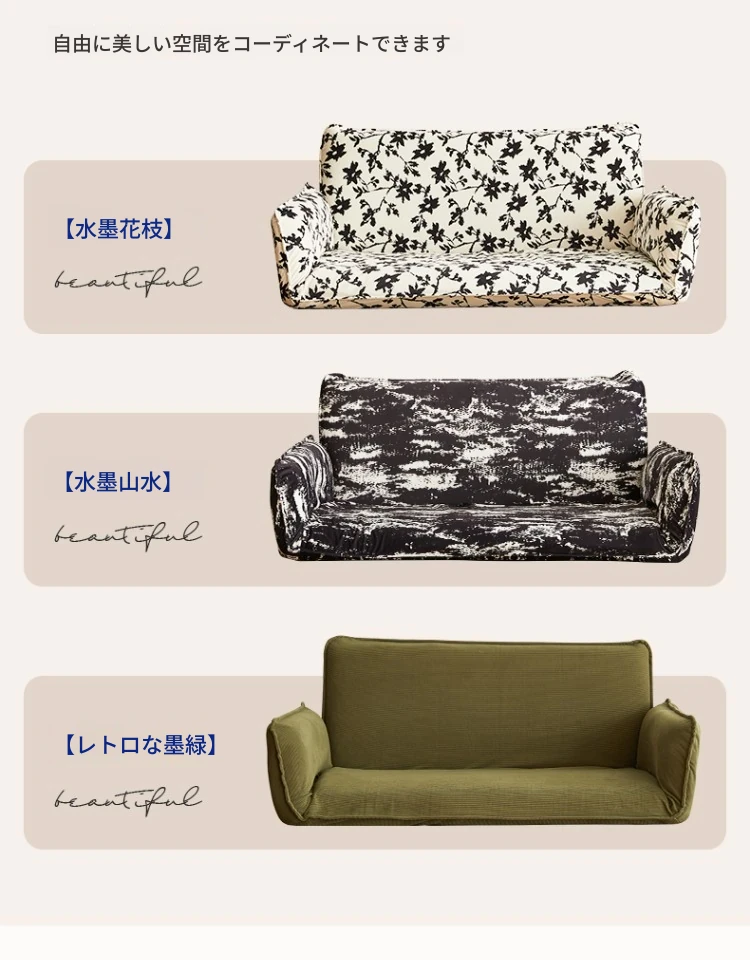 【水墨花枝-印花绒】(アームレスト+背もたれ5段調節)【円形クッション+長クッション付き】