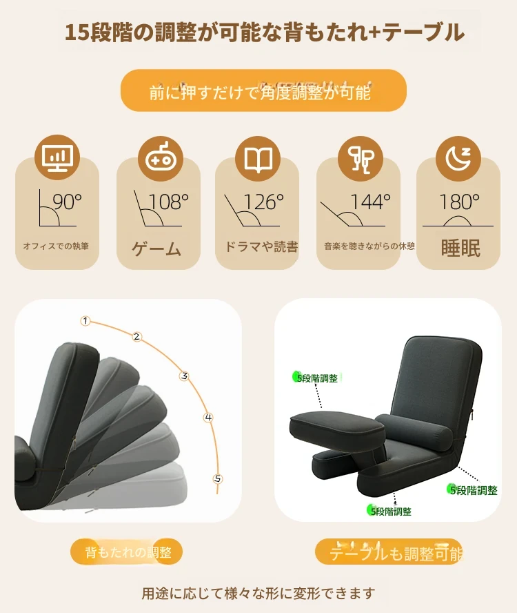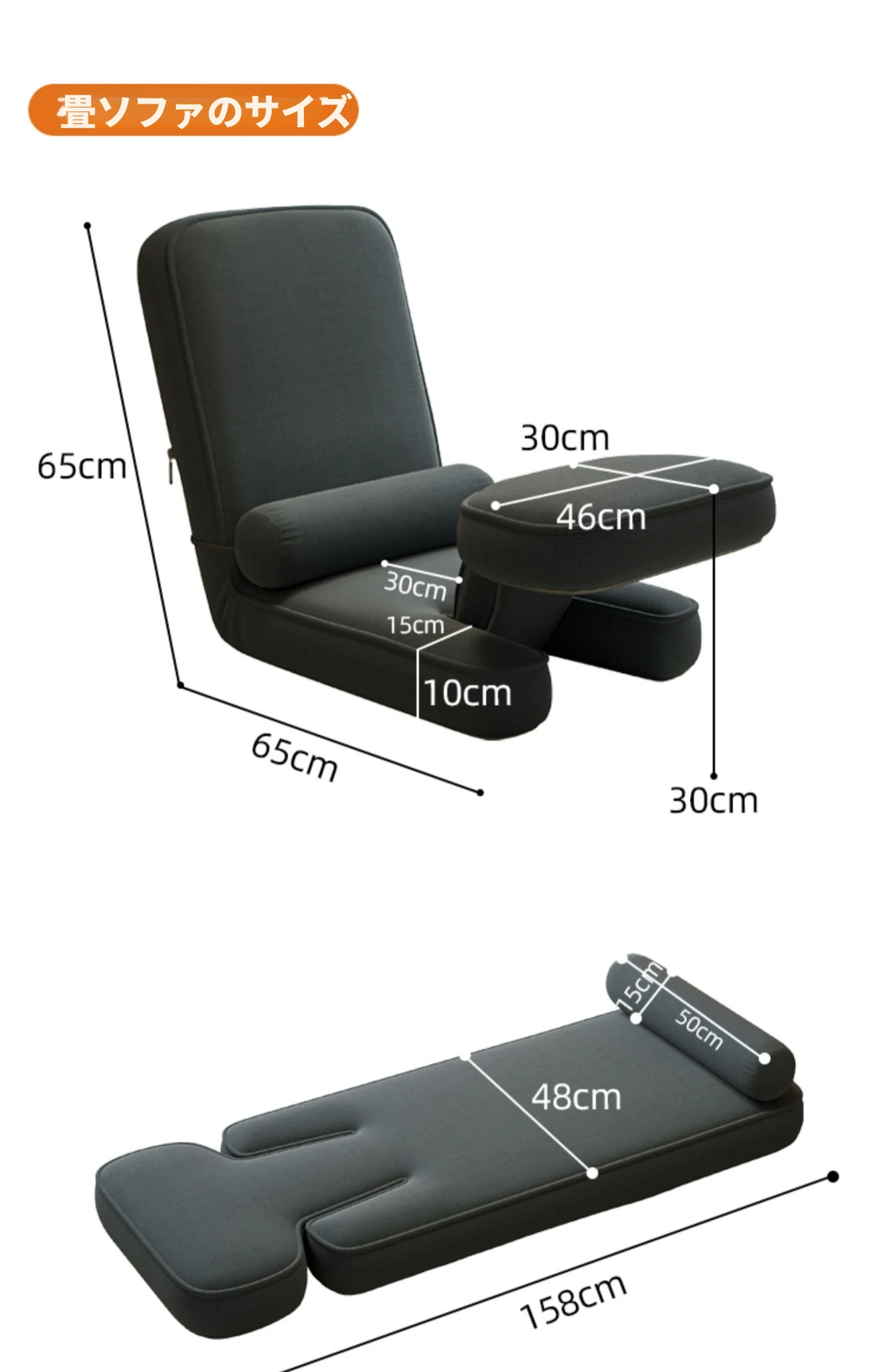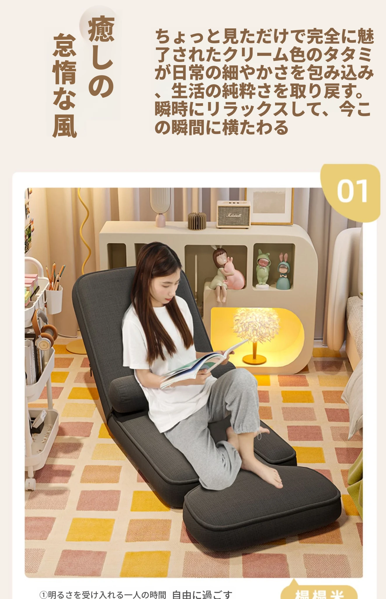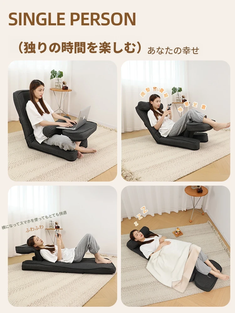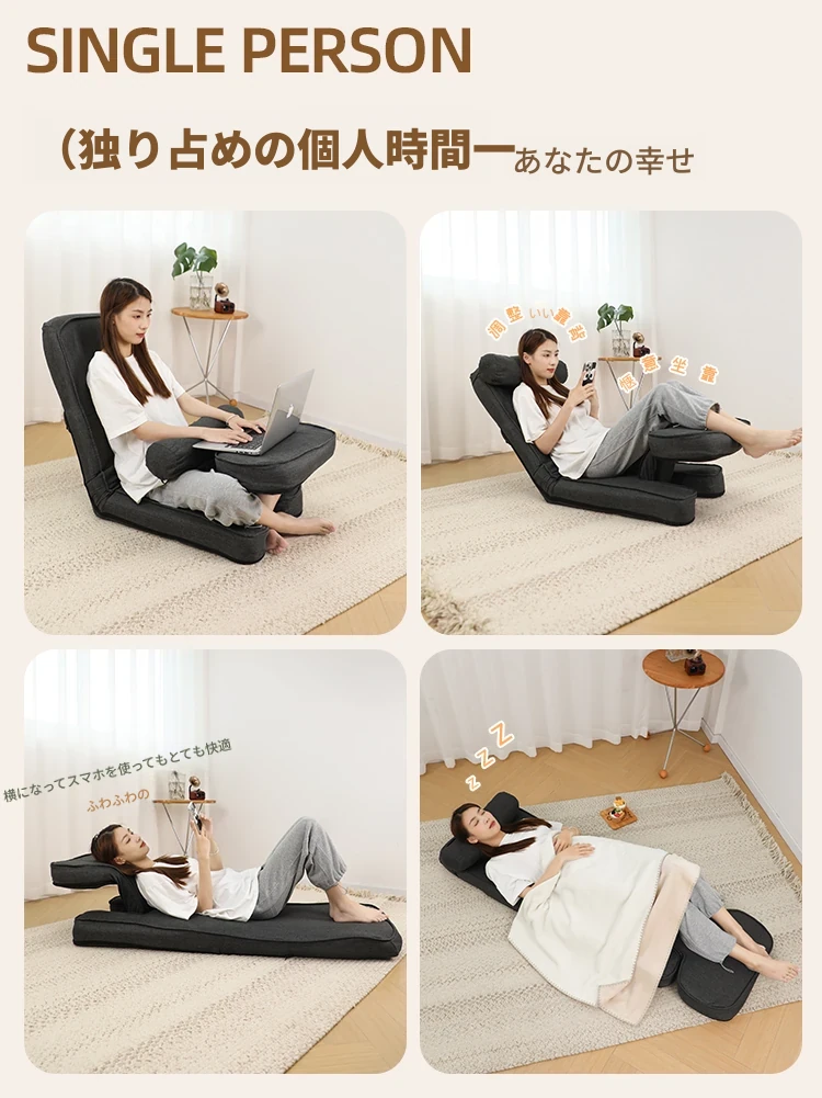 ❤【アップグレード豪華モデル】調整可能な背もたれ+テーブル【多機能畳】グレー