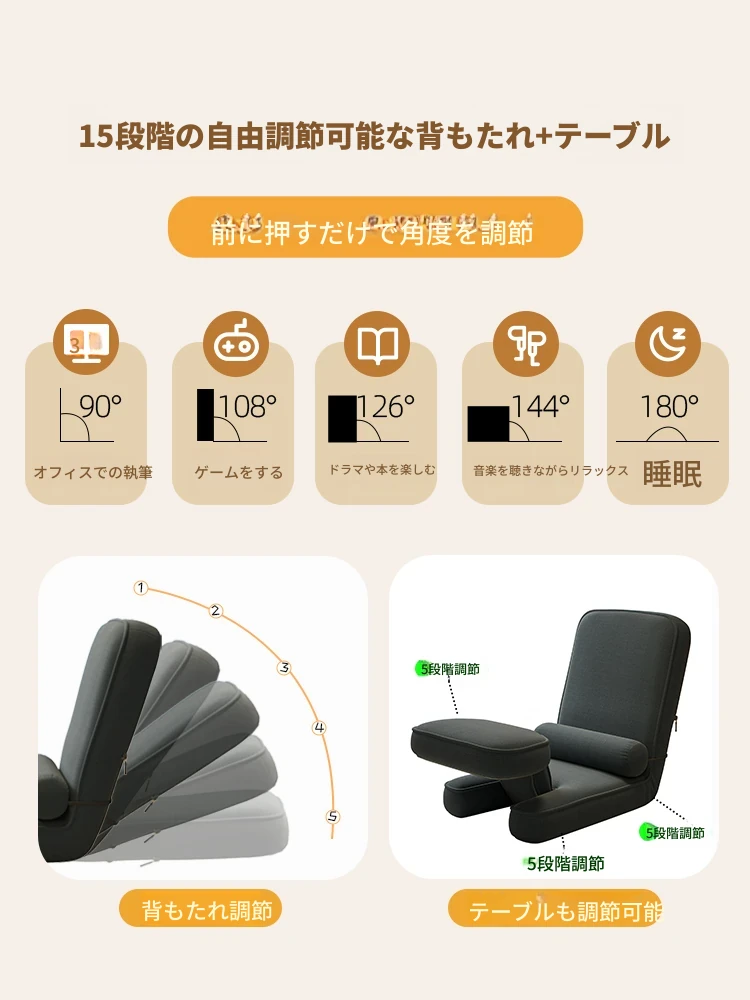 【アップグレード豪華モデル】調整可能な背もたれ+テーブル【多機能畳】ブラウン