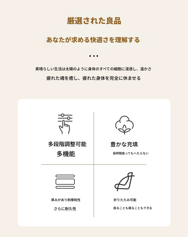 【快適モデル】アイボリー+クッション【洗える+5段階調整】