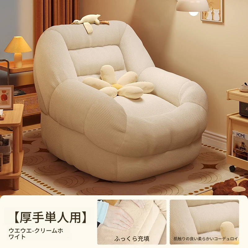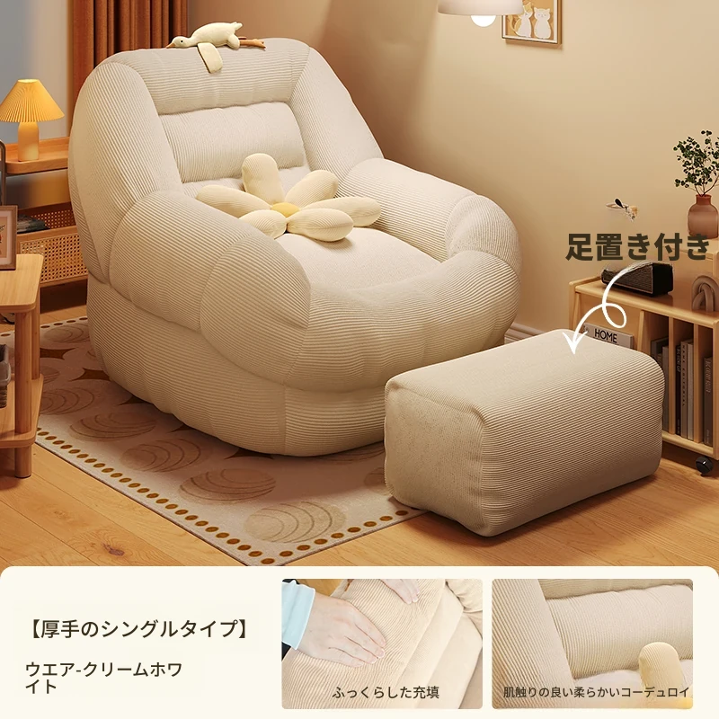 【厚手シングルタイプ+フットレスト】クリームホワイト-肌触り柔らかいコーデュロイ-ボリューム充填