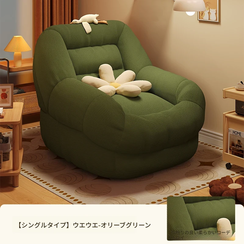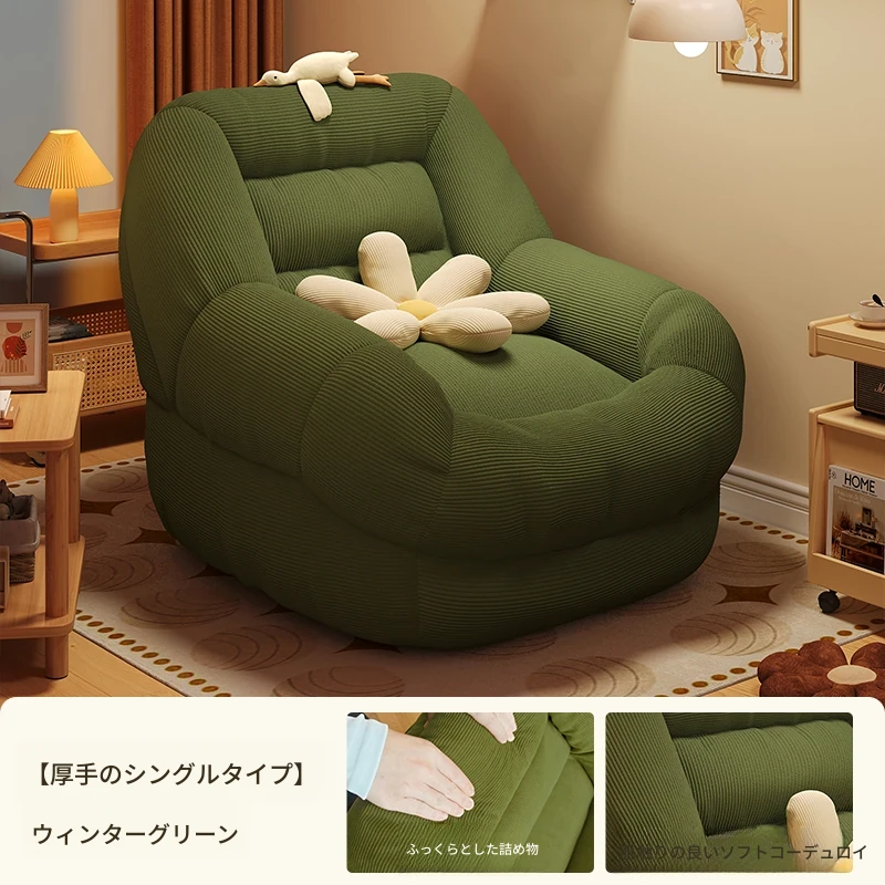 【厚手シングルタイプ+フットレスト】オリーブグリーン-肌触り柔らかいコーデュロイ-ボリューム充填