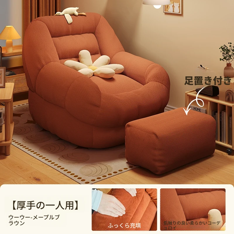 【厚手シングルタイプ+フットレスト】メイプルブラウン-肌触り柔らかいコーデュロイ-ボリューム充填