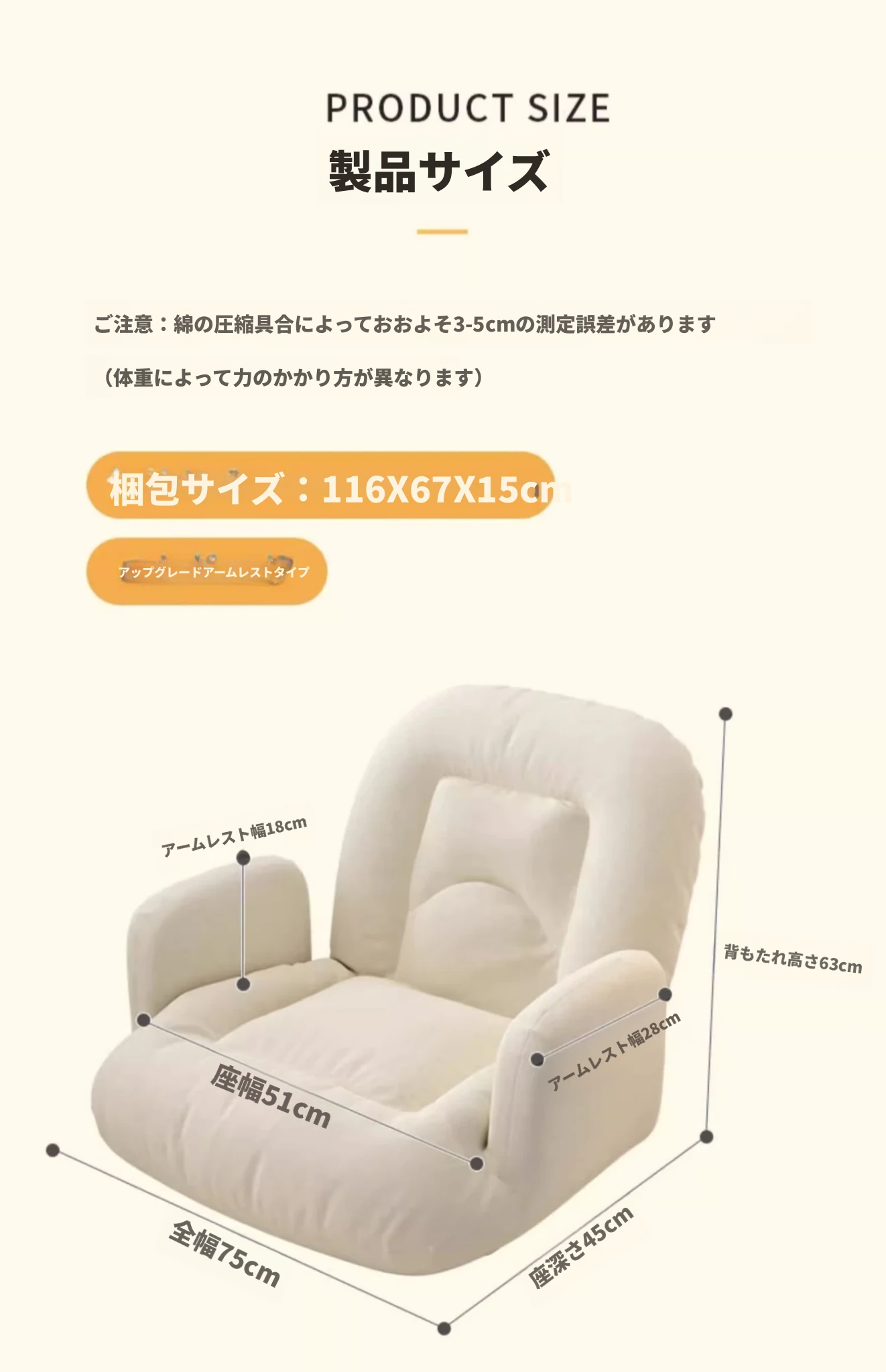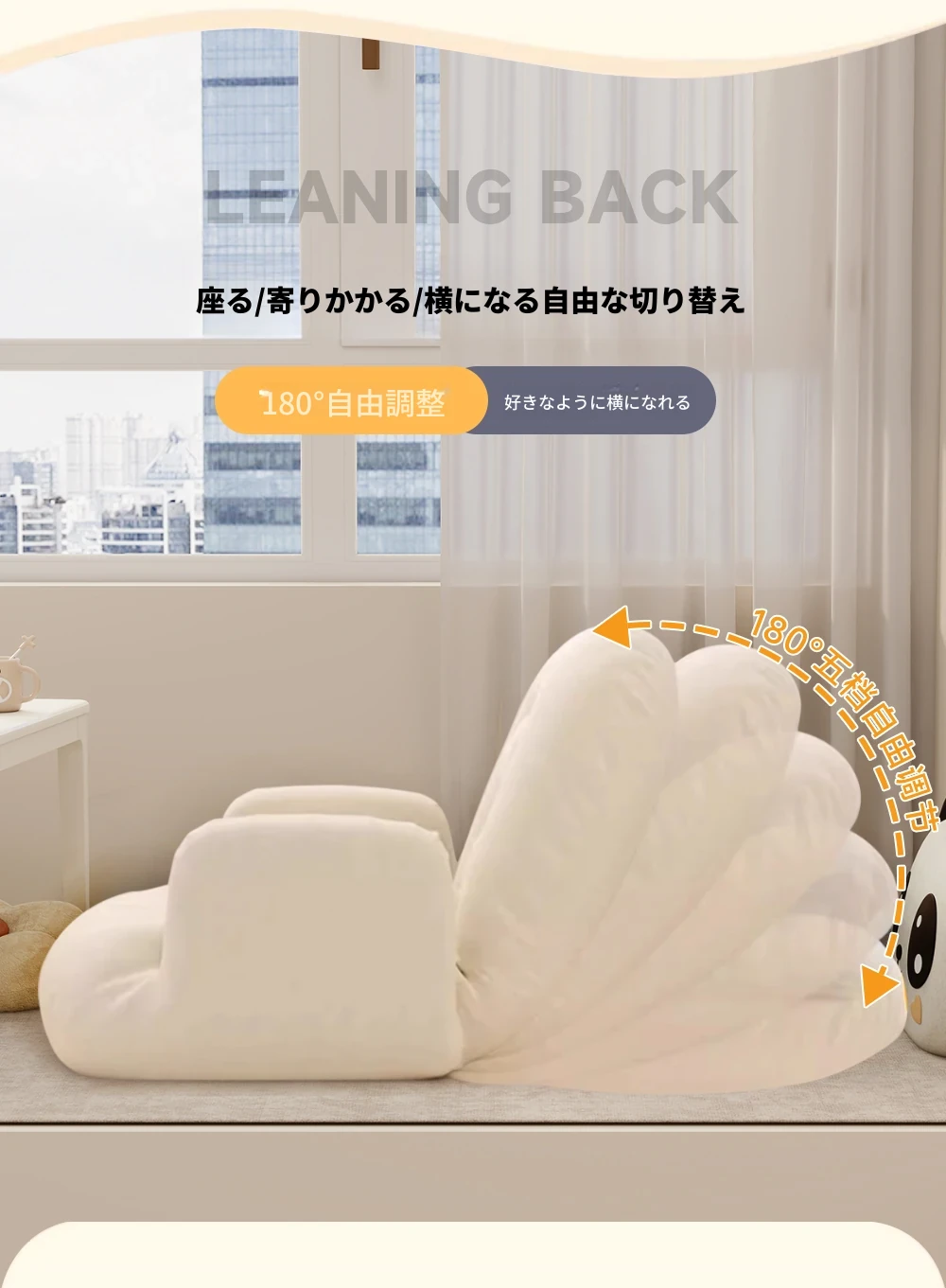 6格子コットンリネン大号ミルクホワイト【腰枕付き】+5段階調節