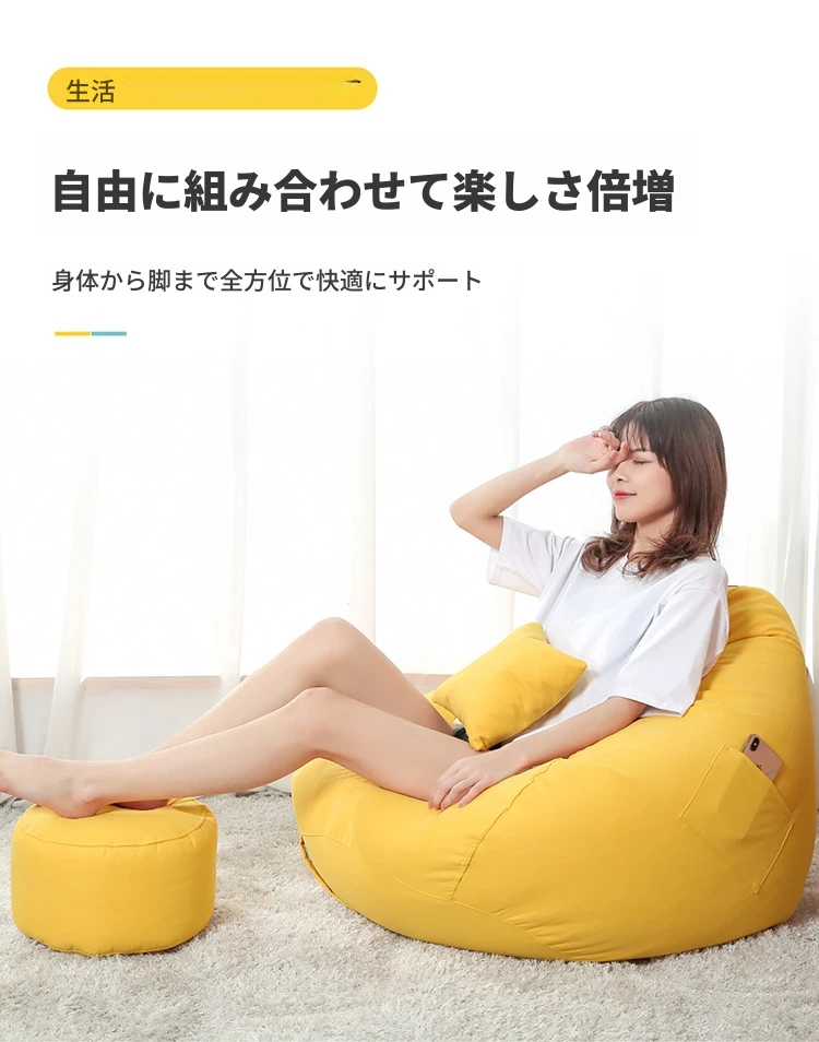 細繊維コットン-コーンイエロー(クッション+フットスツール付き)