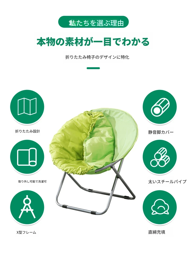 リラックスチェア 月型折りたたみソファ 洗えるデザイン 学生寮やバルコニーに最適!おしゃれなサポートチェアで、心地よいひとときをお楽しみください。