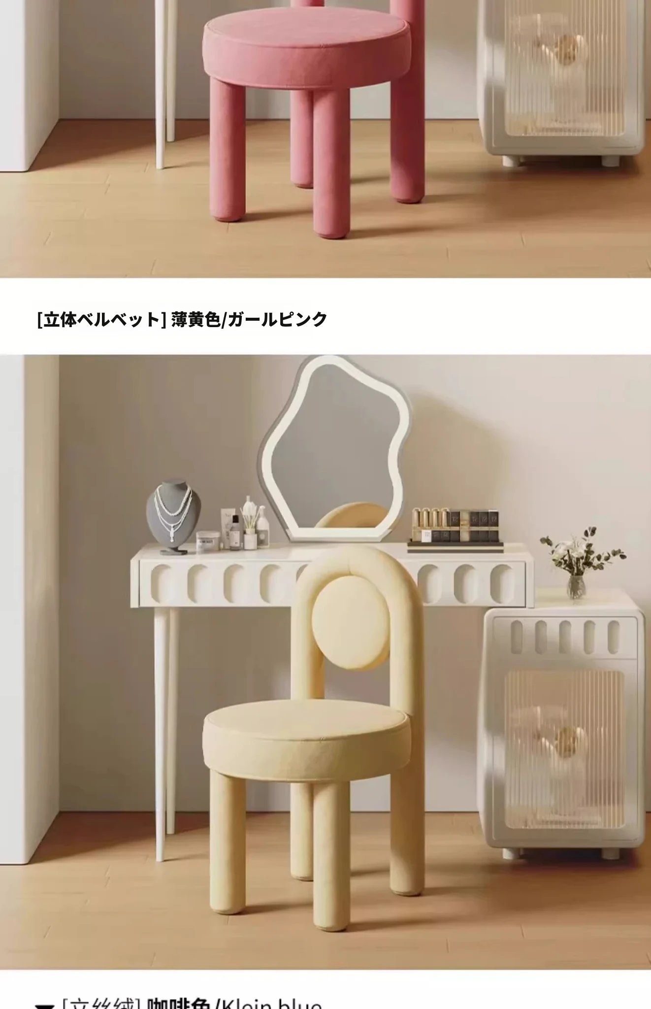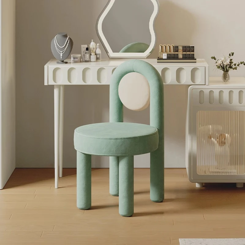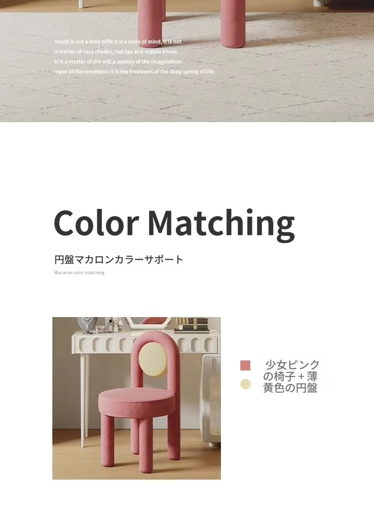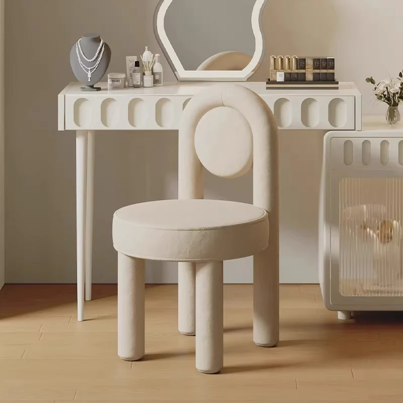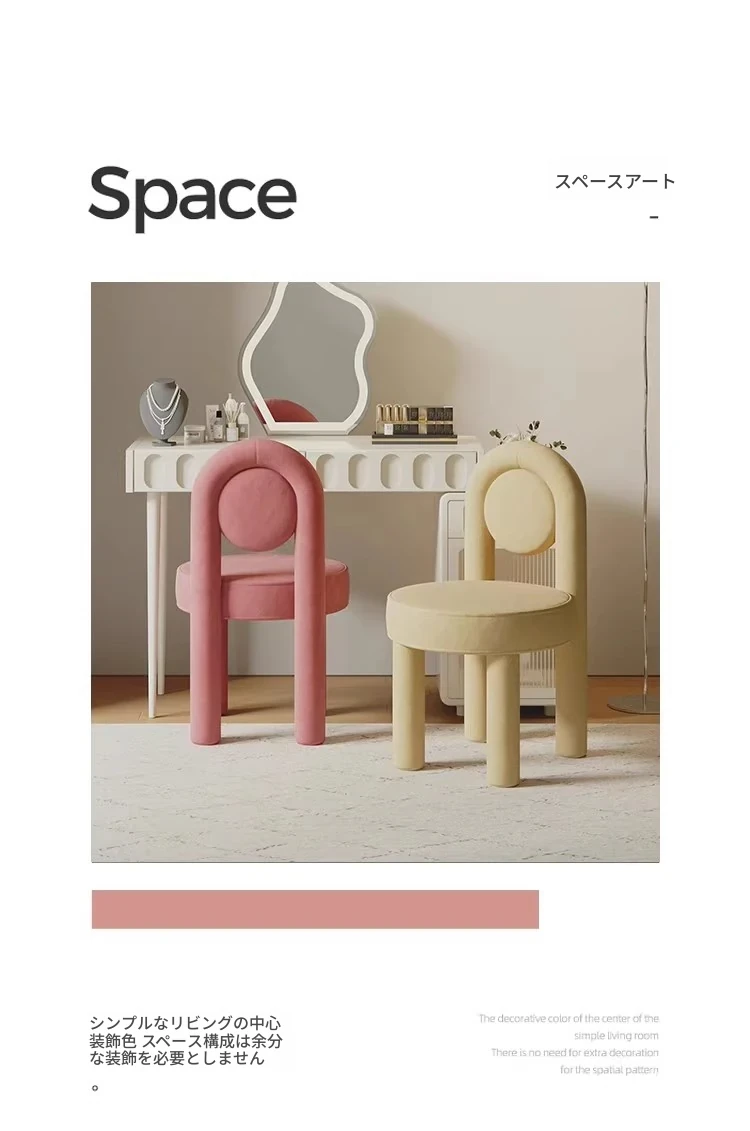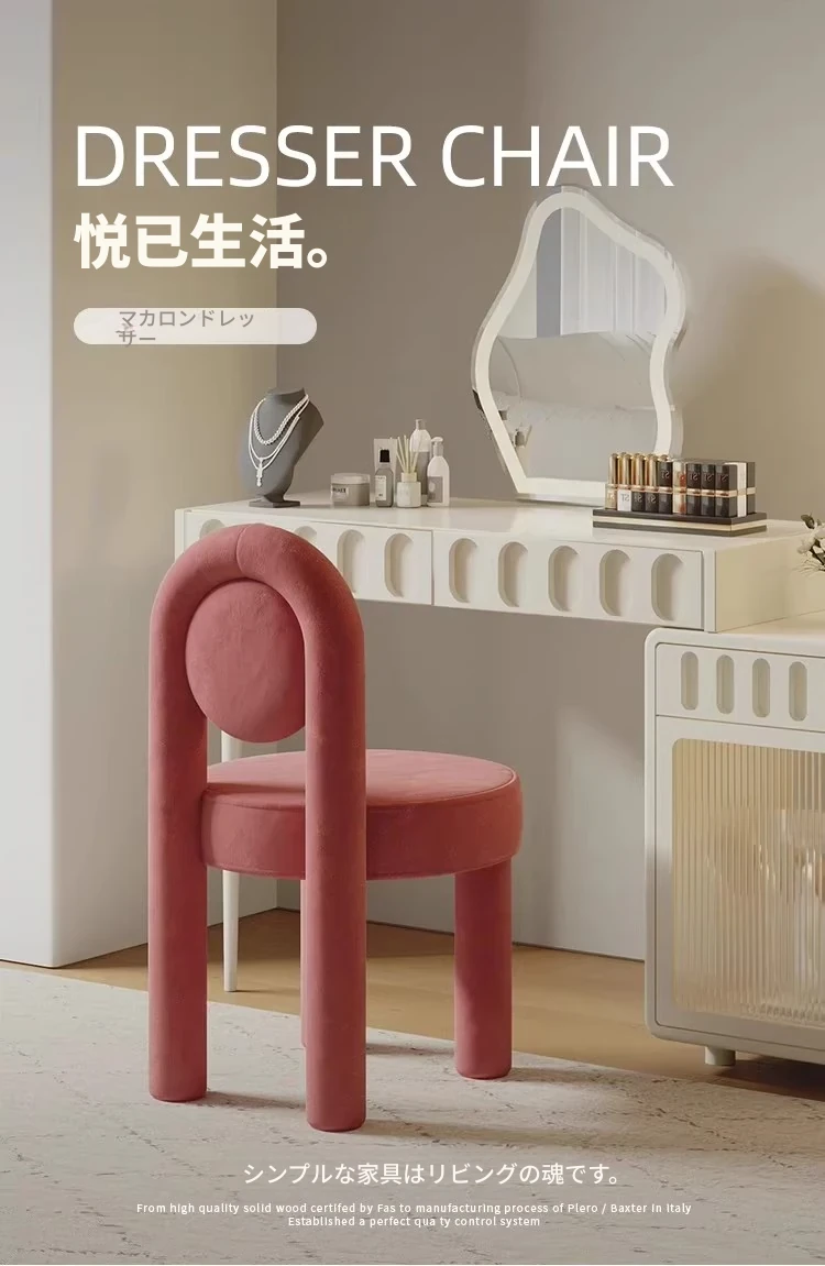女子向け化粧台スツール - クリームカラーのマカロンデザイン、北欧風のシンプルでラグジュアリーな雰囲気。寝室やクローゼットにぴったりのスタイリッシュな化粧椅子!