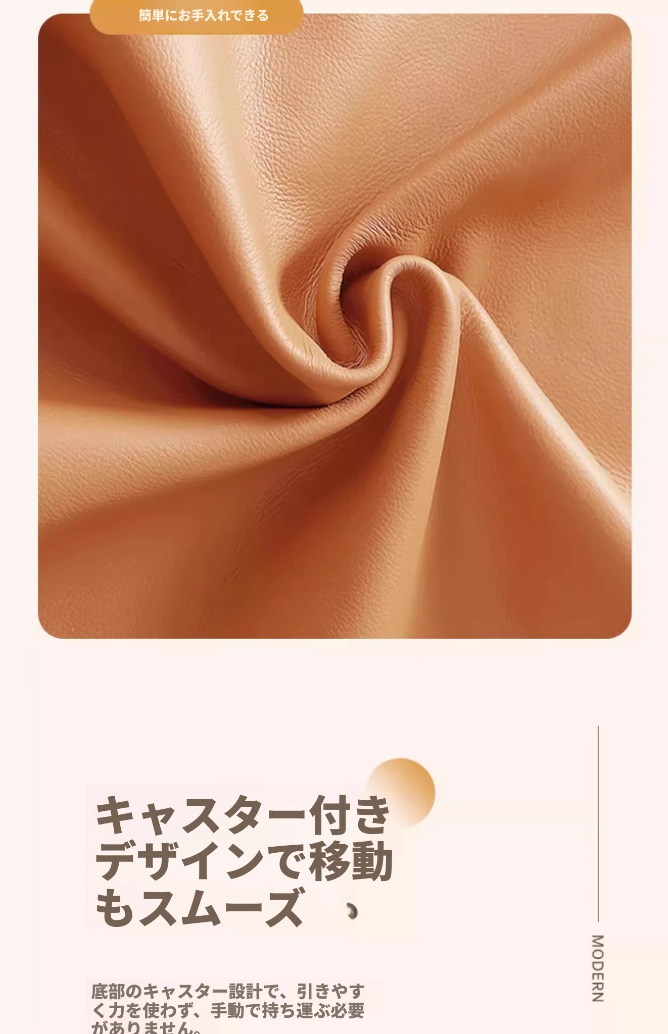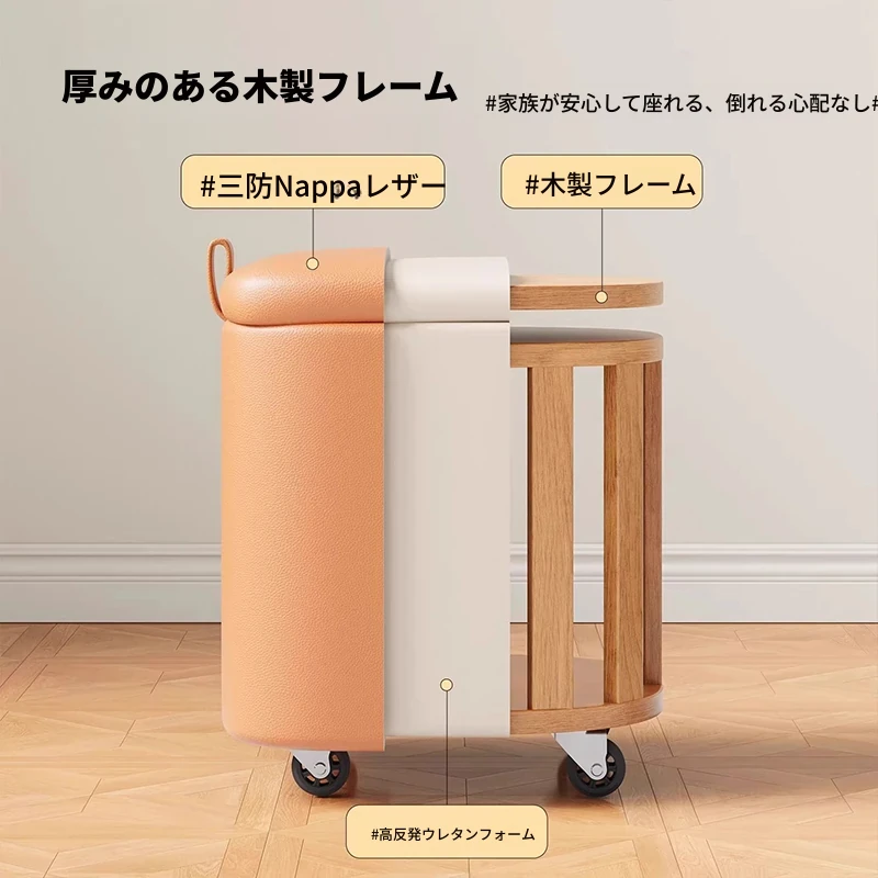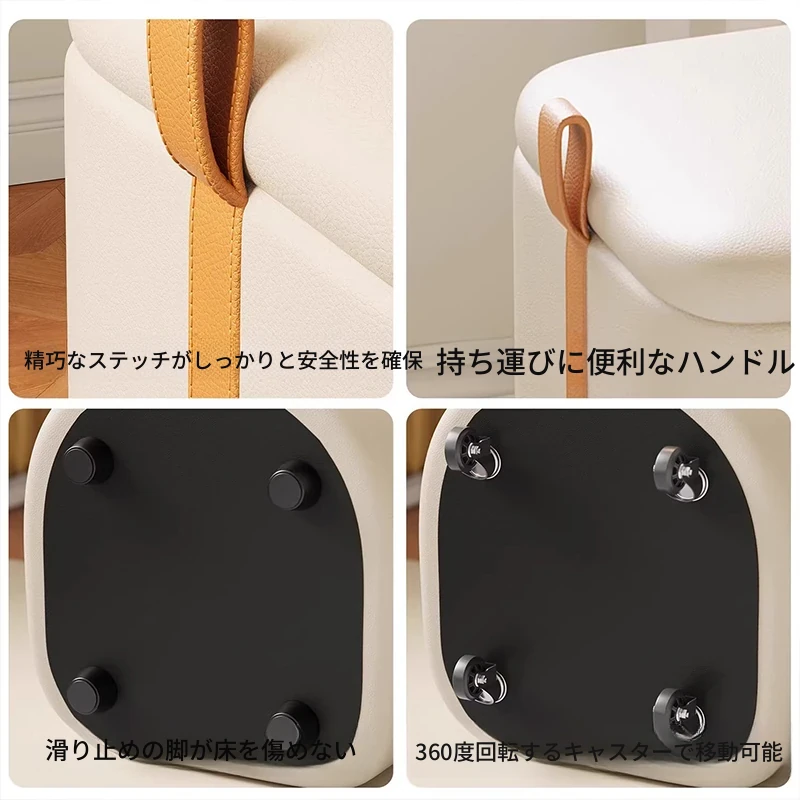 キャスター収納タイプ⭐アイボリー【高弾性スポンジマット】高品質ナッパレザー-360°回転