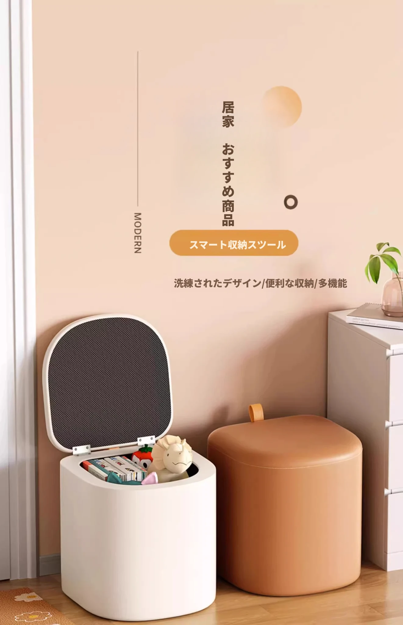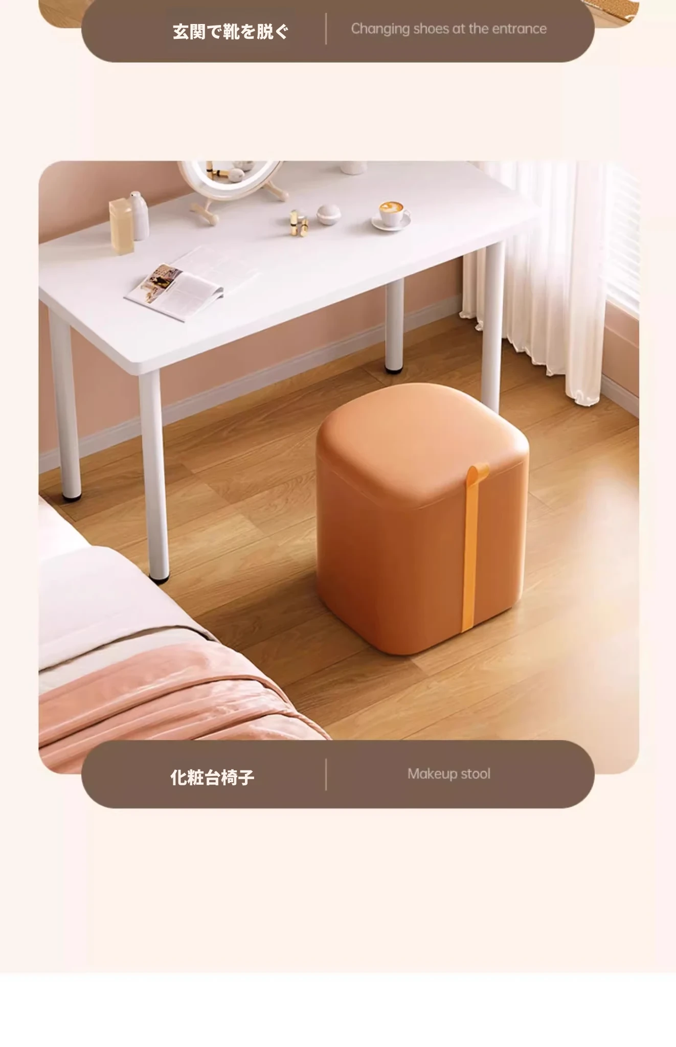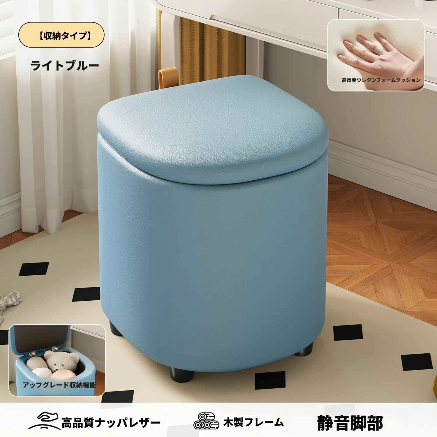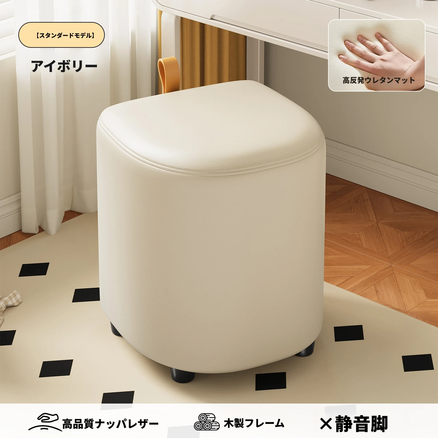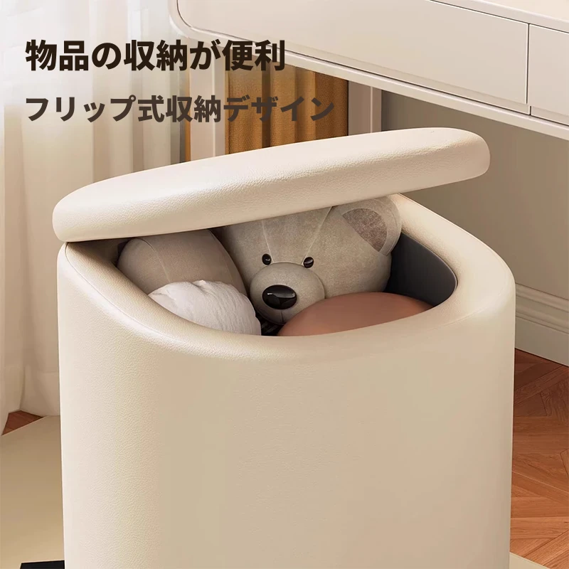 収納付き化粧台スツール|可愛いクリーム風デザイン|回転式キャスター付き|女性の寝室にぴったりなネイルチェア|おしゃれなスクエアスツール!