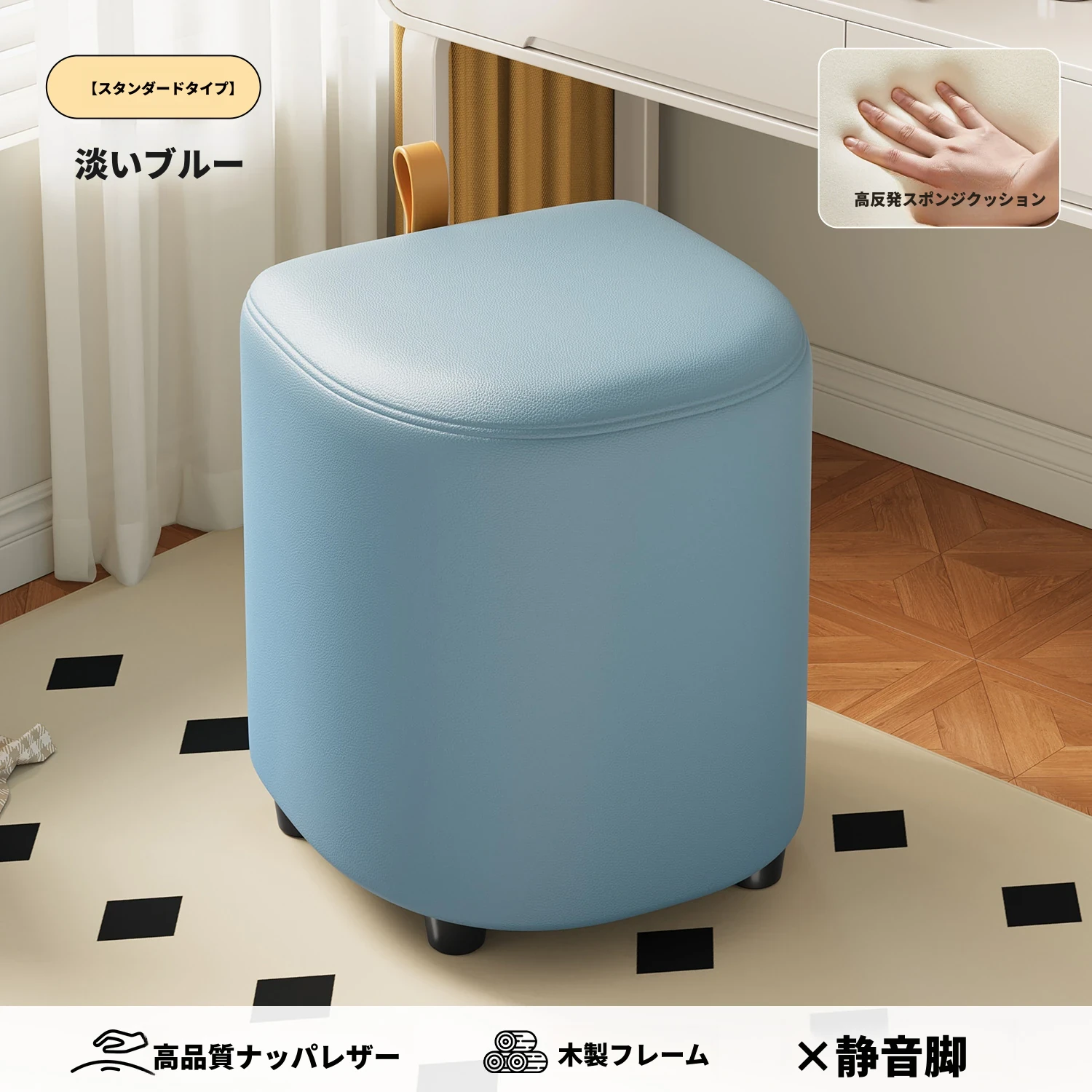 キャスター収納タイプ⭐ライトブルー【高弾性スポンジマット】高品質ナッパレザー-360°回転