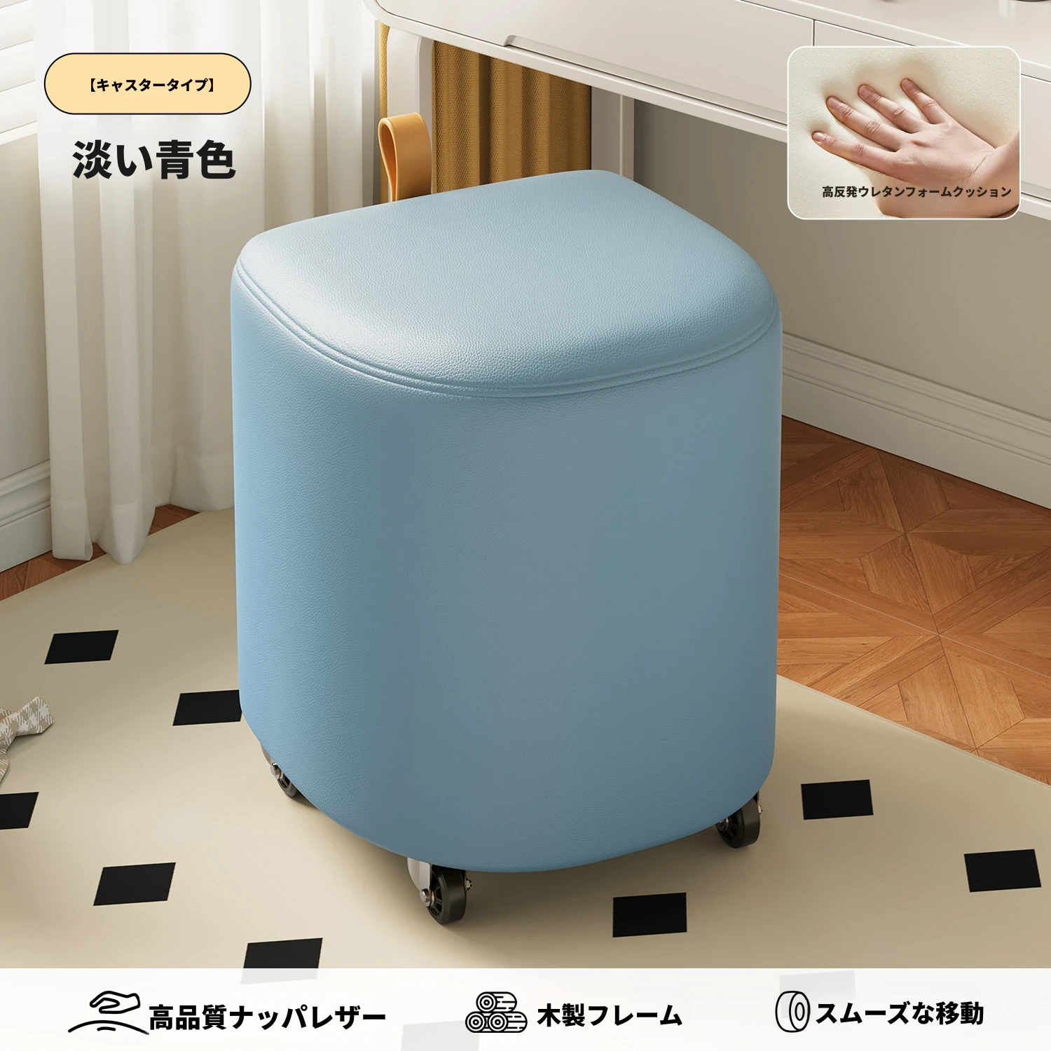 キャスタータイプ⭐ライトブルー【高弾性スポンジマット】高品質ナッパレザー-360°回転