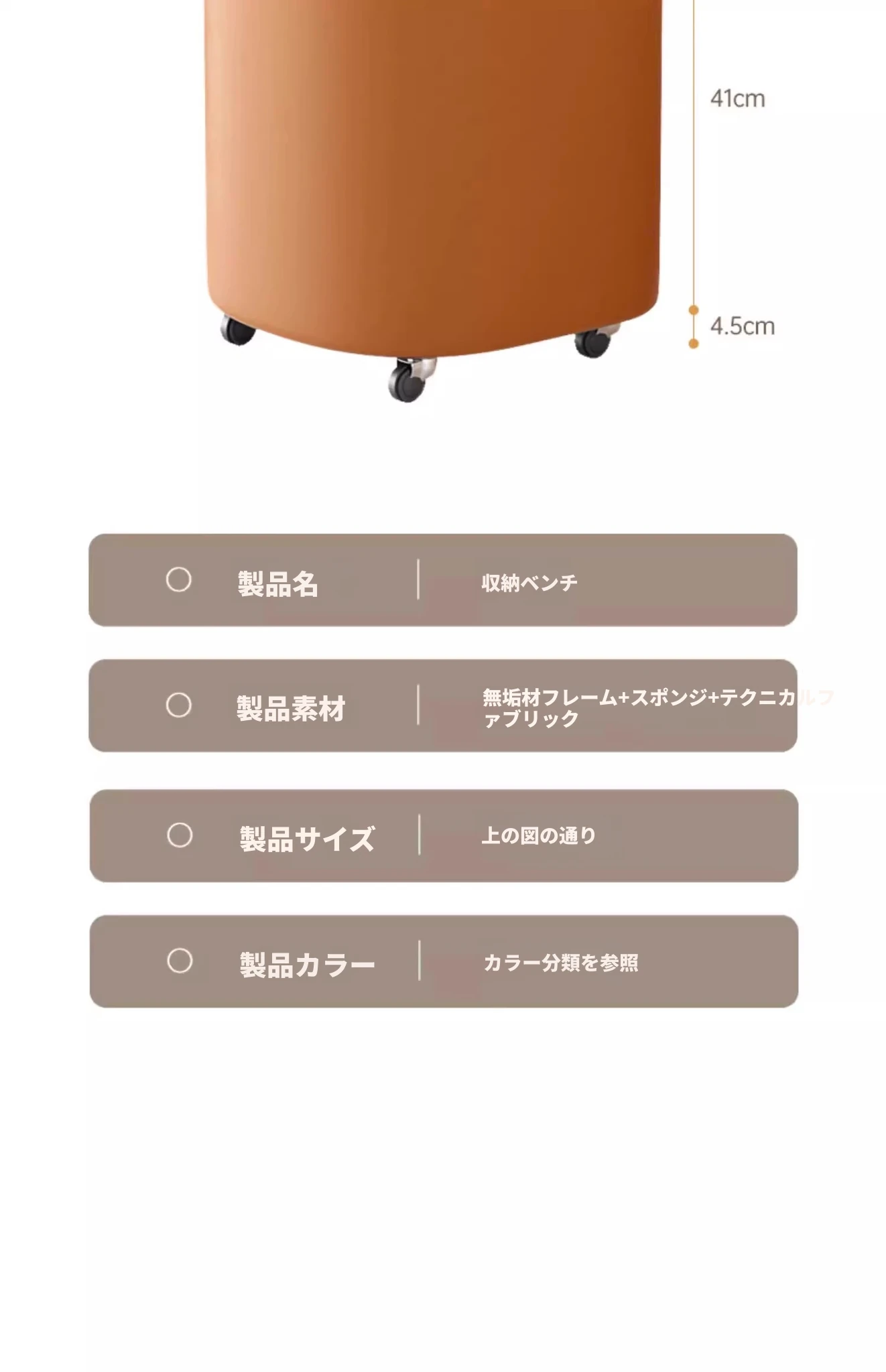 キャスター収納タイプ⭐オレンジレッド【高弾性スポンジマット】高品質ナッパレザー-360°回転
