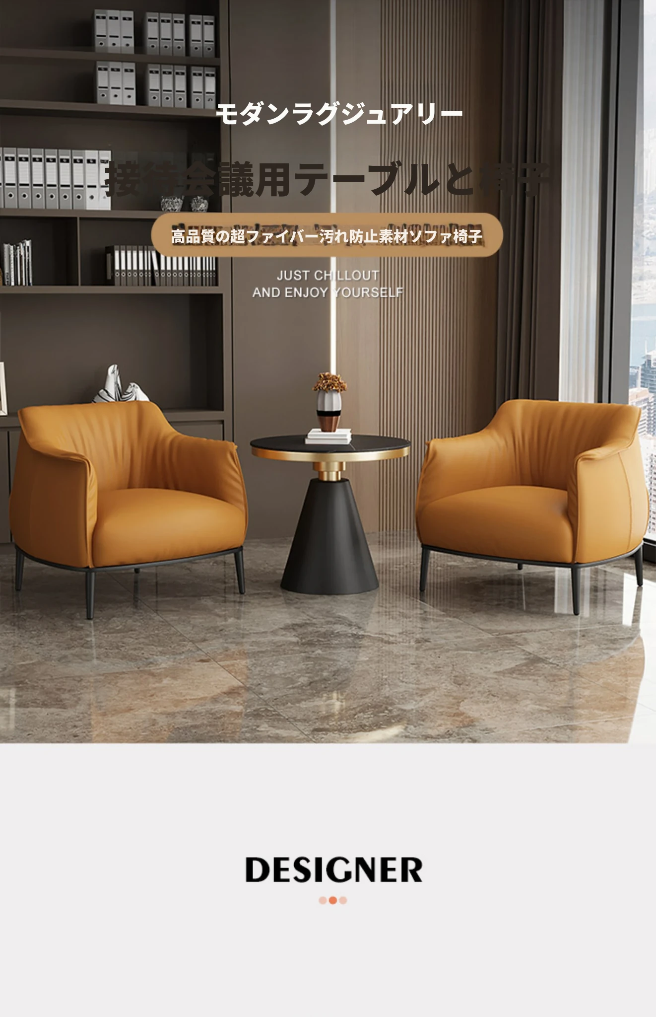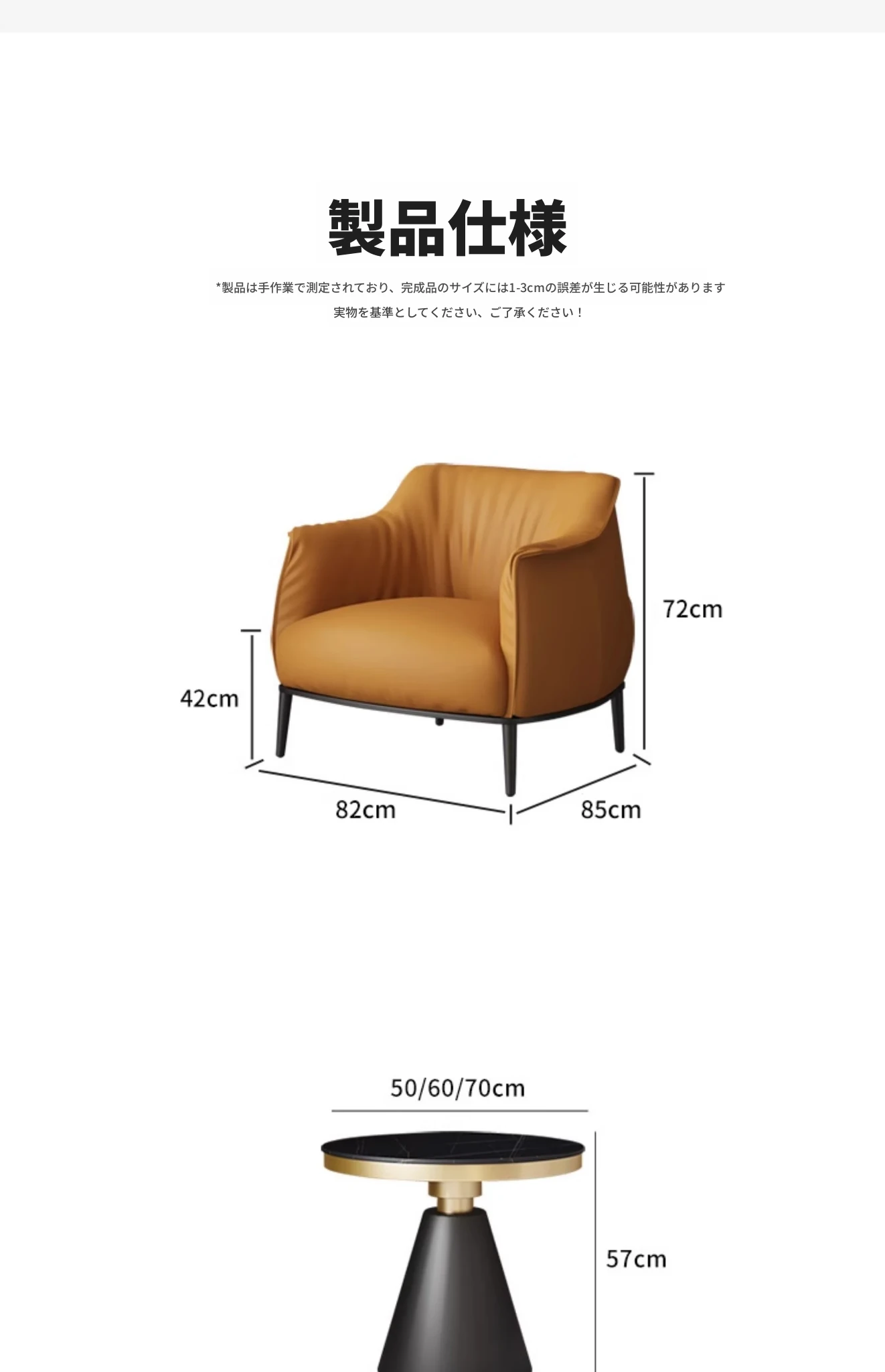 1テーブル2椅子+50*57cm【オレンジ/超ファイバー皮】
