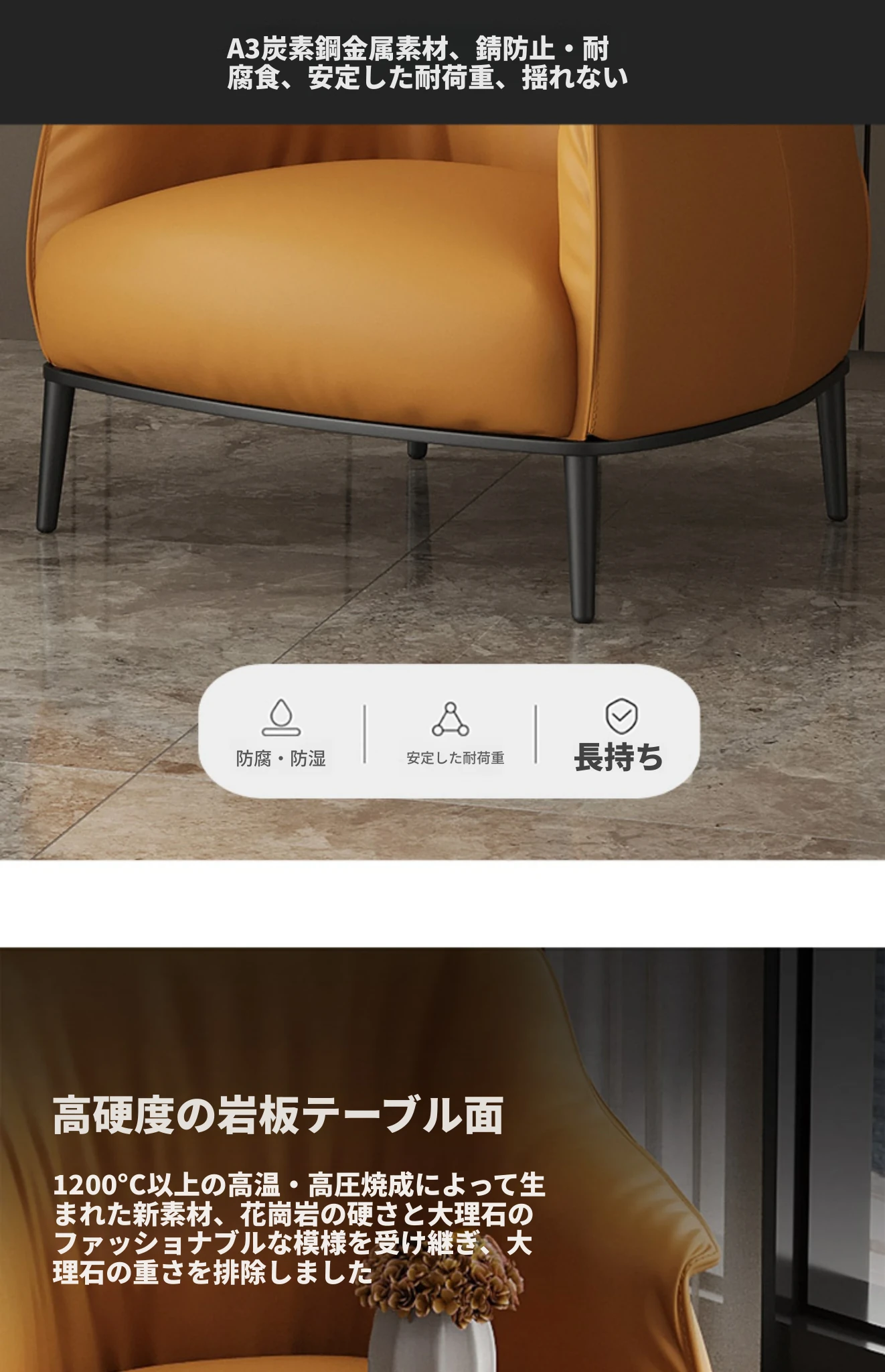 オレンジ/超ファイバー皮汚れ防止生地-カーボンスチール