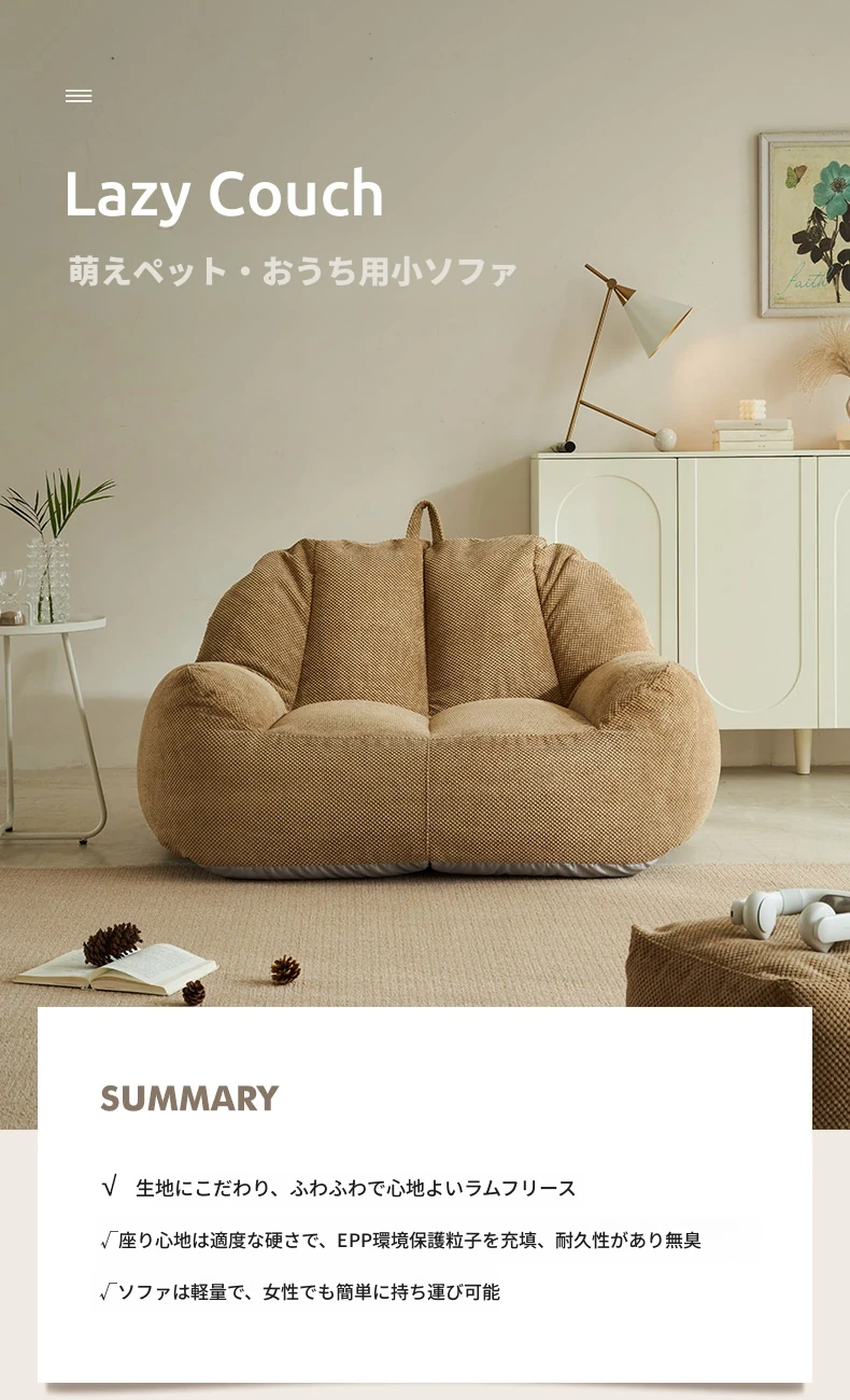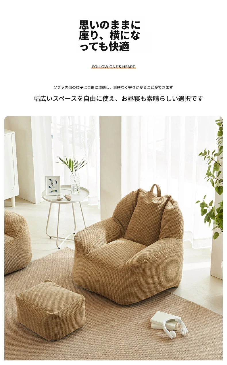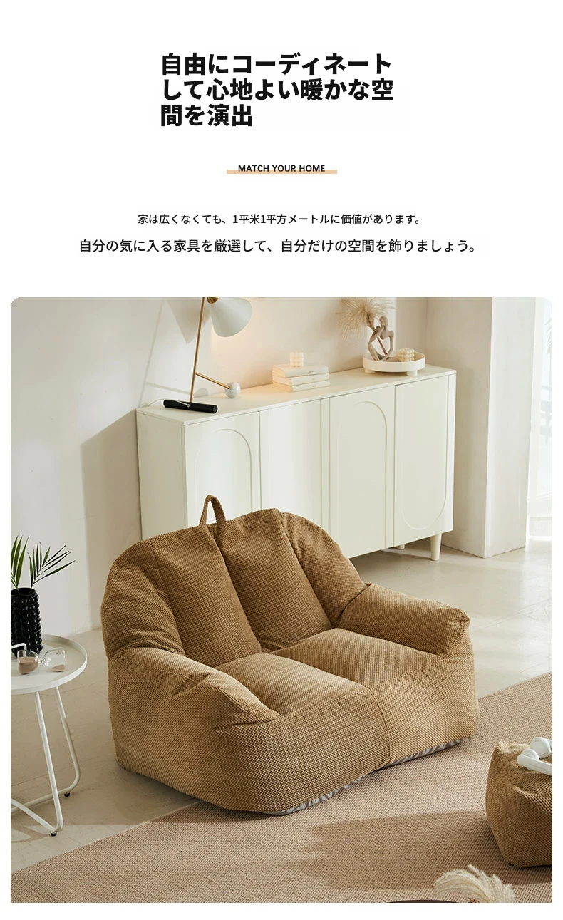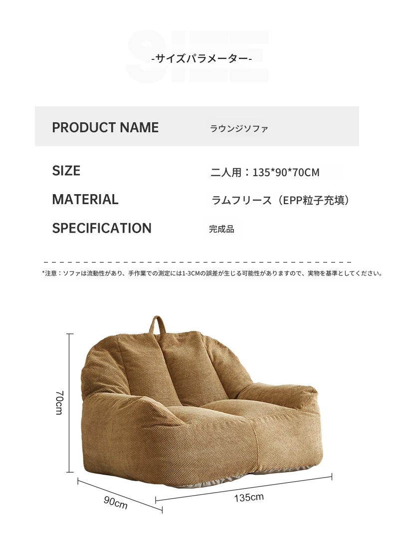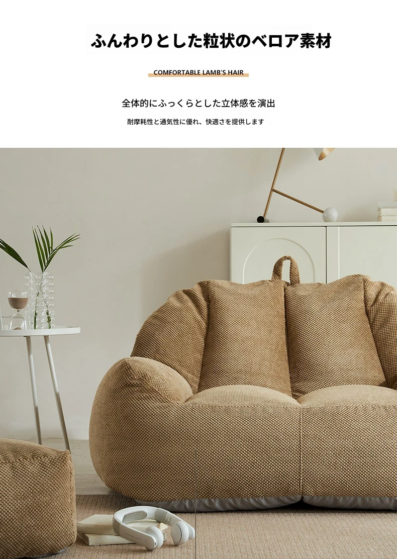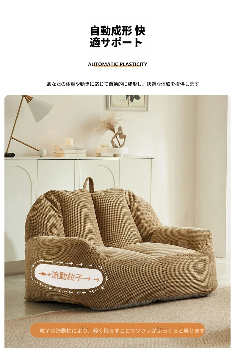 二人用リクライニングソファ EPPビーズクッション - 北欧スタイルの小型住宅向け、リビングや寝室、書斎、バルコニーに最適な快適なひとときを提供!