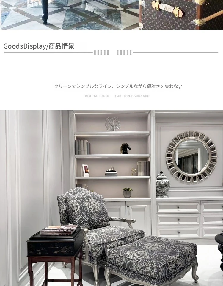 美邻乡村スタイルのアメリカンシャンパンカラー軽奢実木リラックスソファチェア - ハリス・トラッカーチェアとオットマンのコンビネーションで、居心地の良いリビング空間を演出します!