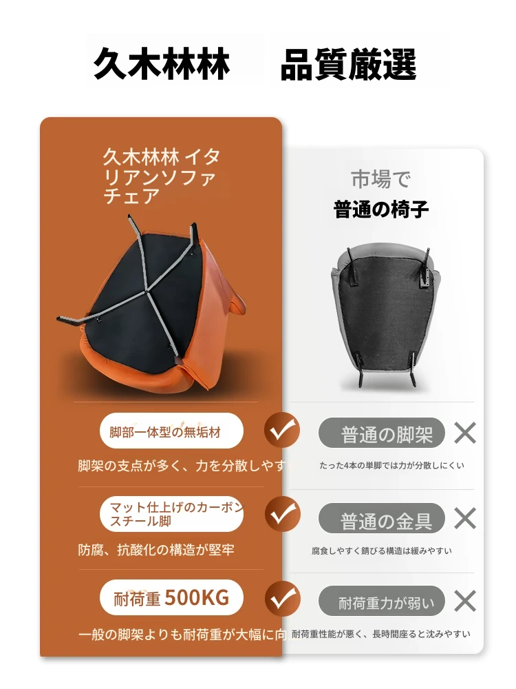 オレンジ色の単椅子+フットスツール【超ファイバー皮】