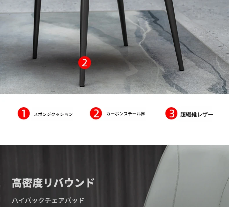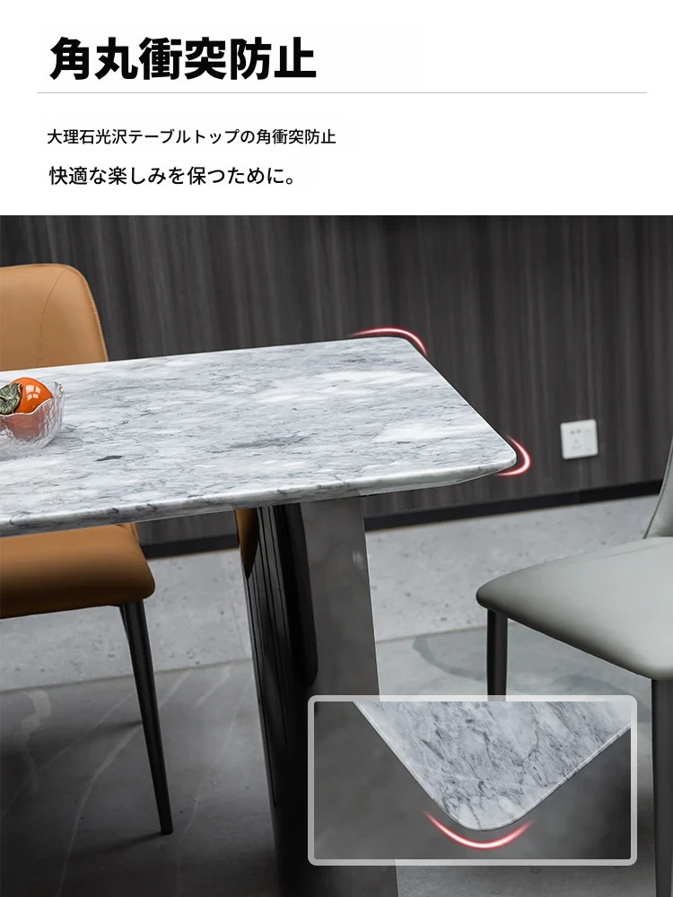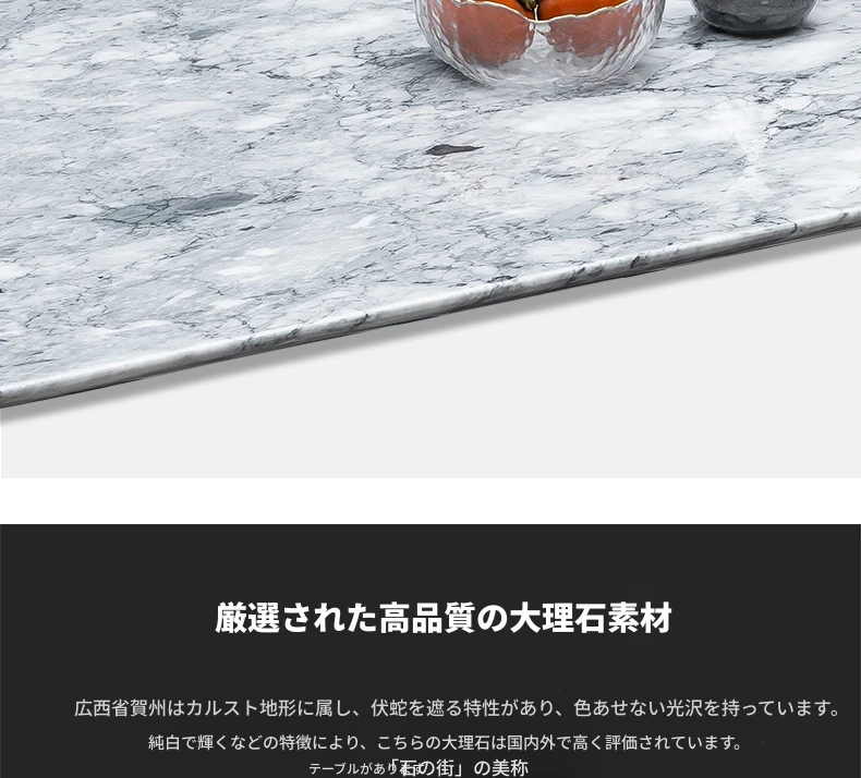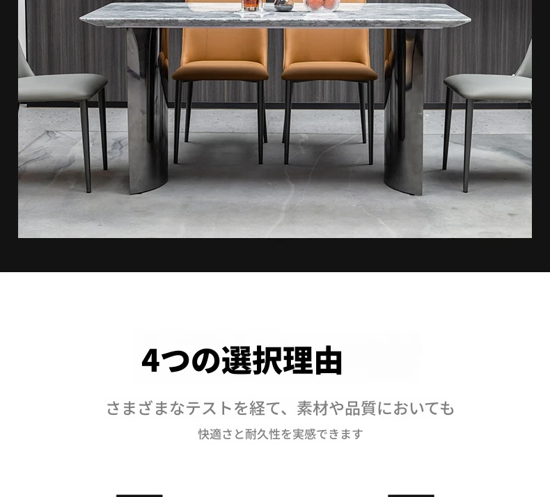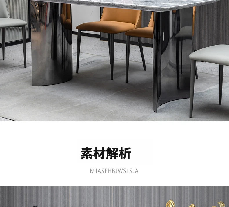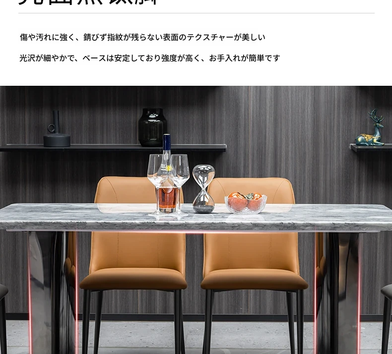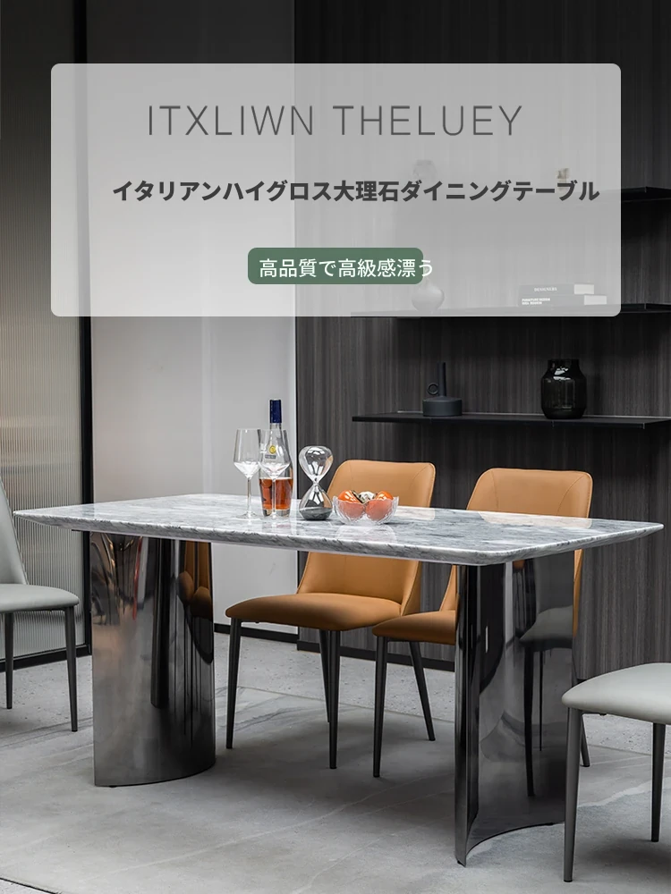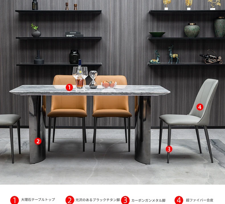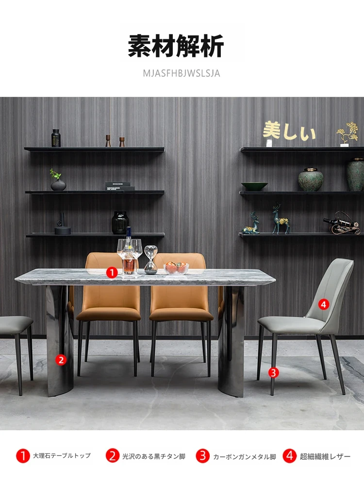 イタリアンミニマルデザインの天然大理石ダイニングテーブルセット - 高級感あふれる長方形テーブルと椅子のコンビネーションで、洗練された空間を演出します。