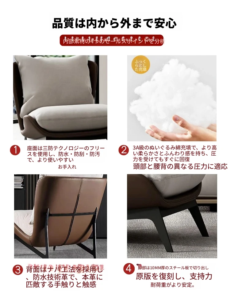 超繊維レザー/ダヴベルベット浅灰色【オリジナルチェア+フットスツール】三重綿
