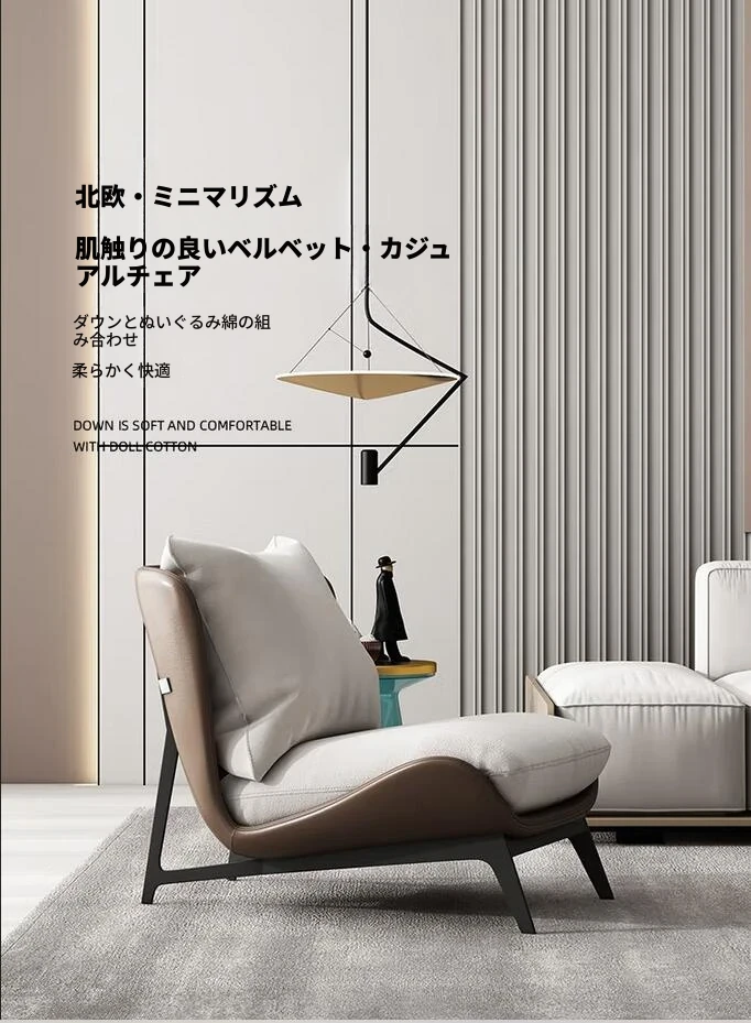 超繊維レザー/深コーヒーのベルベットチェア+フットスツール【基本型】