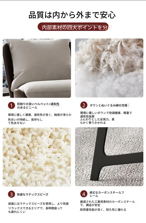 超繊維レザー/深灰色のベルベットチェア+フットスツール【基本型】