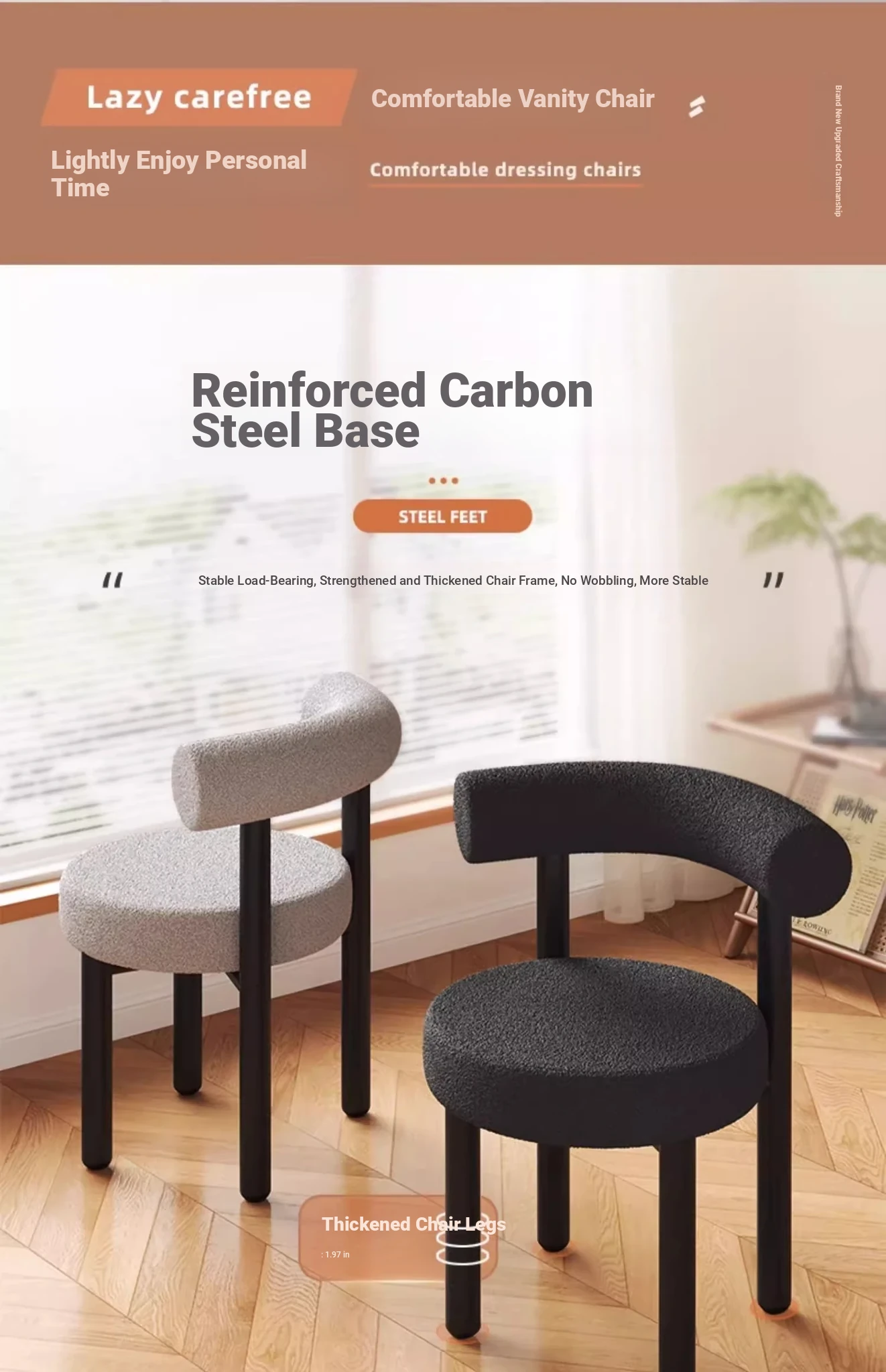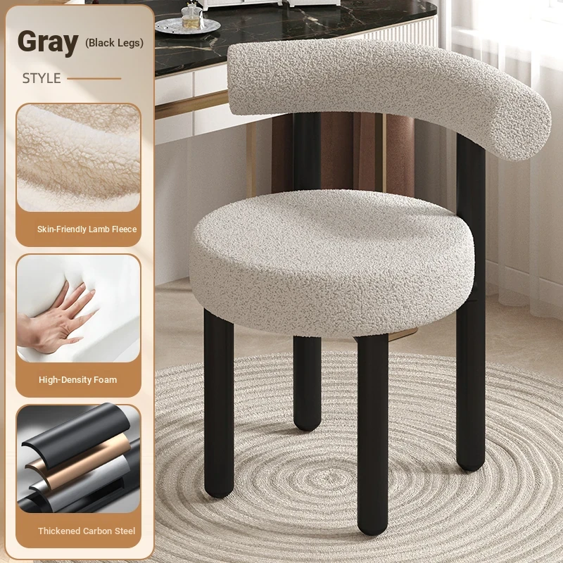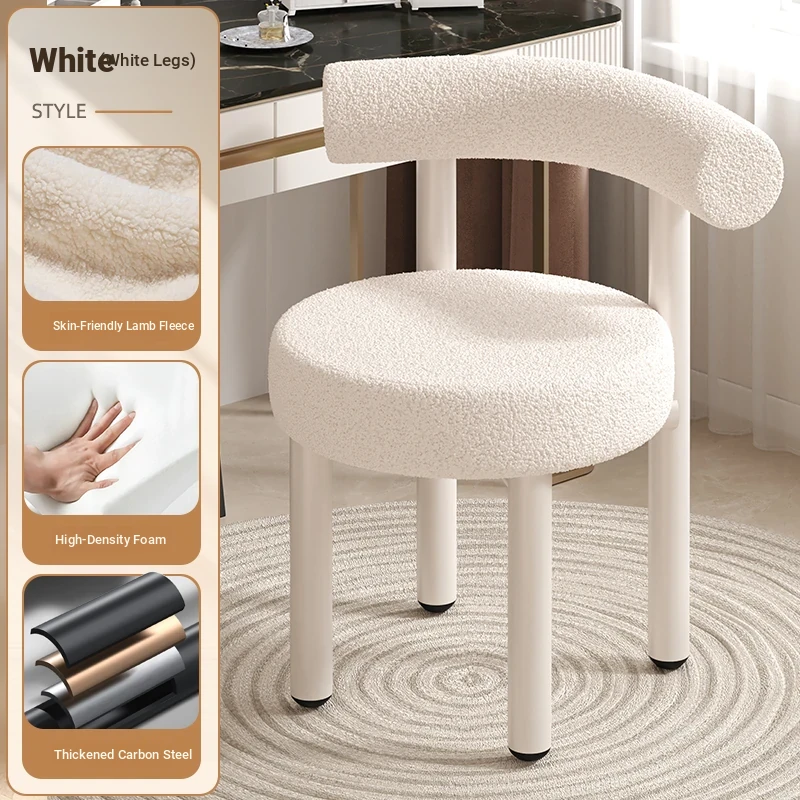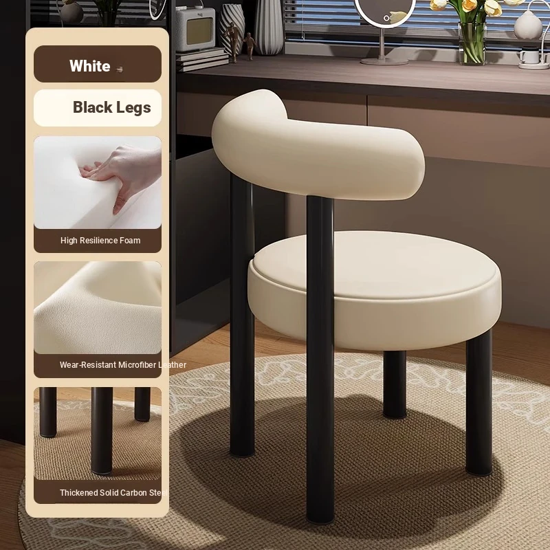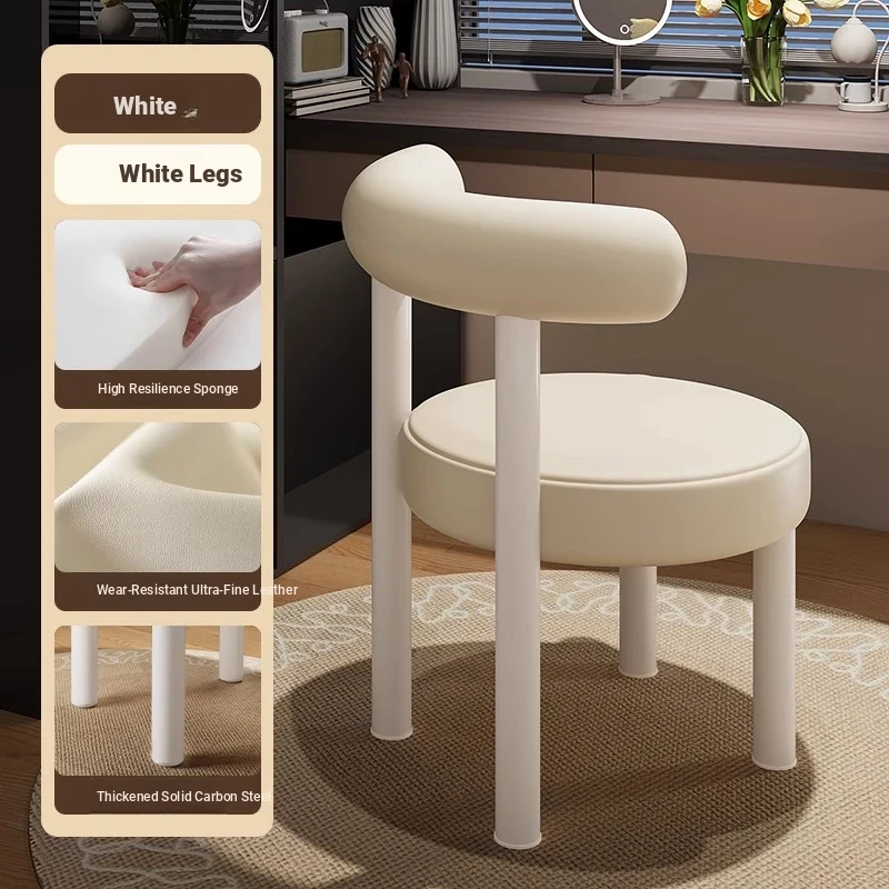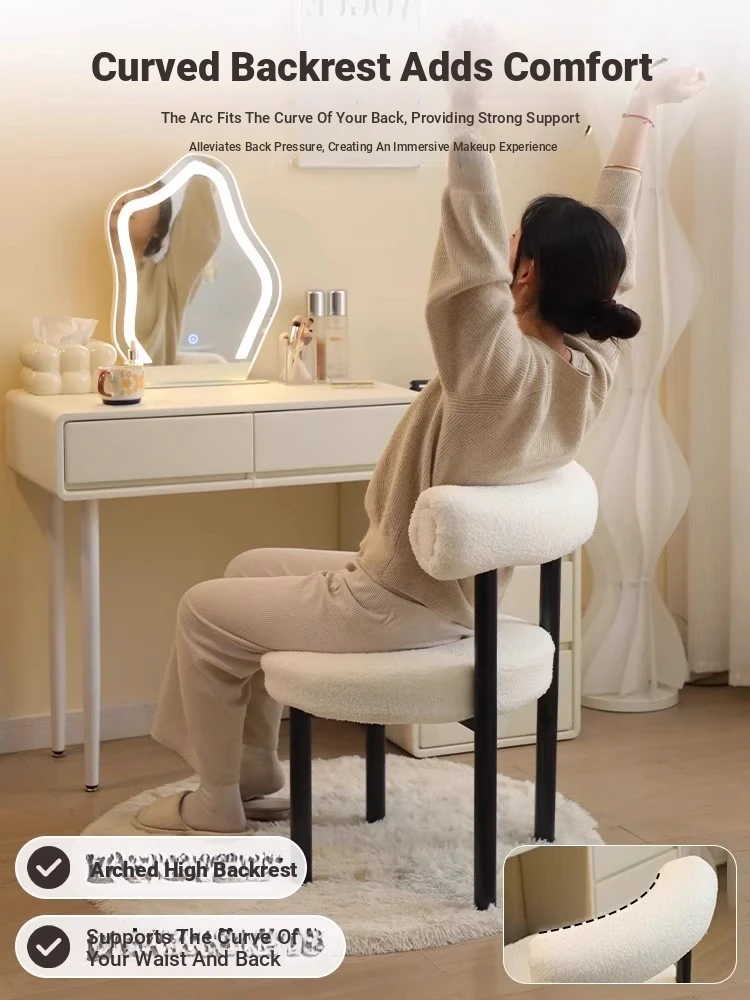 Elegant Makeup Stool for Home Use - Chic Vanity Chair for Women's Bedrooms, Stylish and Comfortable with Backrest, Perfect for Beauty and Nail Care.