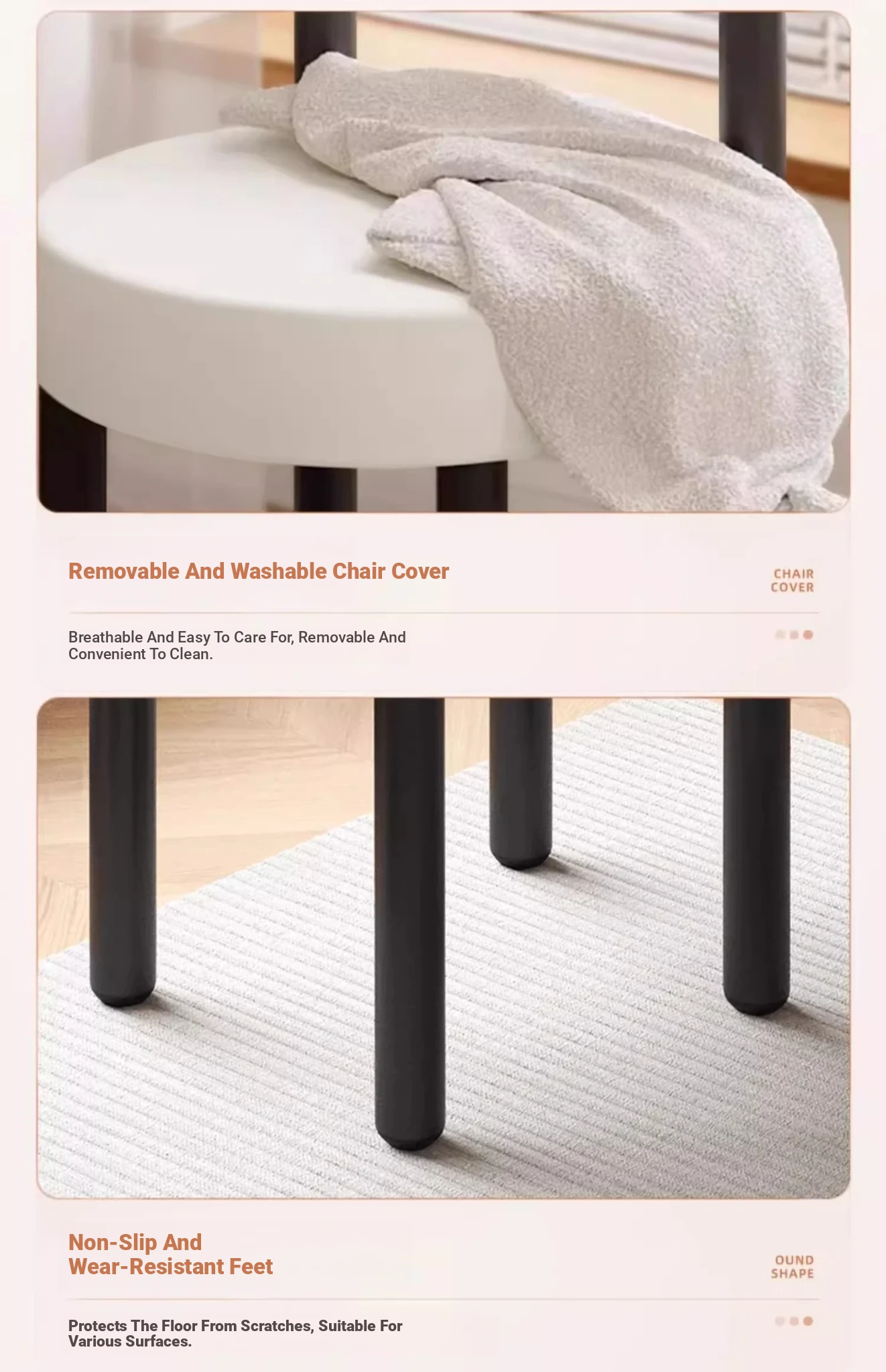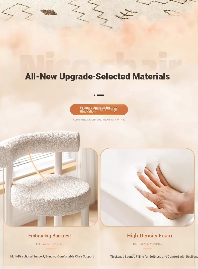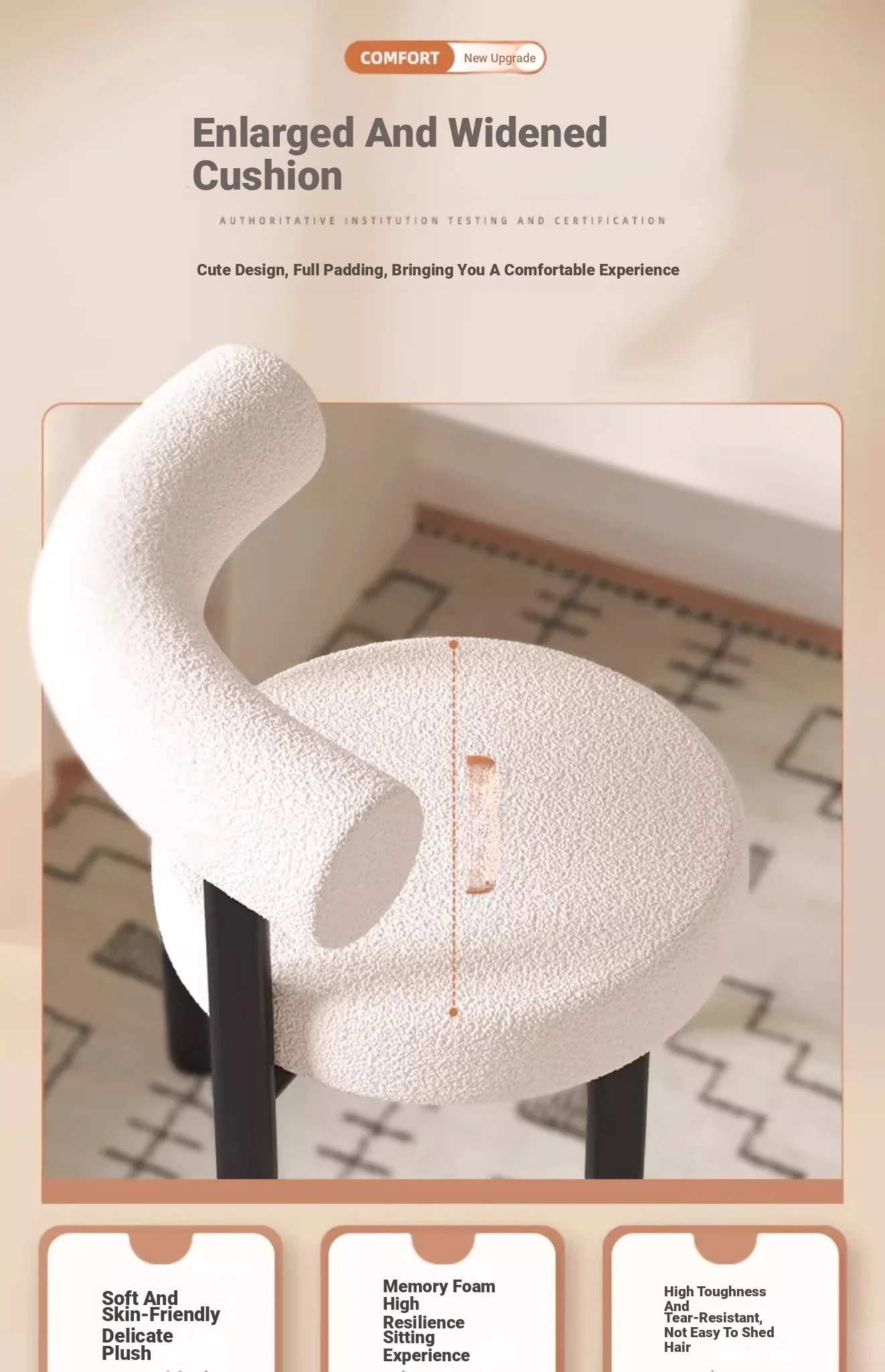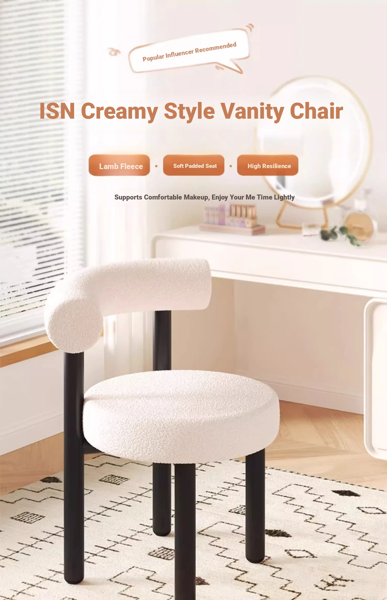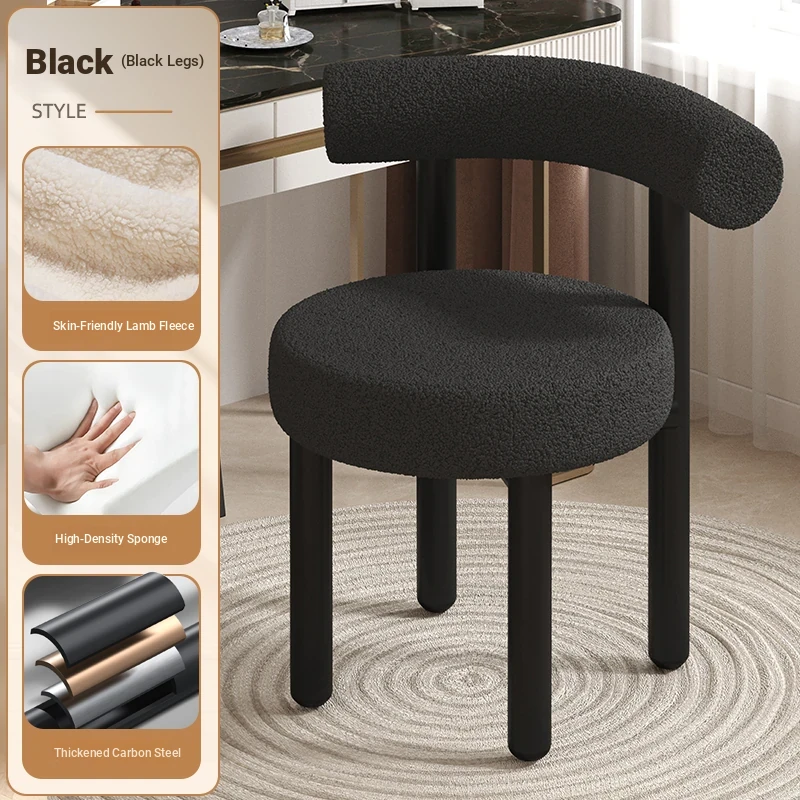 Elegant Makeup Stool for Home Use - Chic Vanity Chair for Women's Bedrooms, Stylish and Comfortable with Backrest, Perfect for Beauty and Nail Care.