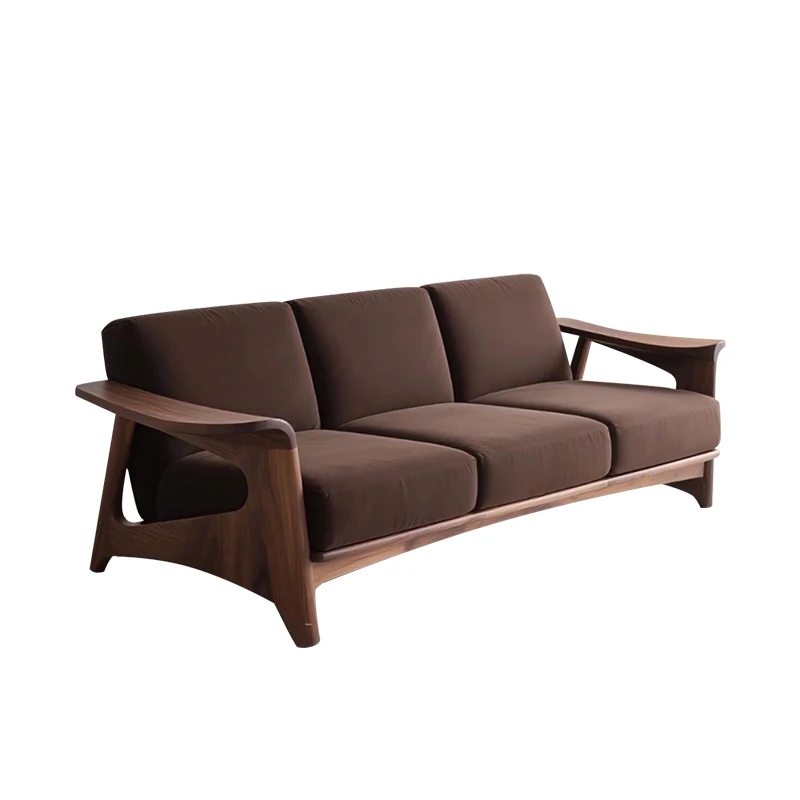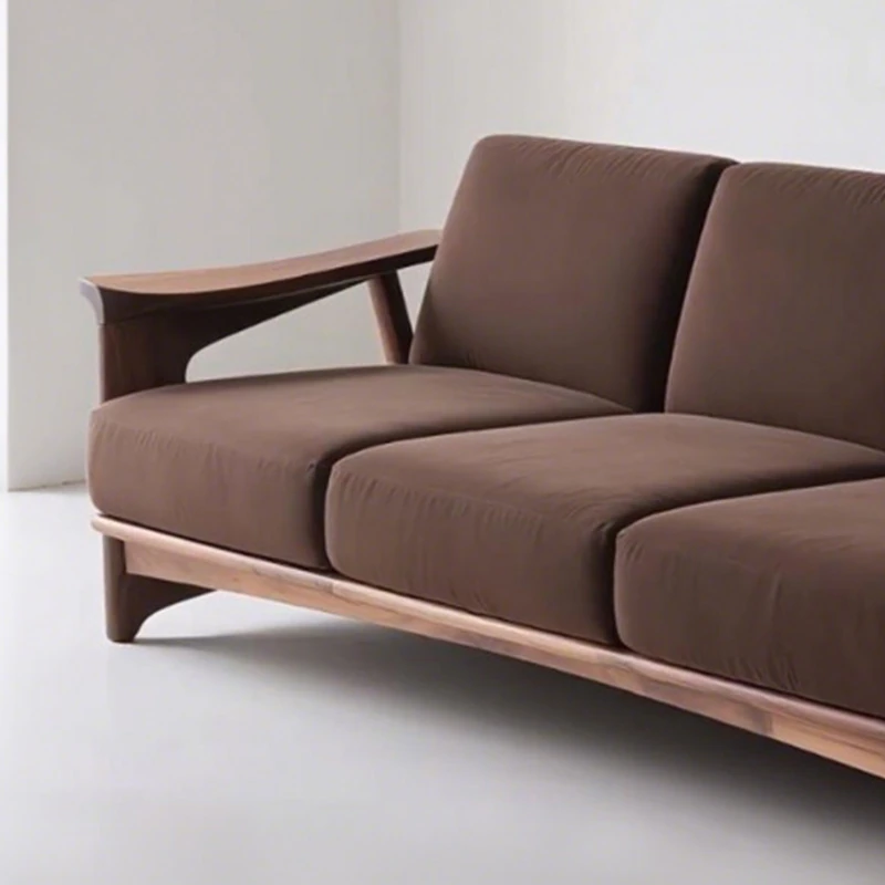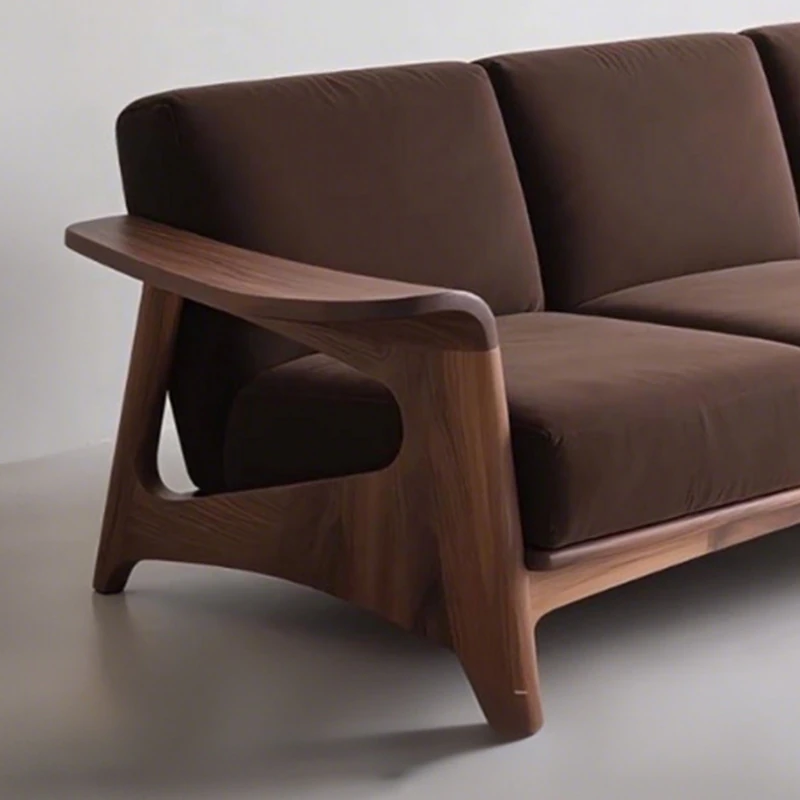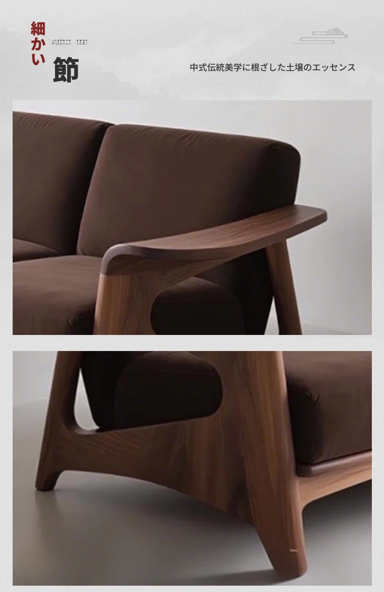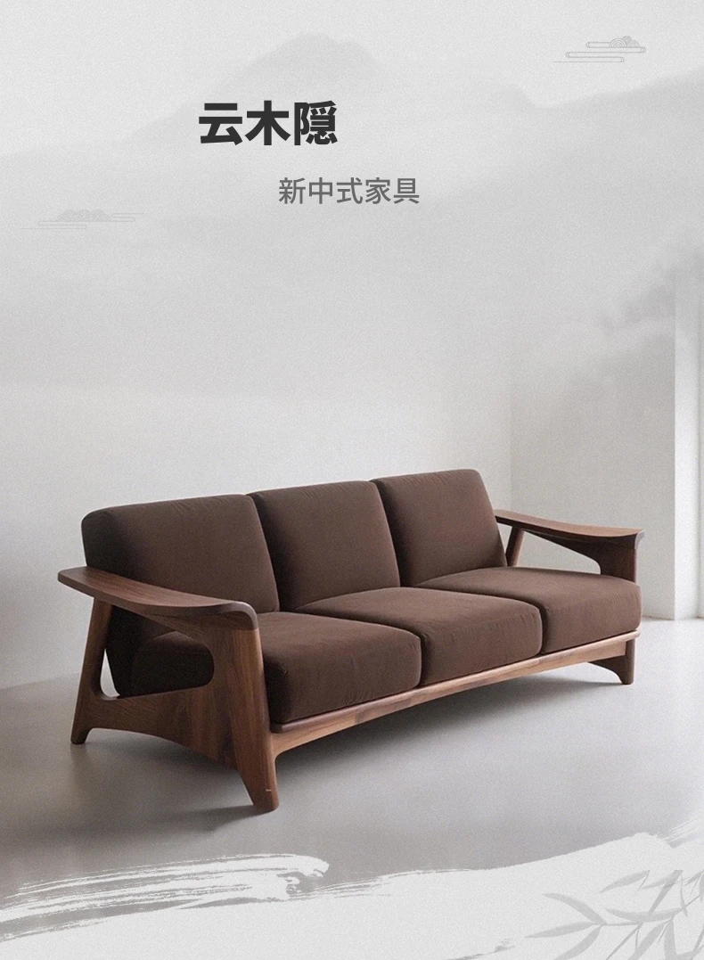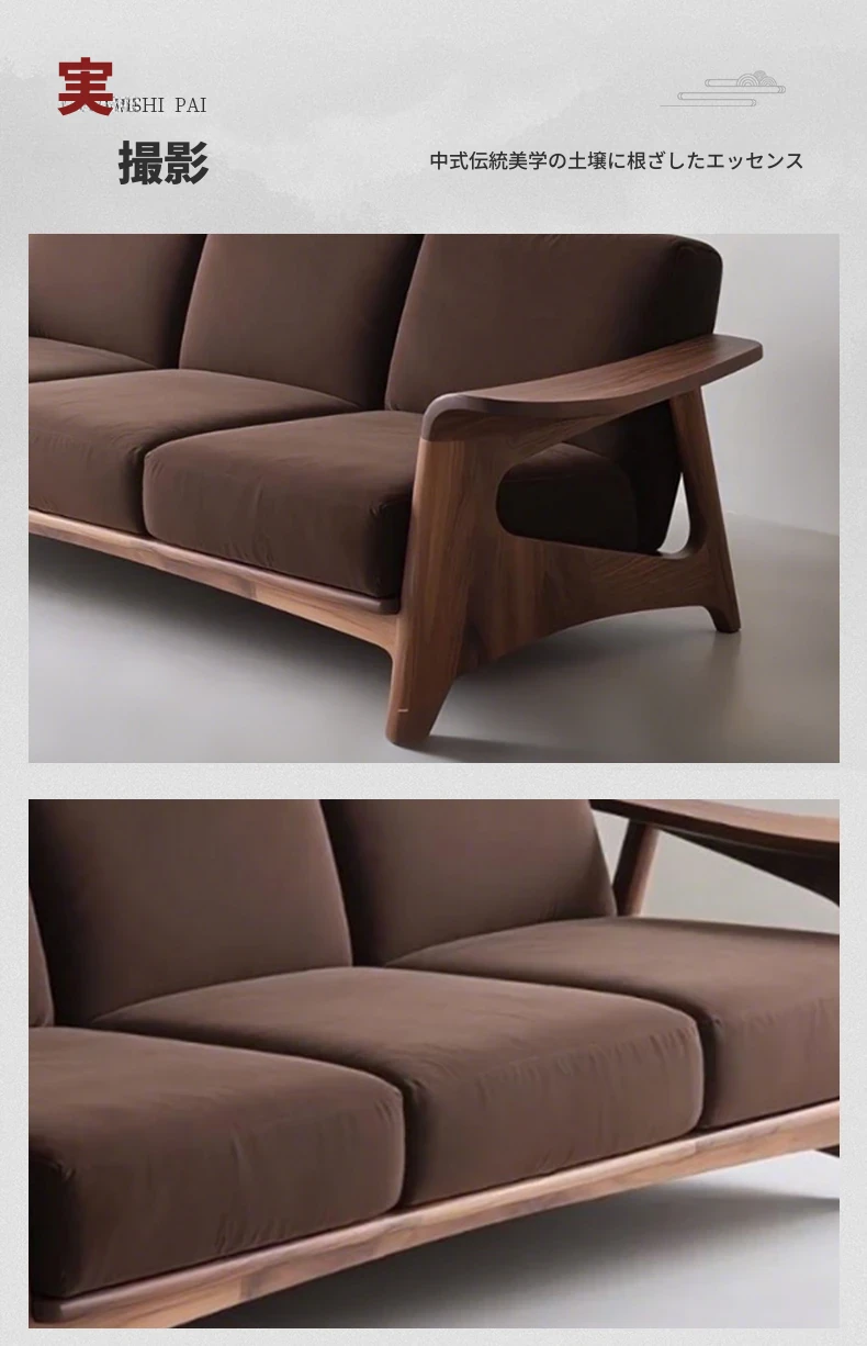 新中式スタイルの高級ブラックウォルナットウッドソファ、リビングルームにぴったりな直線的デザインの3人掛け、小型住宅向けの軽奢な本革ソファ。洗練された美しさと快適さを兼ね備えた一品です!