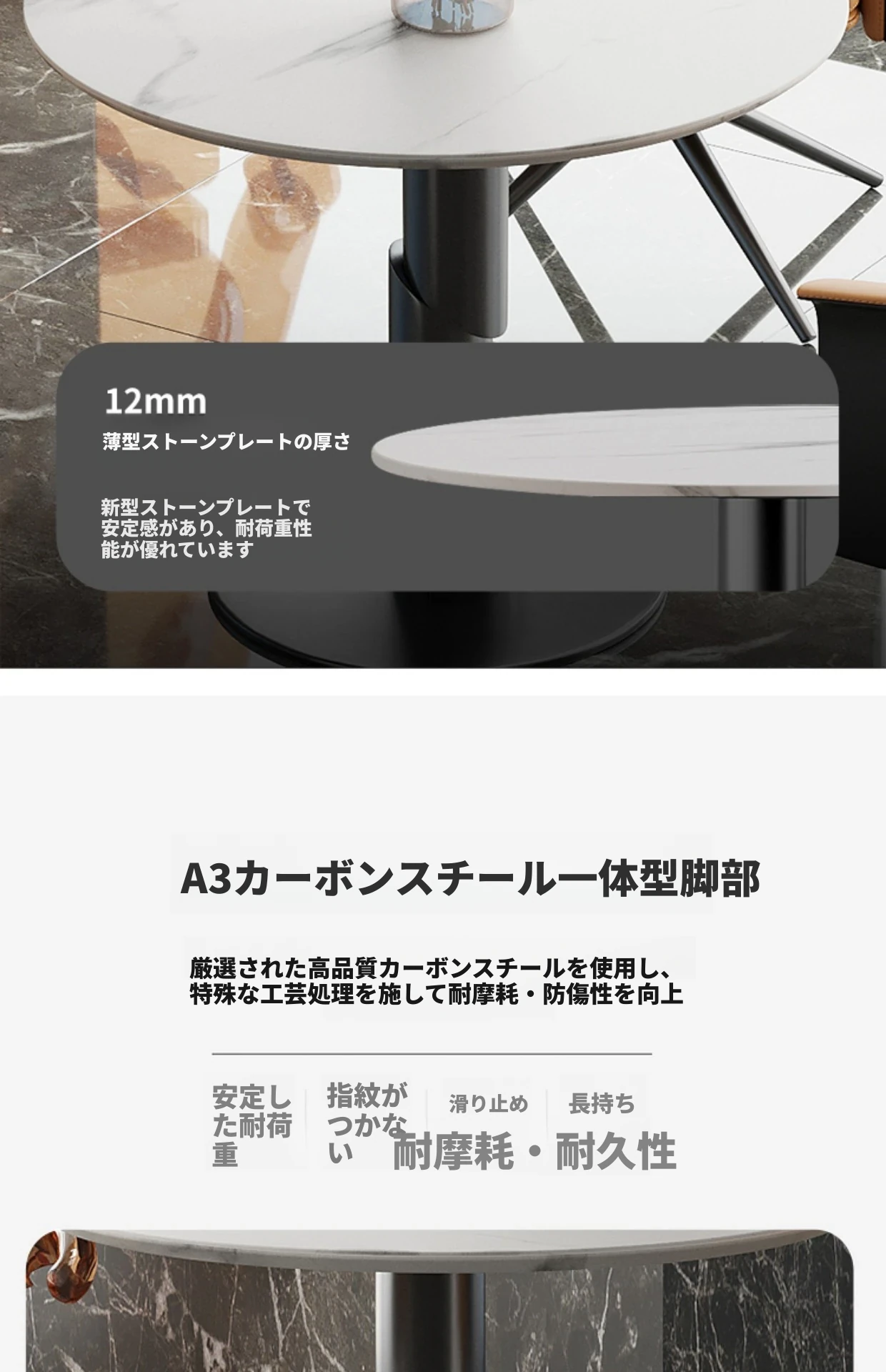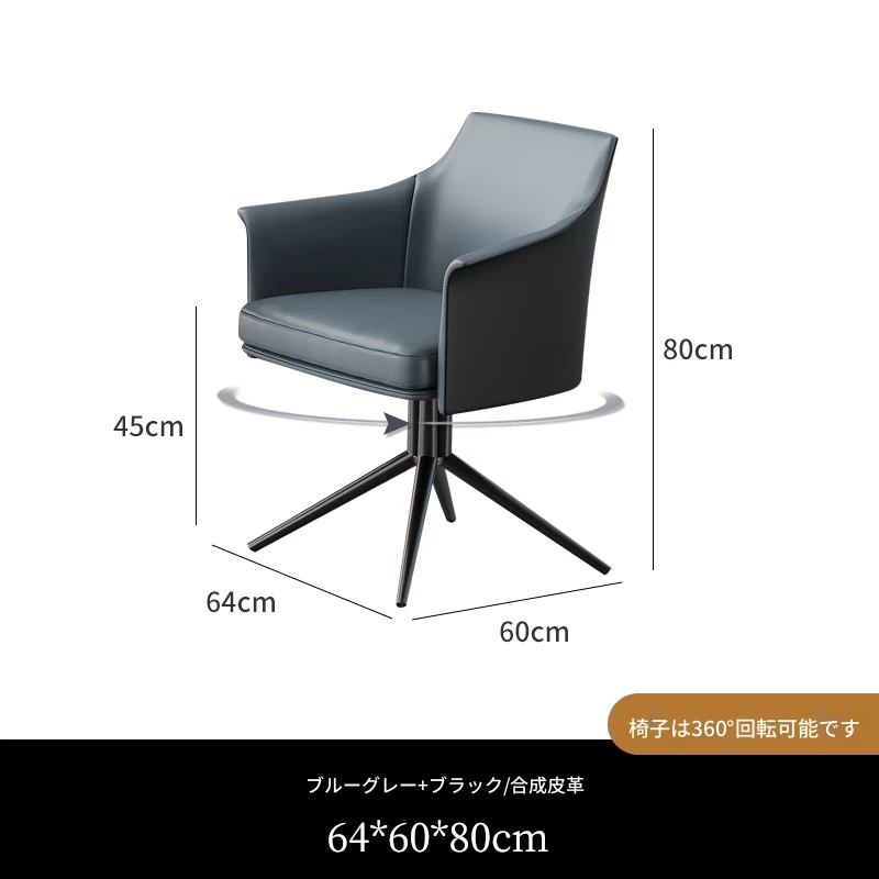 1テーブル4椅子:ブルーグレー+黒/西皮/回転付き + 円テーブル:70*75cm【雪山ホワイト天板】