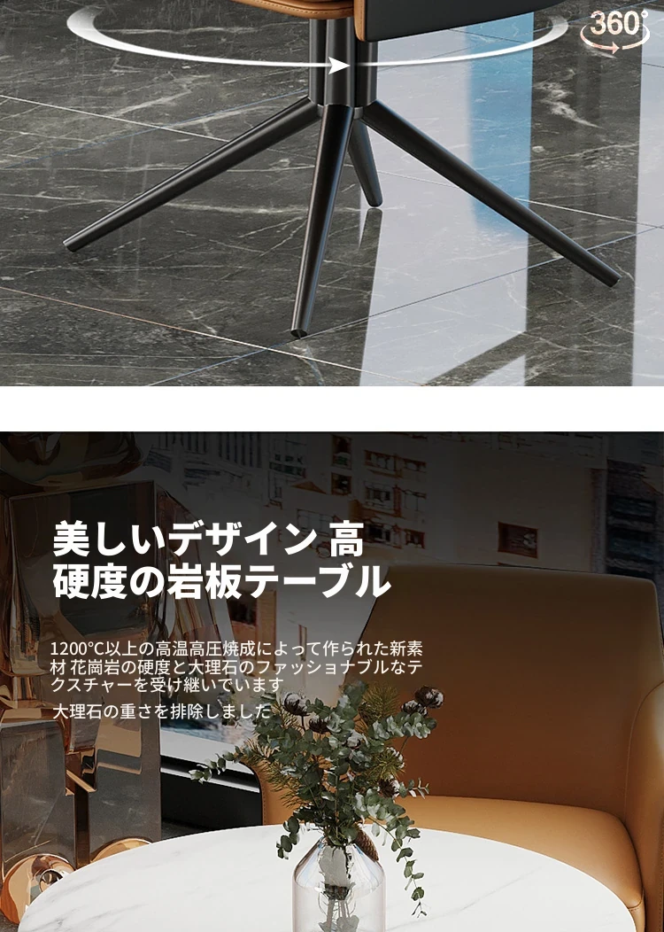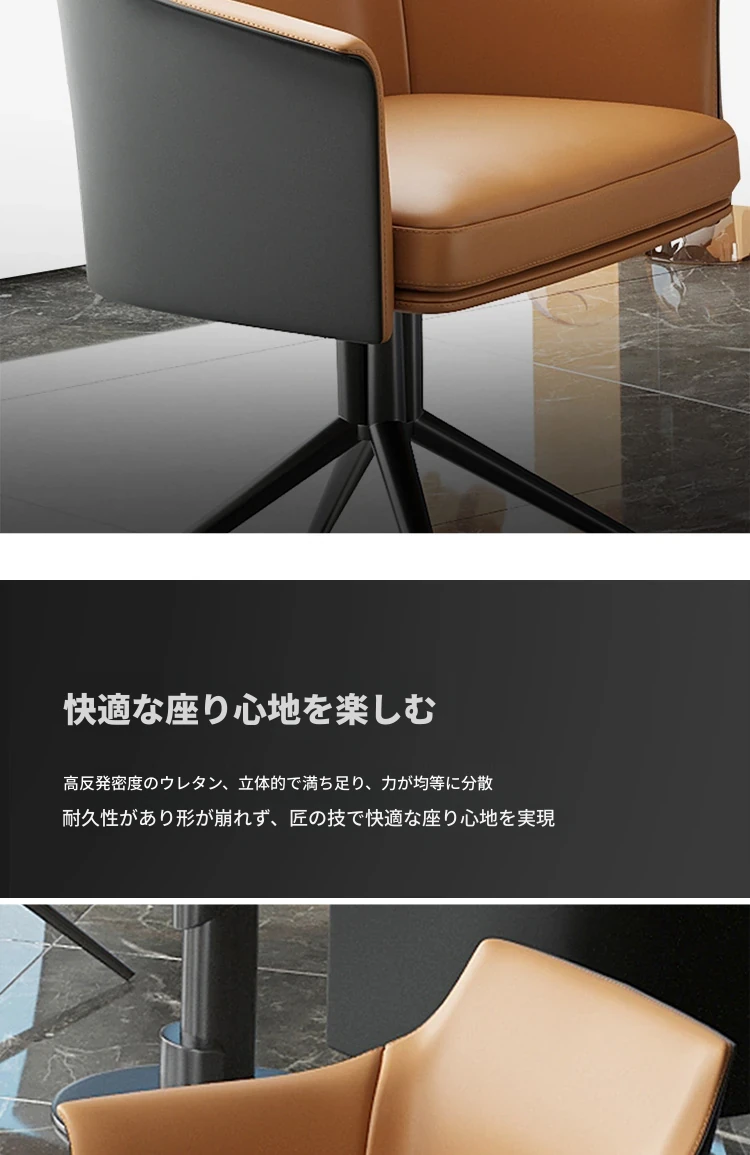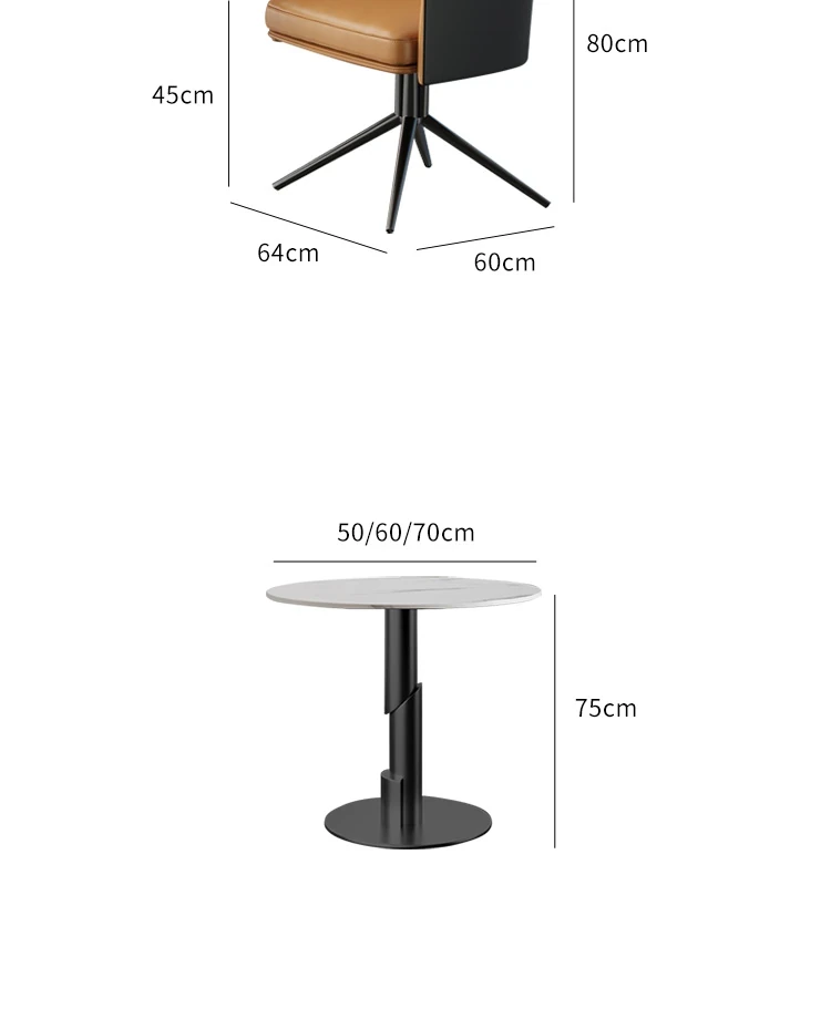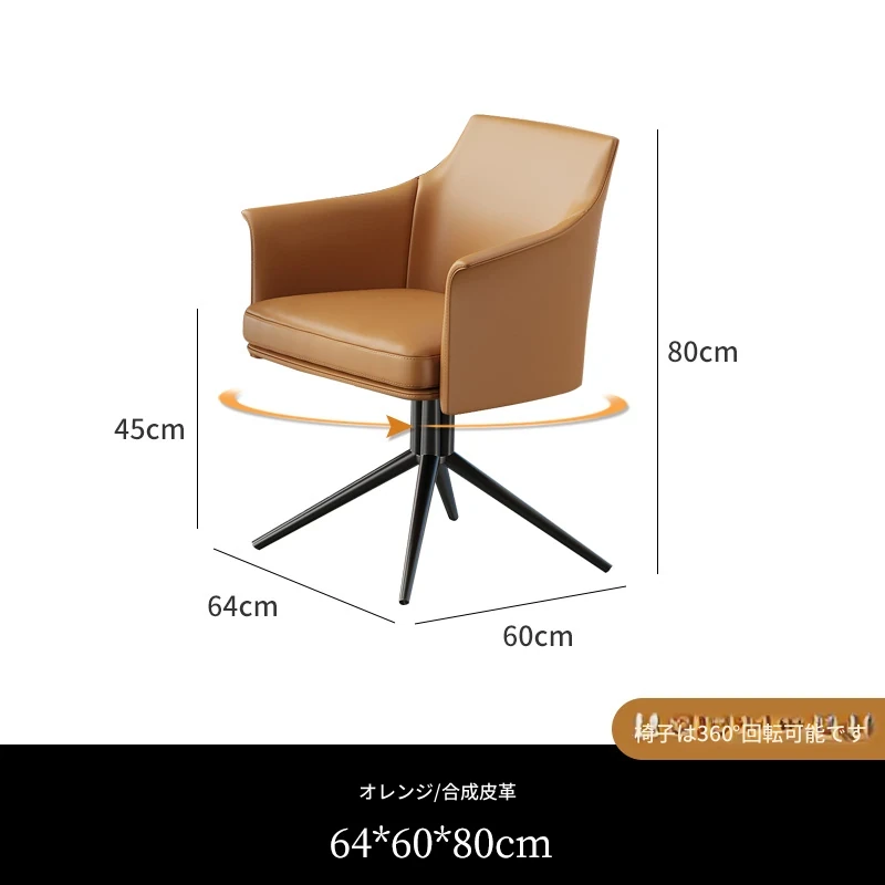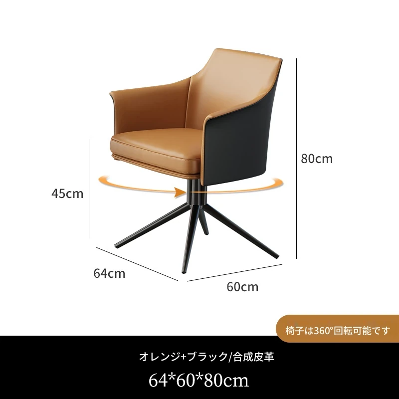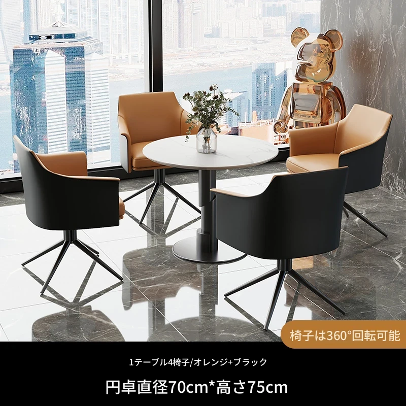 1テーブル4椅子:オレンジ+黒/西皮/回転付き + 円テーブル:70*75cm【雪山ホワイト天板】