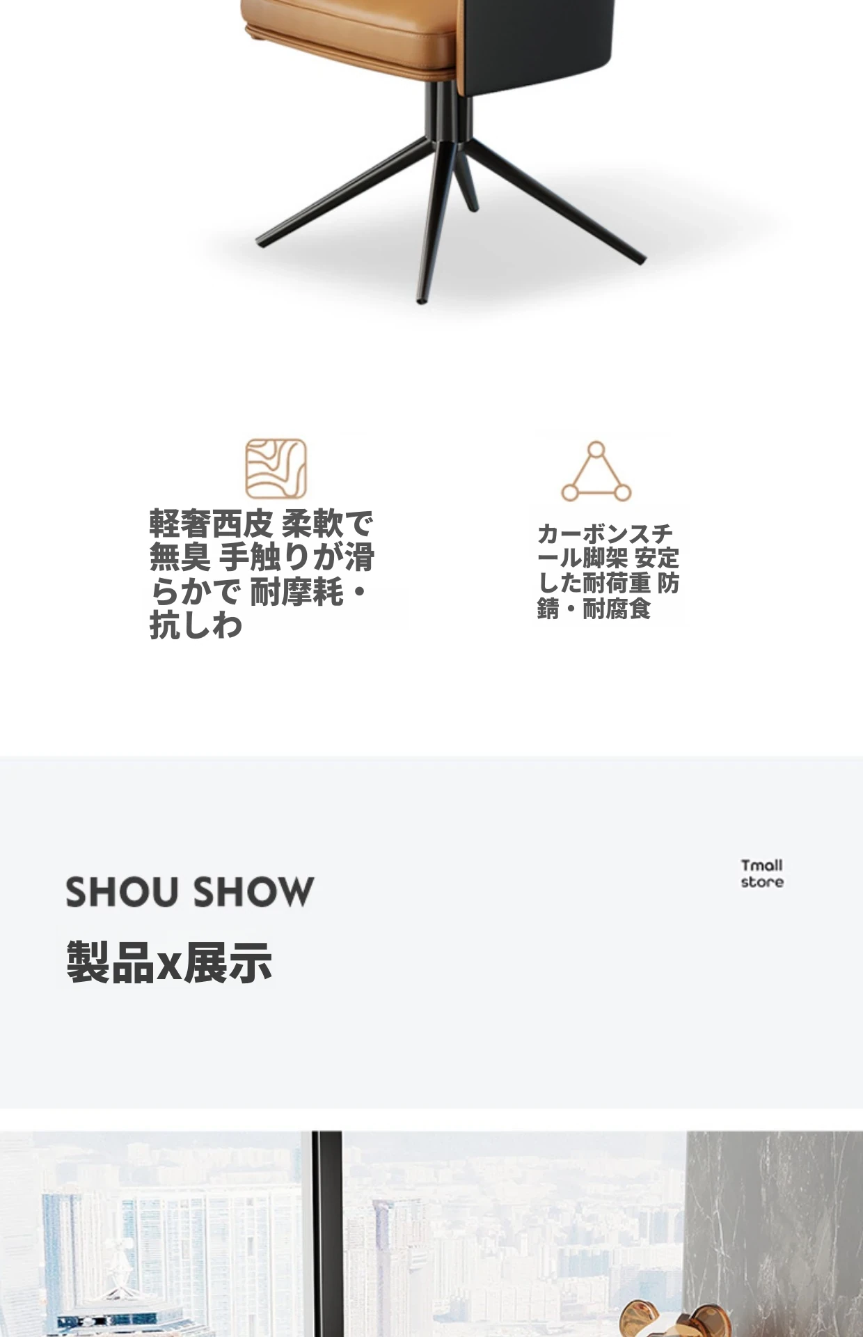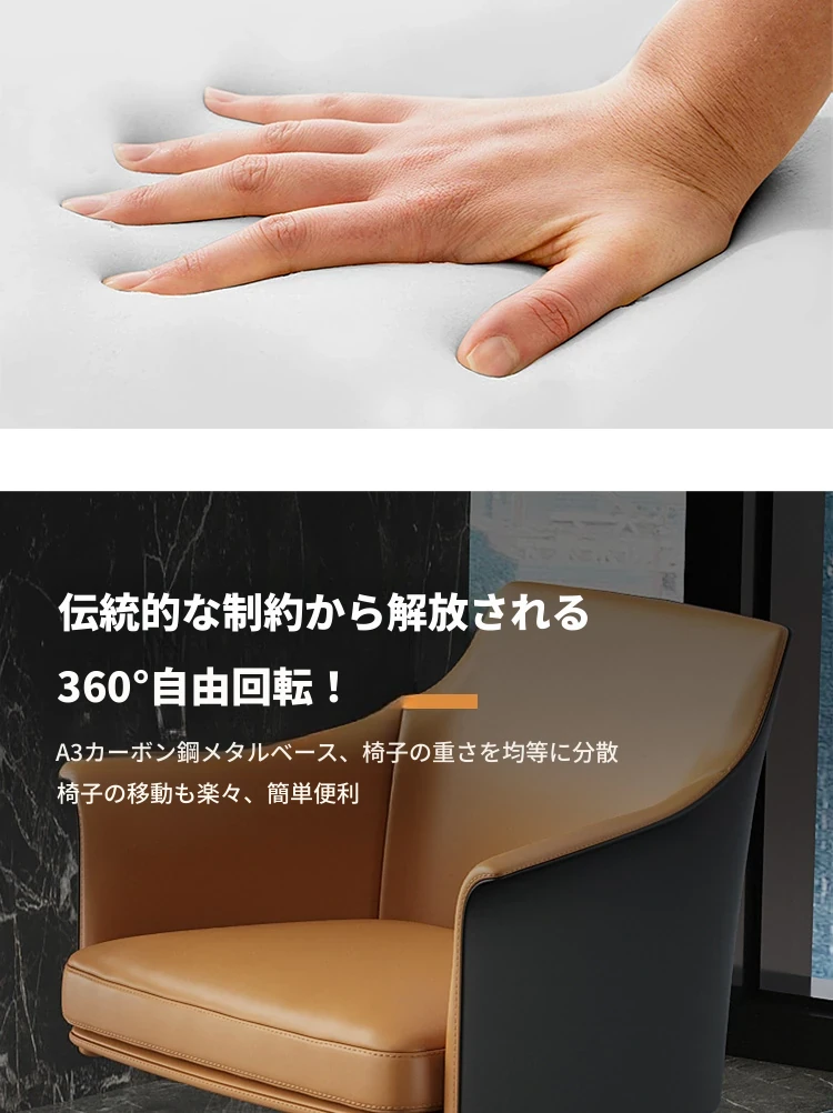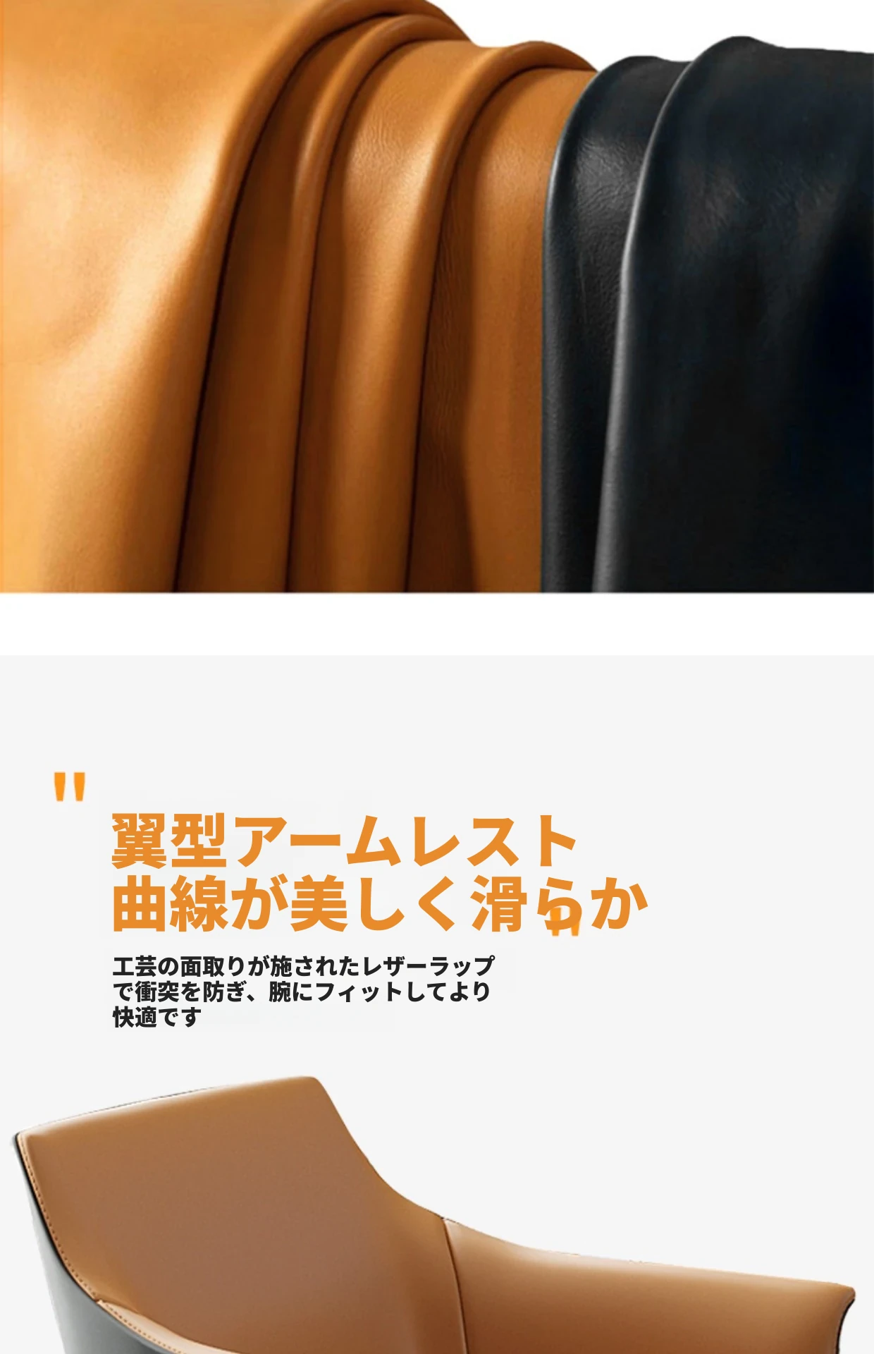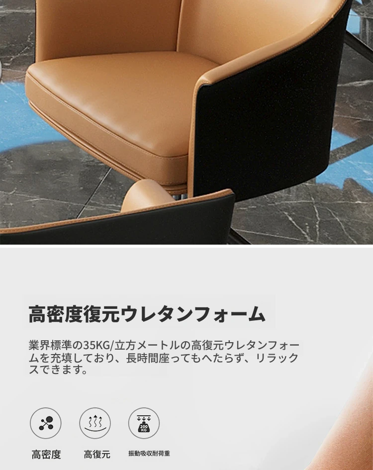 1テーブル4椅子:オレンジ+黒/西皮/回転付き + 円テーブル:70*75cm【雪山ホワイト天板】