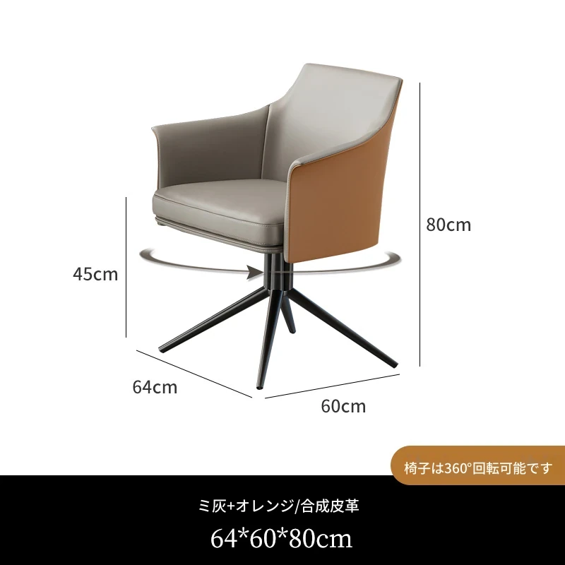 1テーブル4椅子:米グレー+オレンジ/西皮/回転付き + 円テーブル:70*75cm【雪山ホワイト天板】