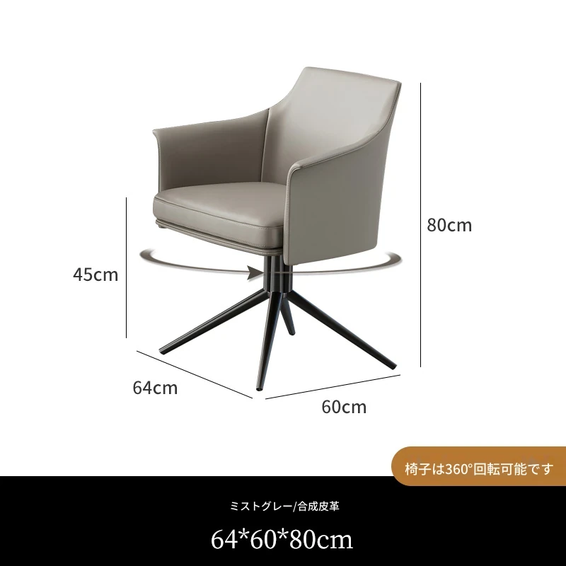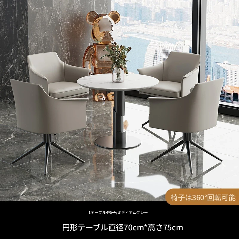 1テーブル4椅子:米グレー/西皮/回転付き + 円テーブル:70*75cm【雪山ホワイト天板】
