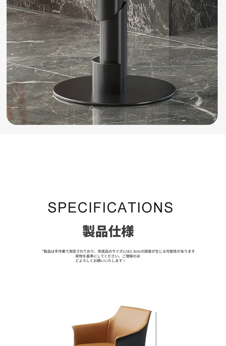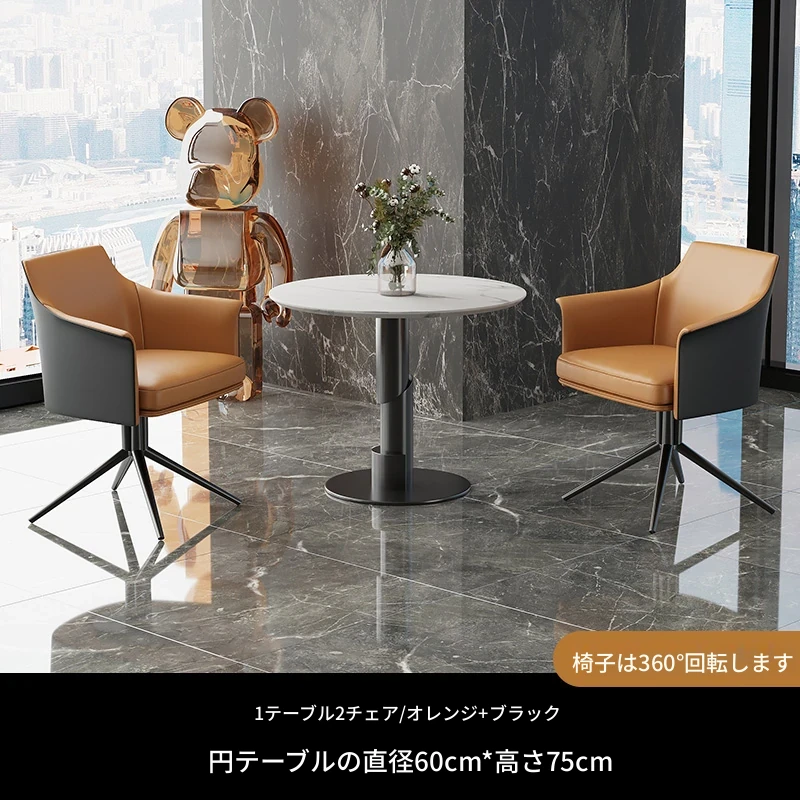 1テーブル2椅子:オレンジ+黒/西皮/回転付き + 円テーブル:60*75cm【雪山ホワイト天板】
