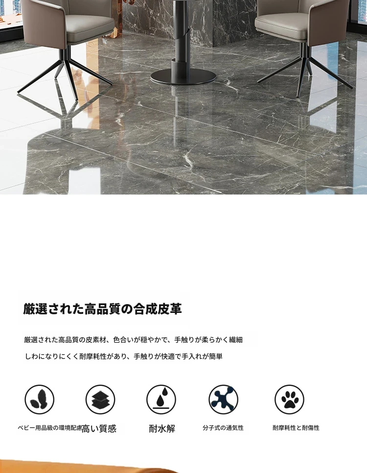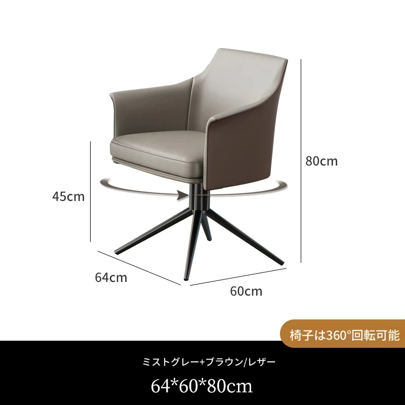 1テーブル4椅子:米グレー+ブラウン/西皮/回転付き + 円テーブル:70*75cm【雪山ホワイト天板】