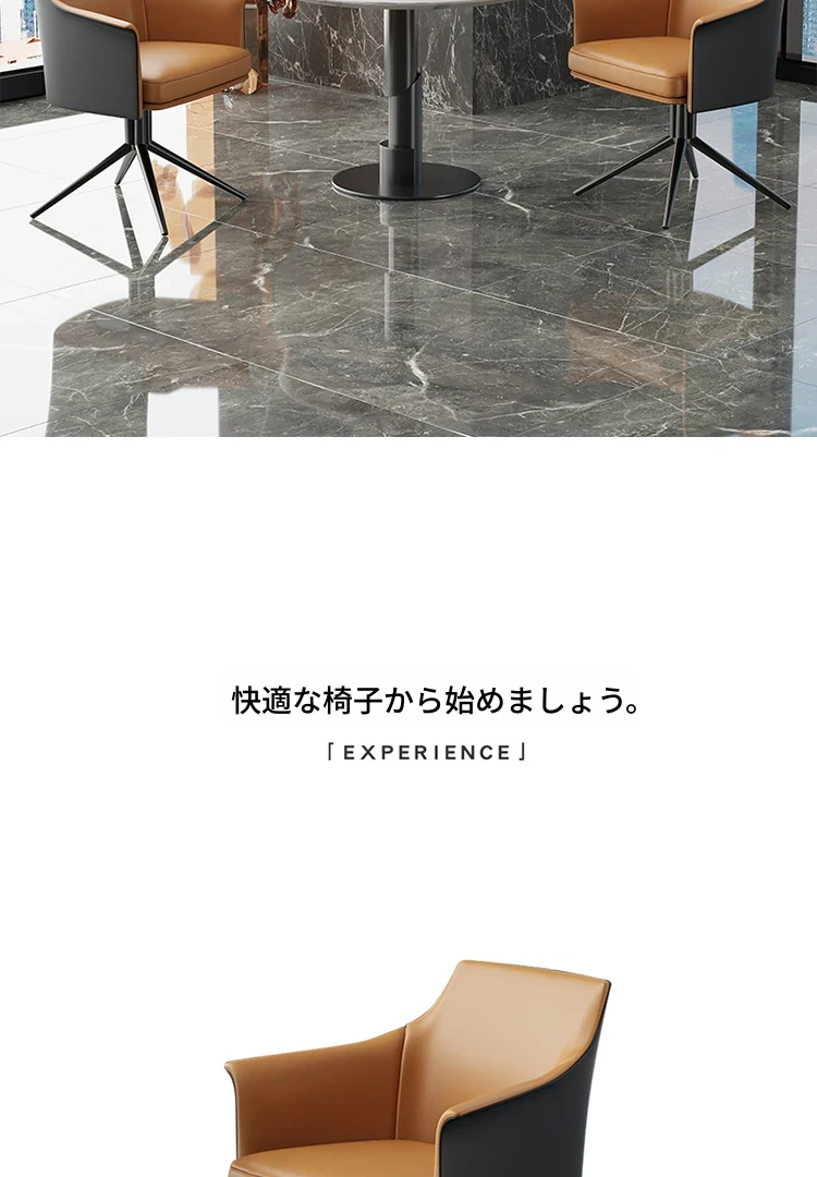 1テーブル4椅子:オレンジ/西皮/回転付き + 円テーブル:70*75cm【雪山ホワイト天板】