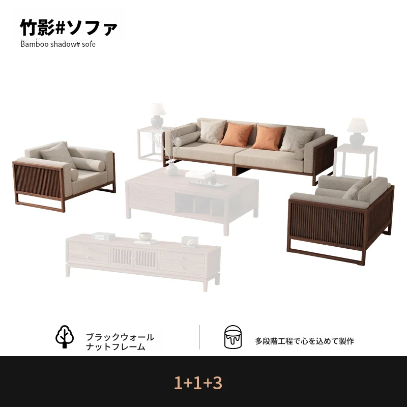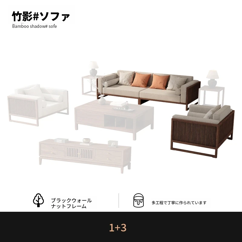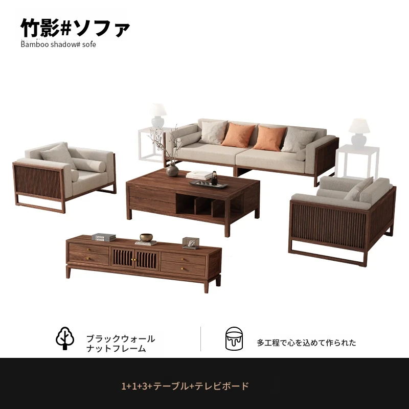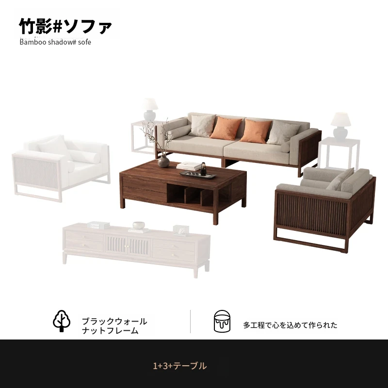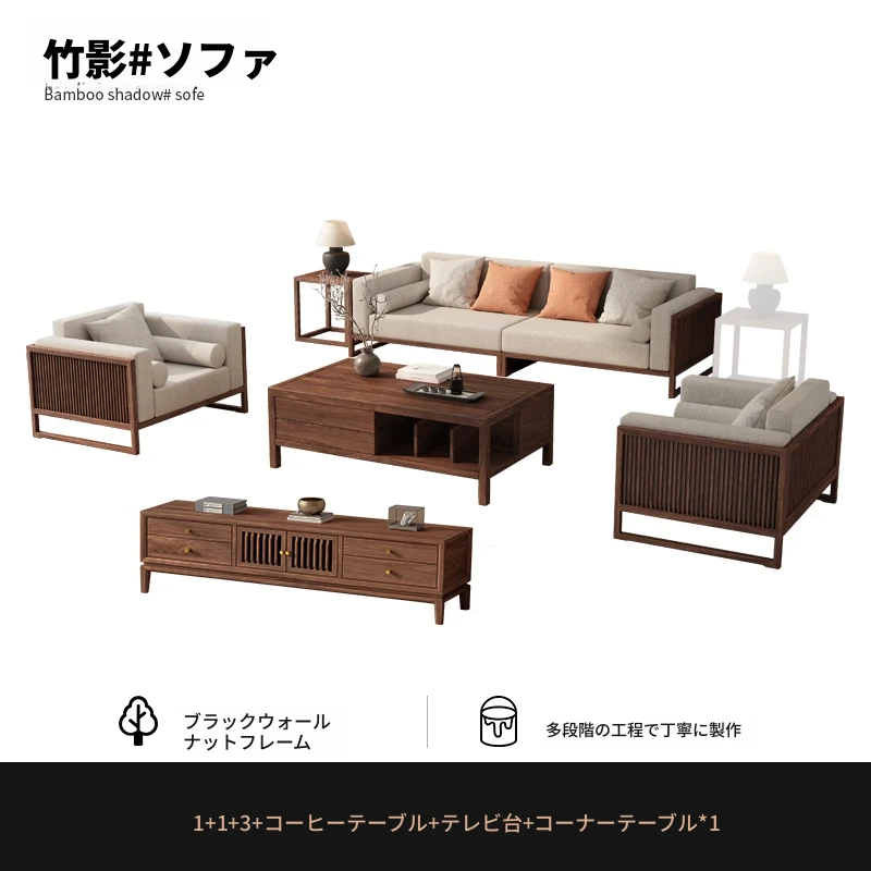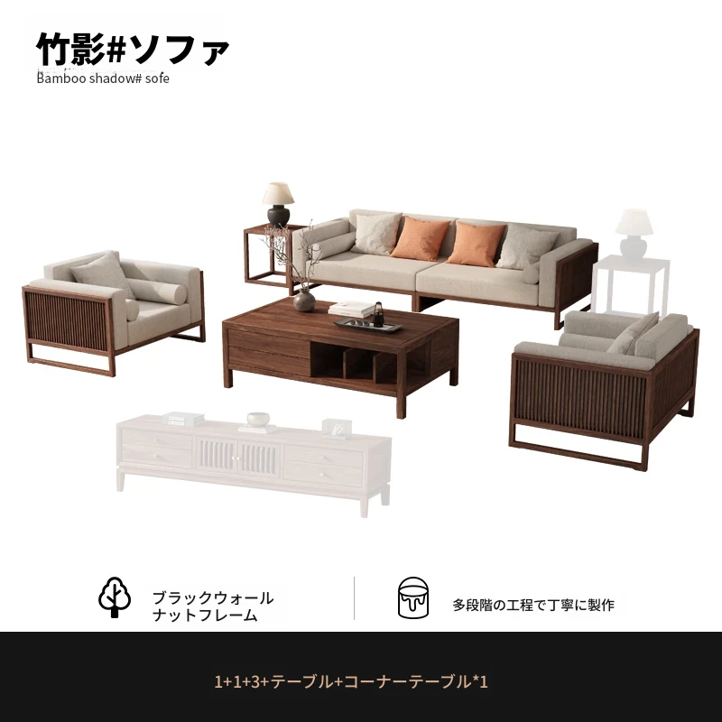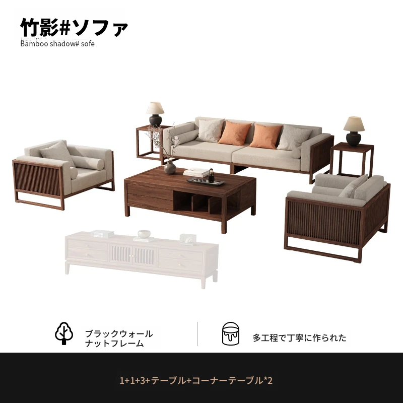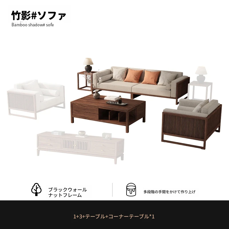 【宋式美学】FASグレードのブラックウォールナット1+1+3+ローテーブル+テレビ台+コーナーテーブル*1