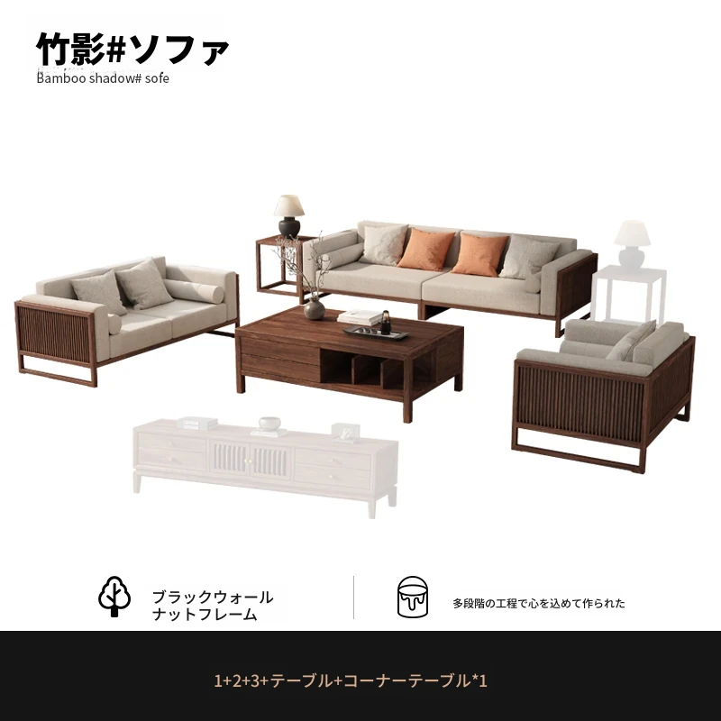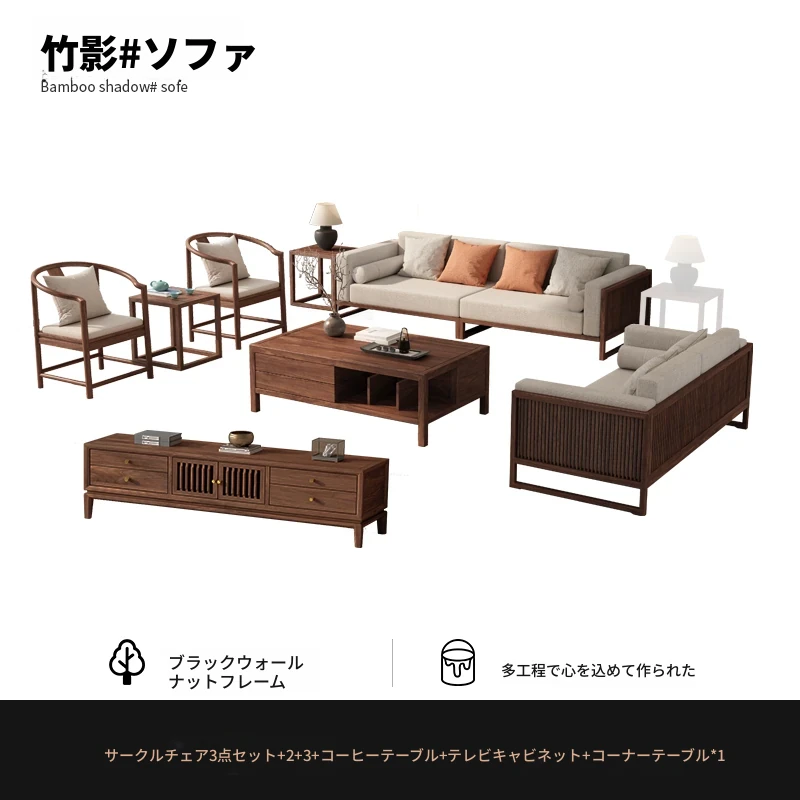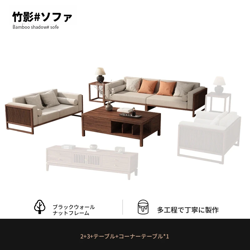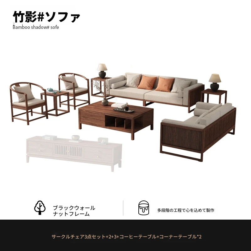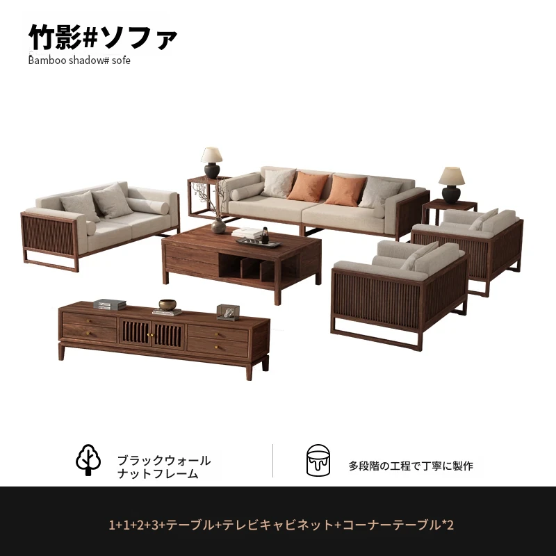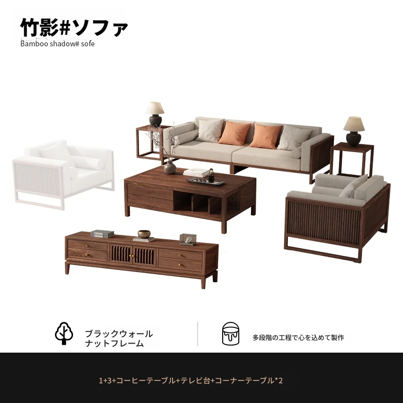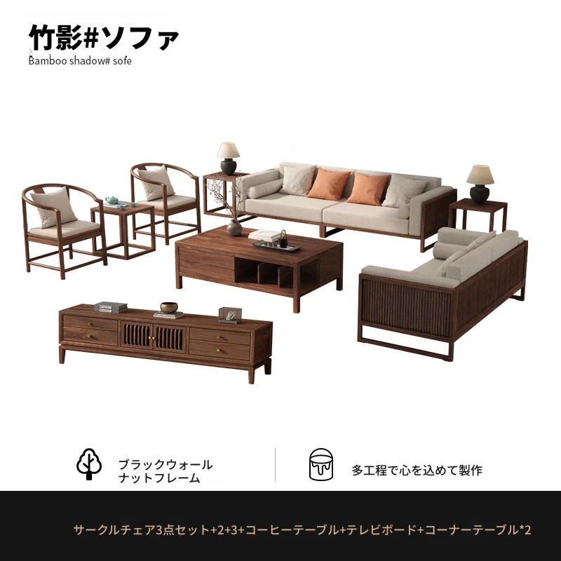 【宋式美学】FASグレードのブラックウォールナット1+1+2+3+ローテーブル+テレビ台+コーナーテーブル*1