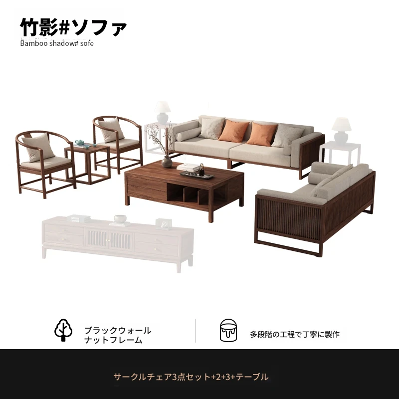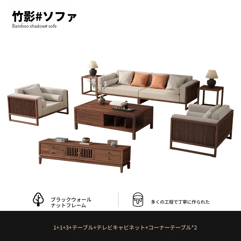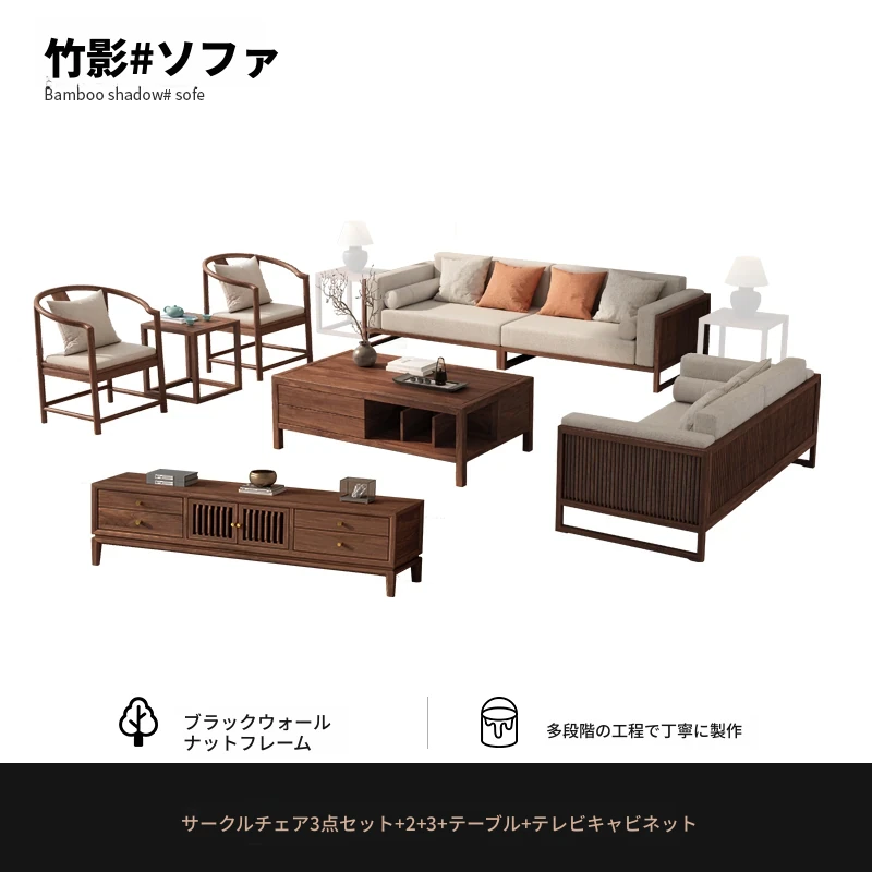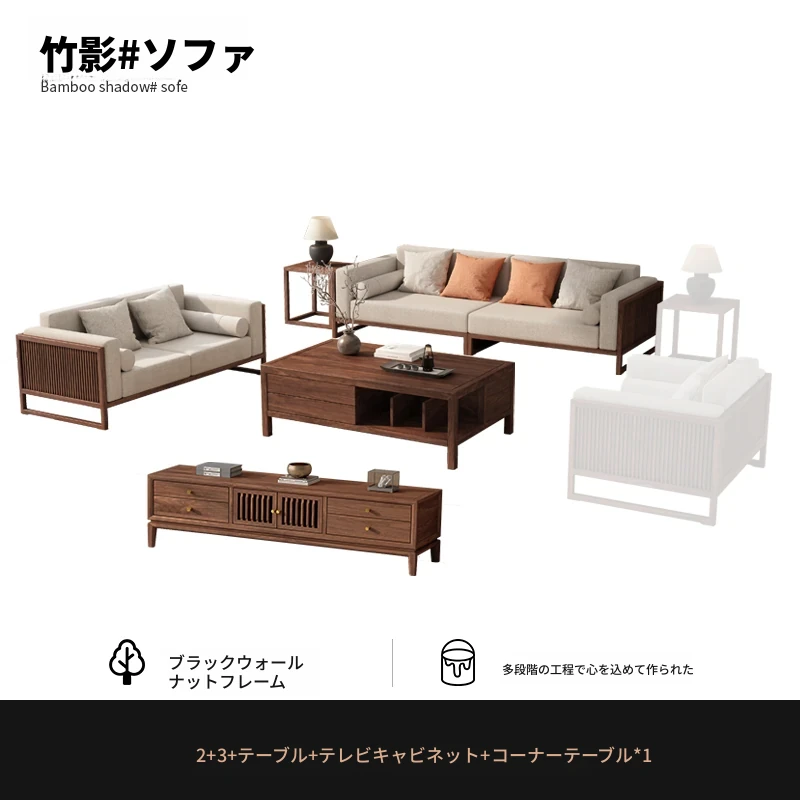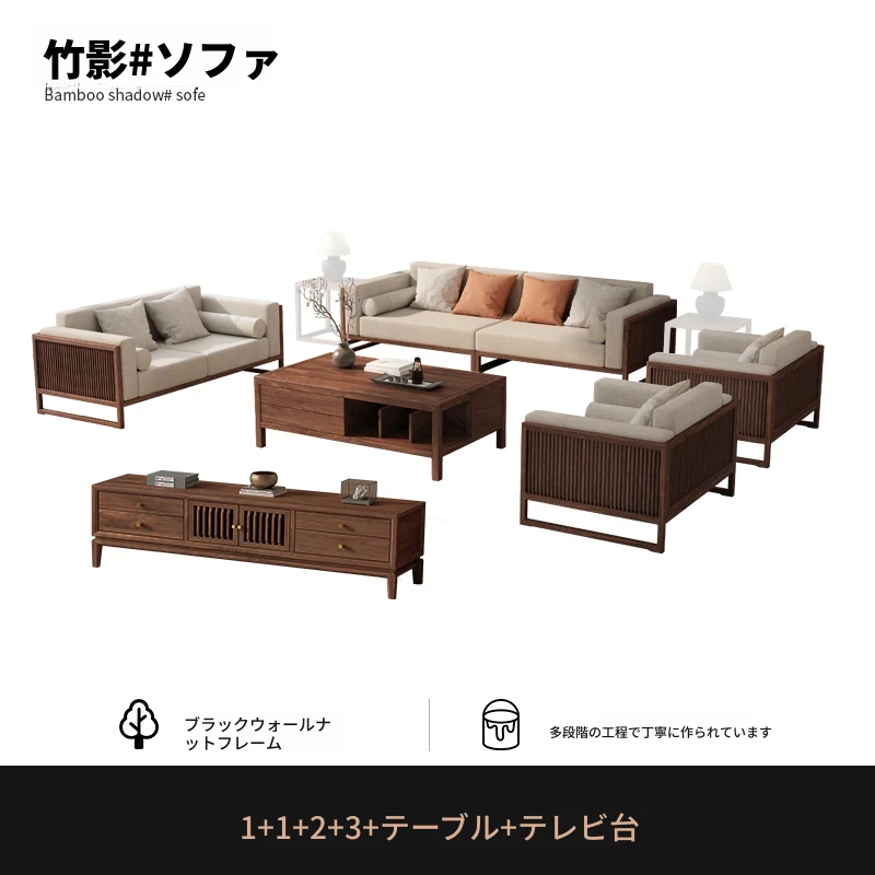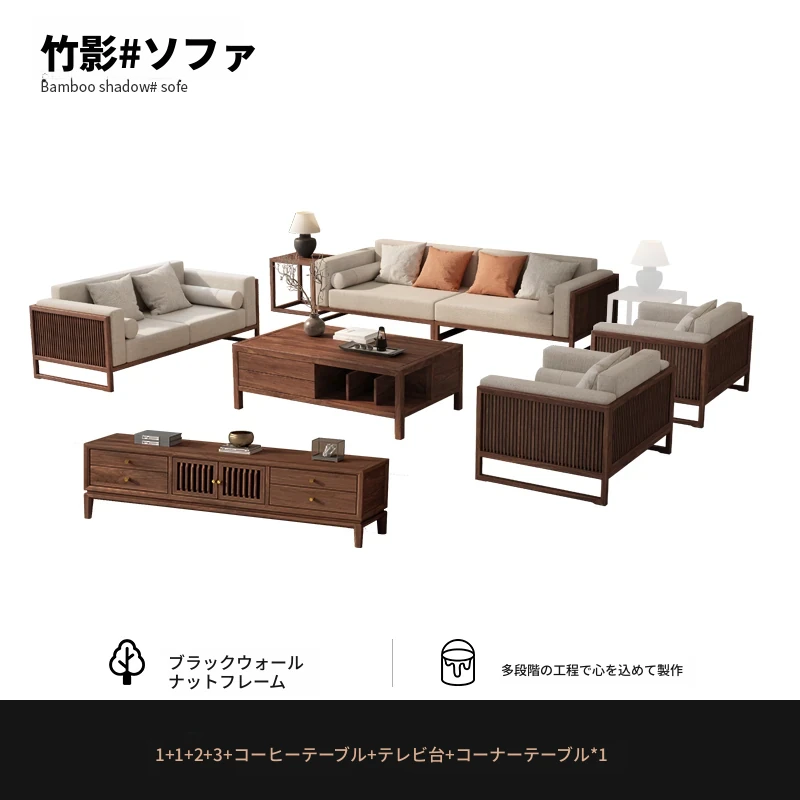 【宋式美学】FASグレードのブラックウォールナット1+1+2+3+ローテーブル+テレビ台+コーナーテーブル*1