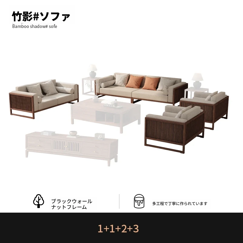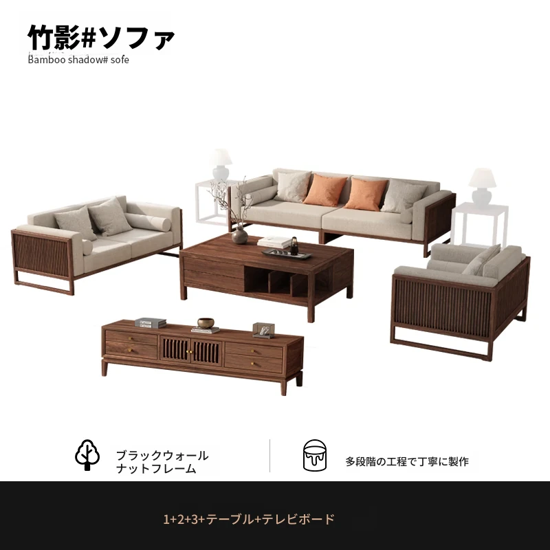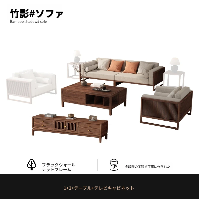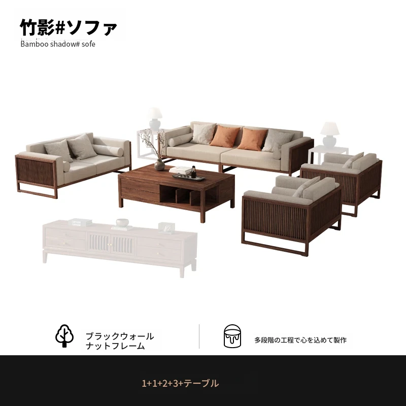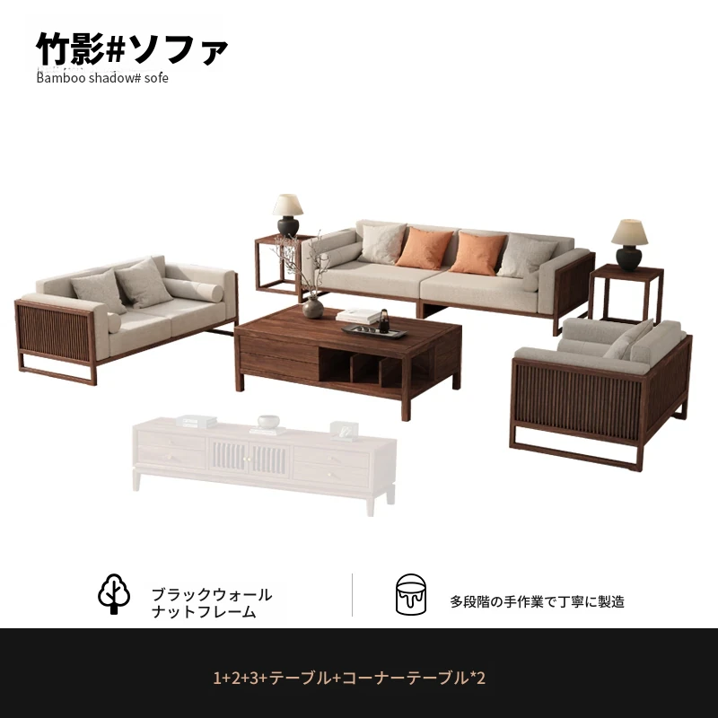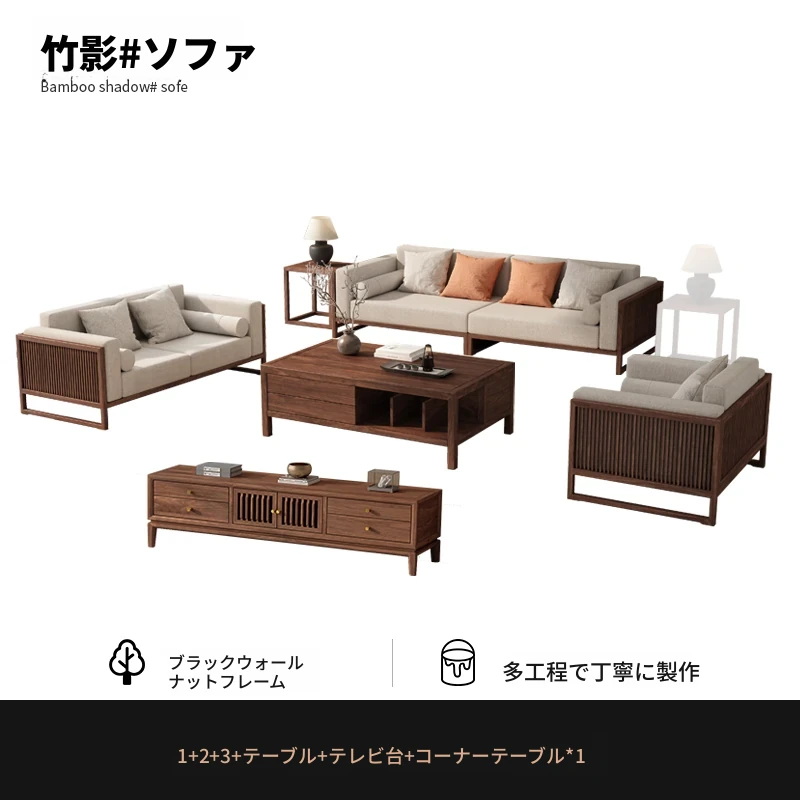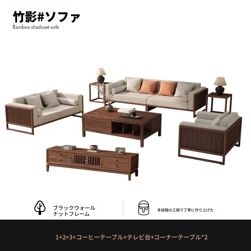 【宋式美学】FASグレードのブラックウォールナット1+1+2+3+ローテーブル+テレビ台+コーナーテーブル*1