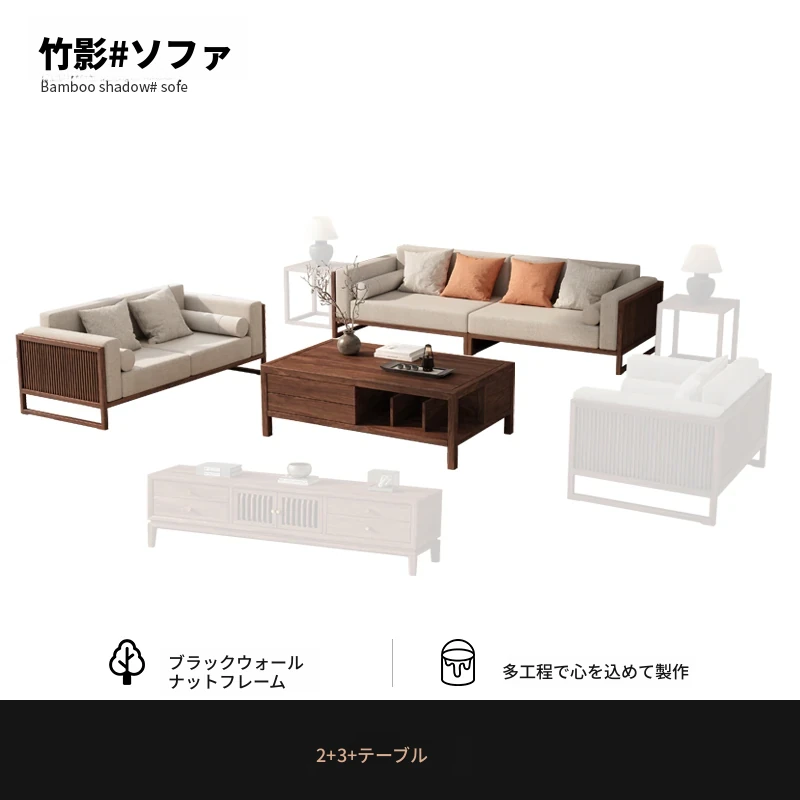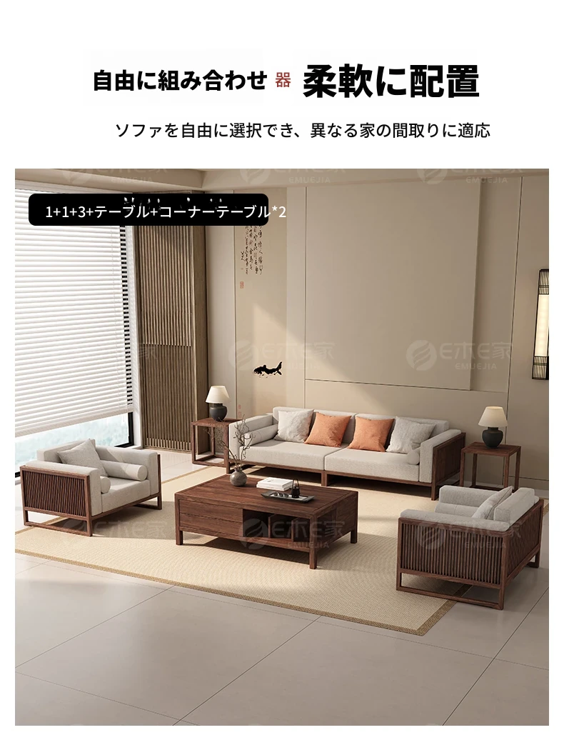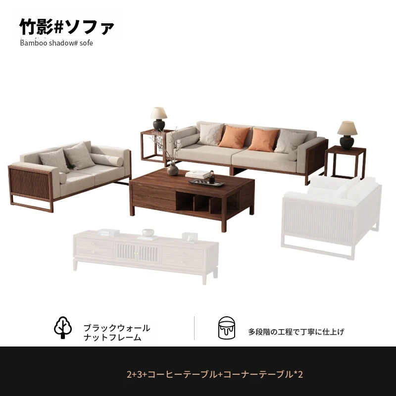 【宋式美学】FASグレードのブラックウォールナット2+3+ローテーブル+コーナーテーブル*1