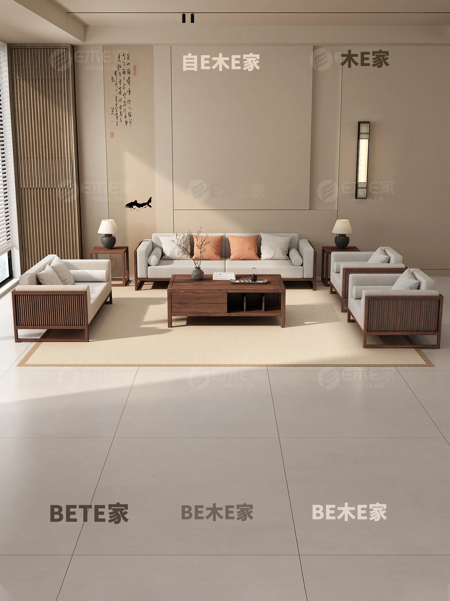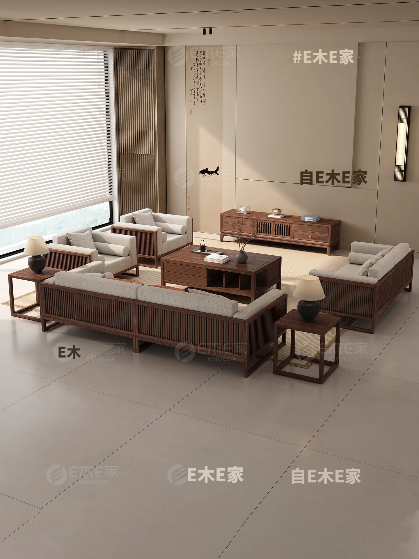 【宋式美学】FASグレードのブラックウォールナット1+1+3+ローテーブル+テレビ台