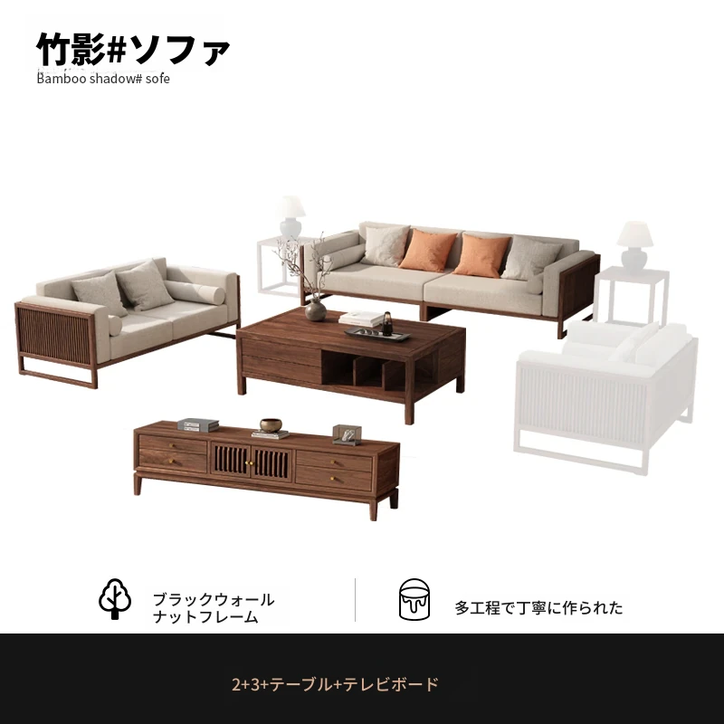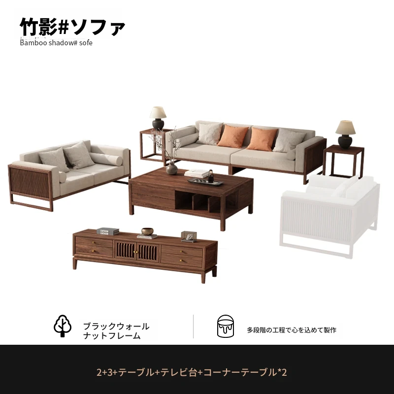 【宋式美学】FASグレードのブラックウォールナット2+3+ローテーブル+テレビ台+コーナーテーブル*1