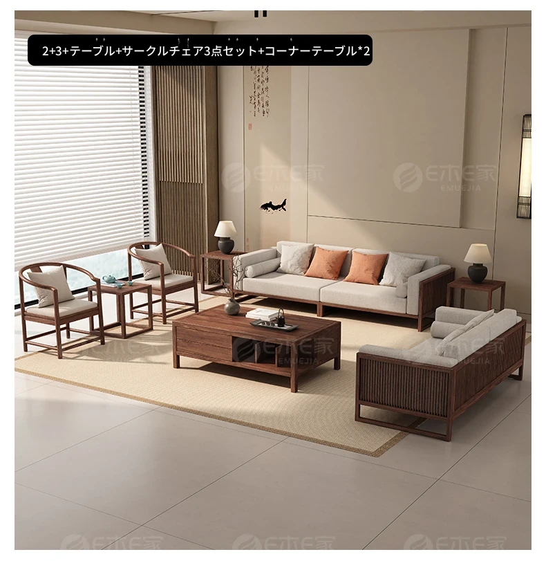 【宋式美学】FASグレードのブラックウォールナット2+3+ローテーブル+テレビ台+コーナーテーブル*2