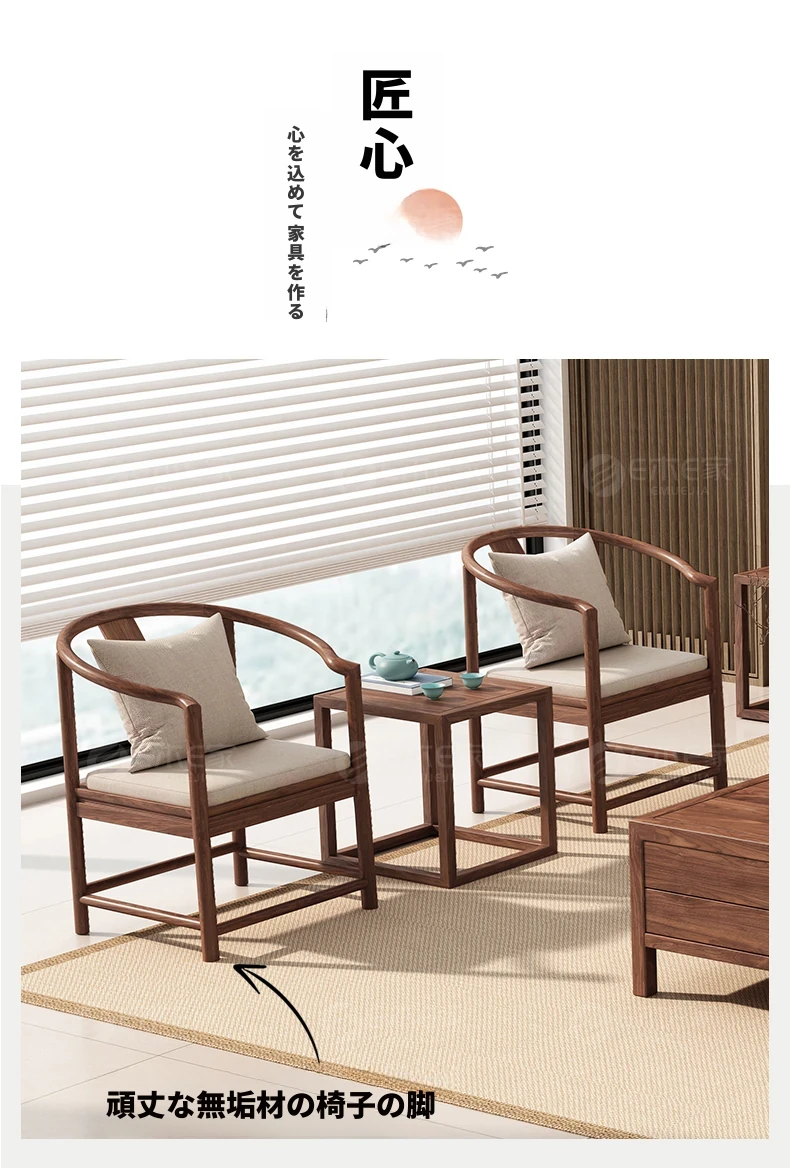 【宋式美学】FASグレードのブラックウォールナットのラウンジチェア3点セット+2+3+ローテーブル+コーナーテーブル*2